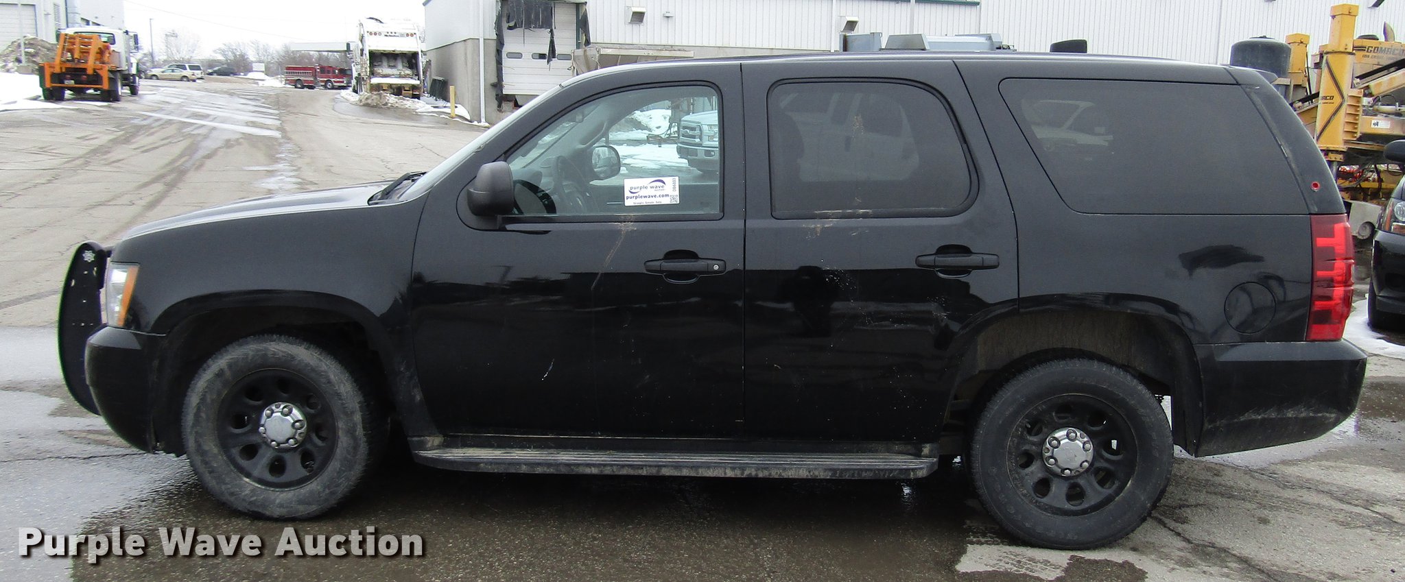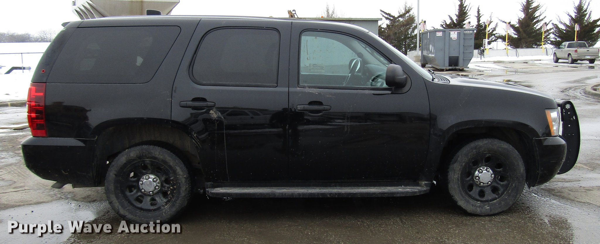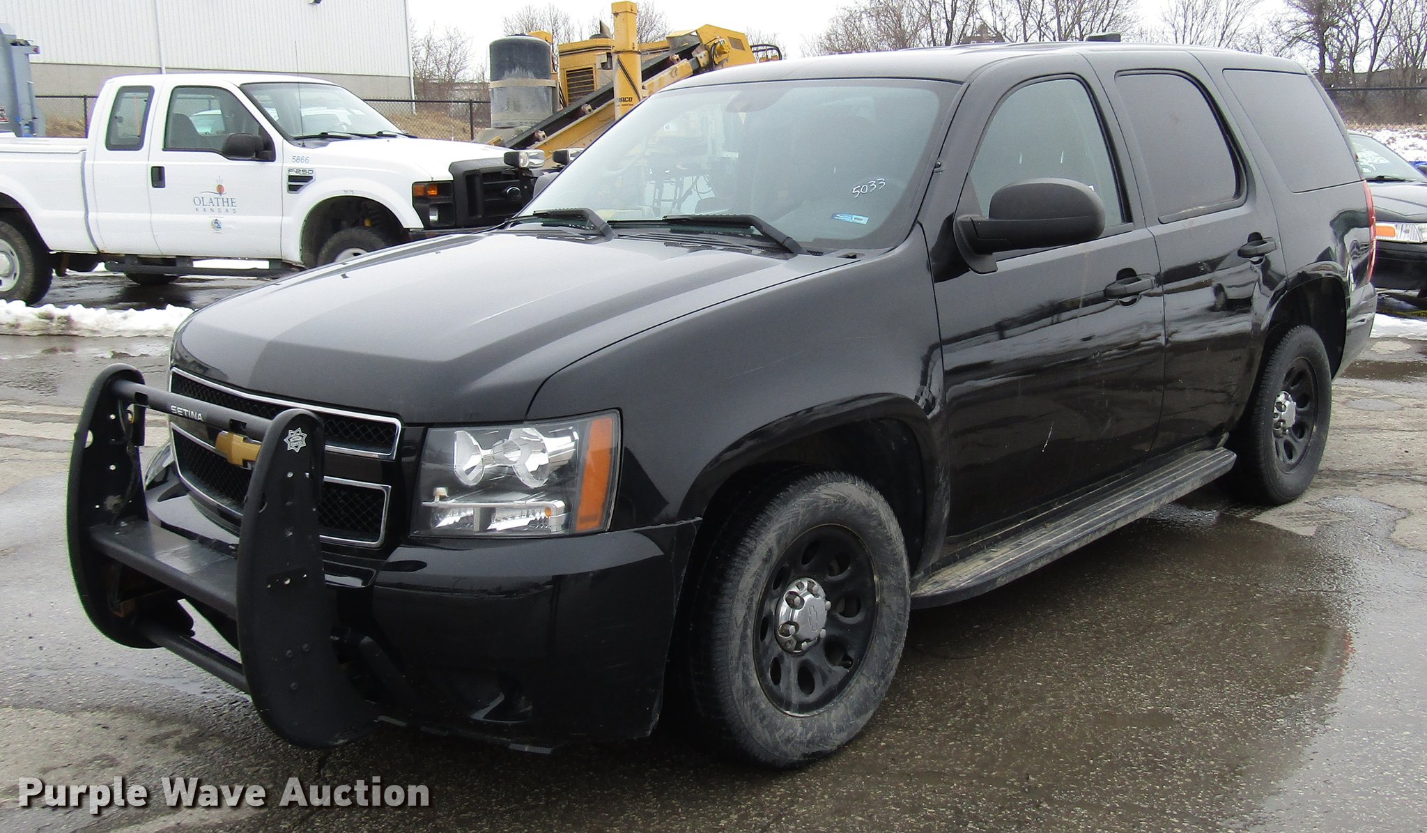Purple Wave is selling a used Passenger Vehicle in Kansas. This item is a 2012 Chevrolet Tahoe Police SUV with the following: 128,071 miles on odometer, 5.3L V8 OHV 16V FFV gas engine, Automatic transmission, AC and heat, Tilt, Cruise, AM/FM/CD, Power locks, windows, mirrors, and seat, Cloth front interior, Vinyl rear interior, Running boards, 265/60R17 tires, Unit# 5033