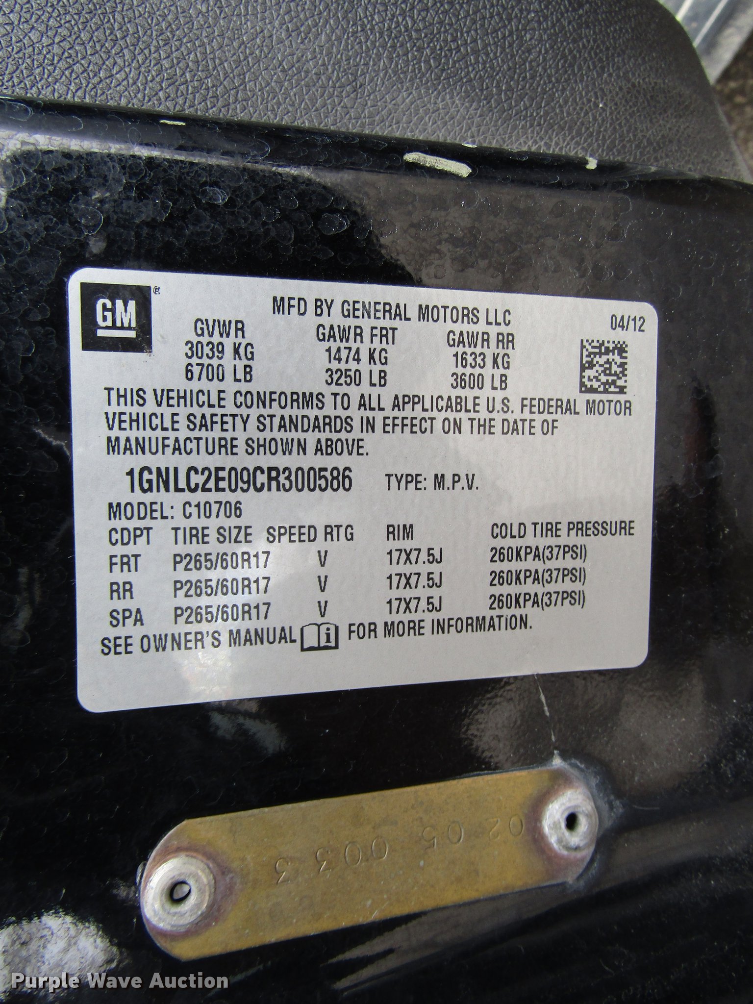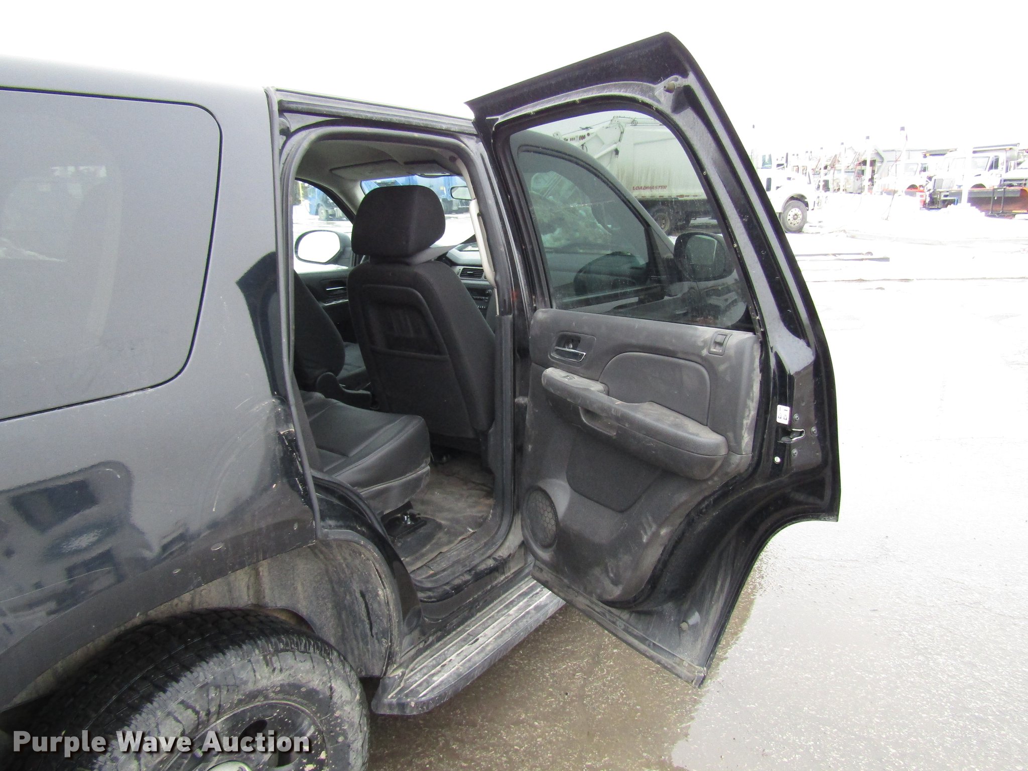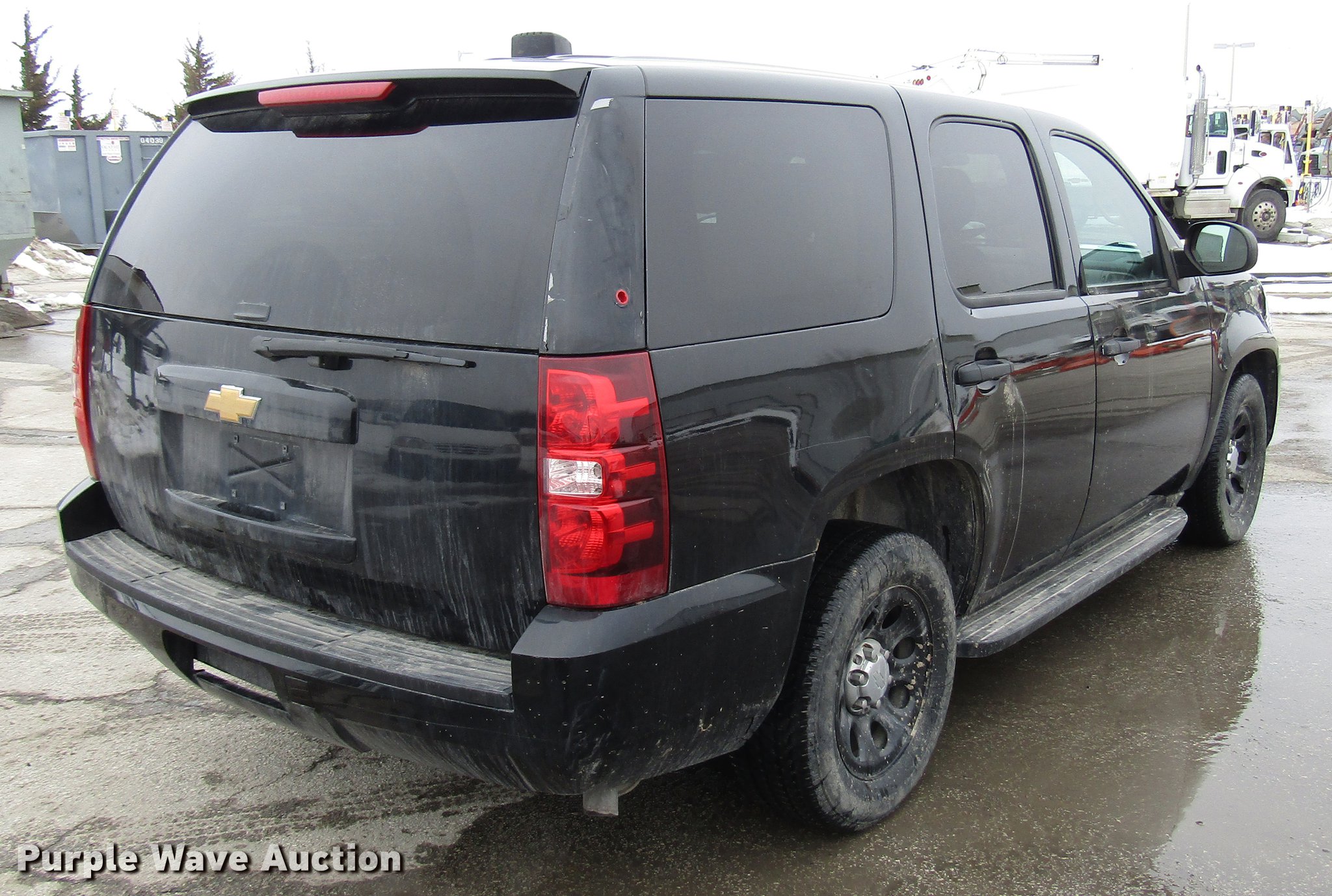 Purple Wave is selling a used Passenger Vehicle in Kansas. This item is a 2012 Chevrolet Tahoe Police SUV with the following: 128,071 miles on odometer, 5.3L V8 OHV 16V FFV gas engine, Automatic transmission, AC and heat, Tilt, Cruise, AM/FM/CD, Power locks, windows, mirrors, and seat, Cloth front interior, Vinyl rear interior, Running boards, 265/60R17 tires, Unit# 5033