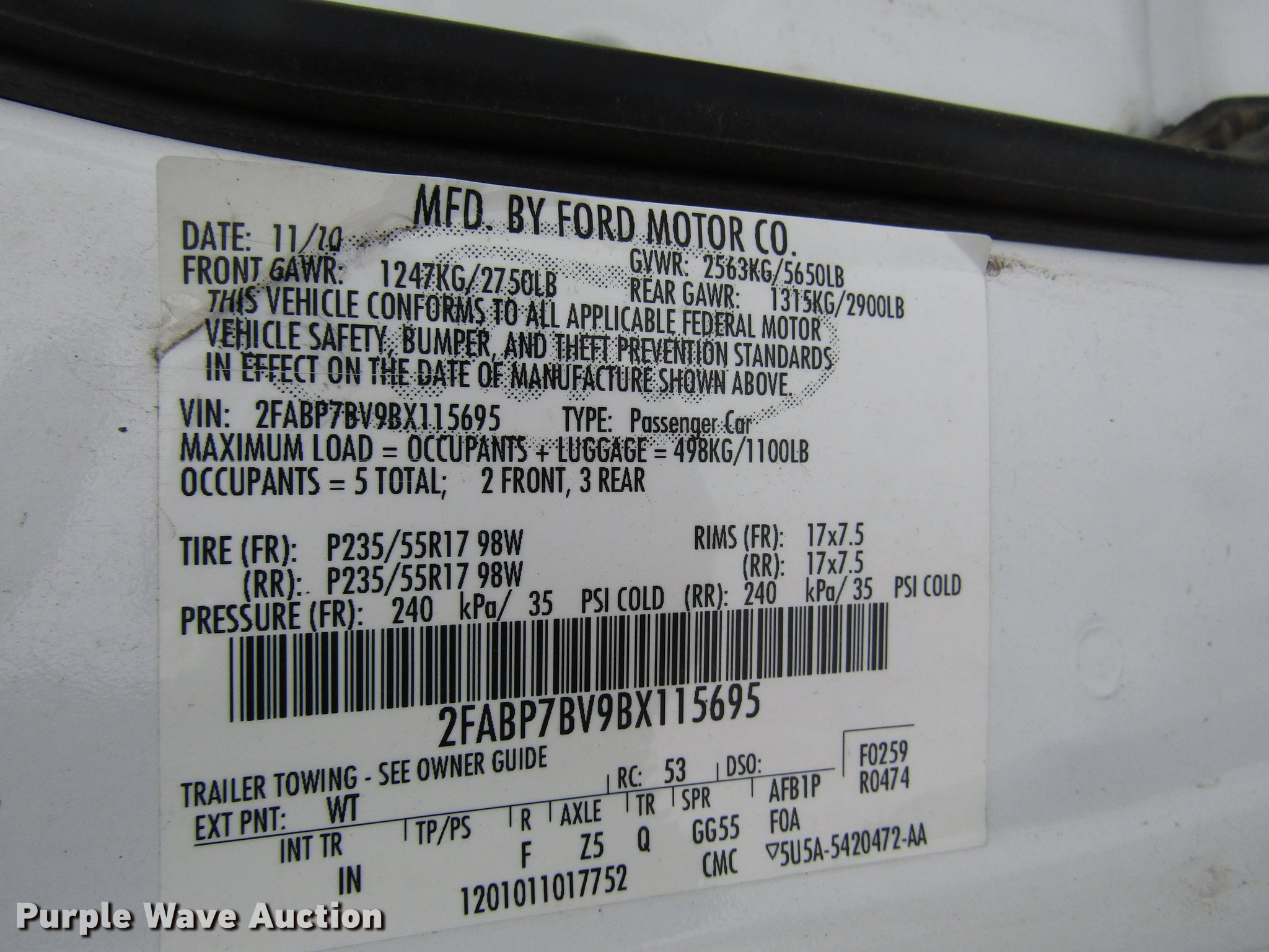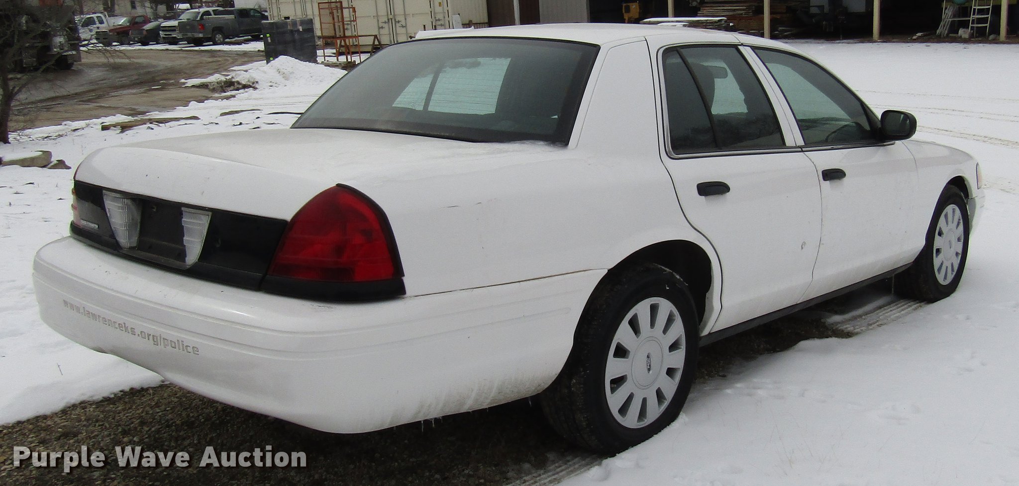 2011 Ford Crown Victoria Police Interceptor. 81,276 miles on odometer, 4.6L V8 SOHC 16V FFV gas engine, Automatic transmission, AC and heat, Tilt, Cruise, AM/FM, Power windows, locks, mirrors, and seat, Cloth front interior, Vinyl rear interior, Adjustable foot pedals, P235/55R17 tires, Unit# 125. Kansas title. Seller is a government entity who will be assigning and distributing the title. Please contact the seller for distribution questions. 2FABP7BV9BX115695. City of Lawrence. 1141 Haskell Ave. Lawrence, KS 66044