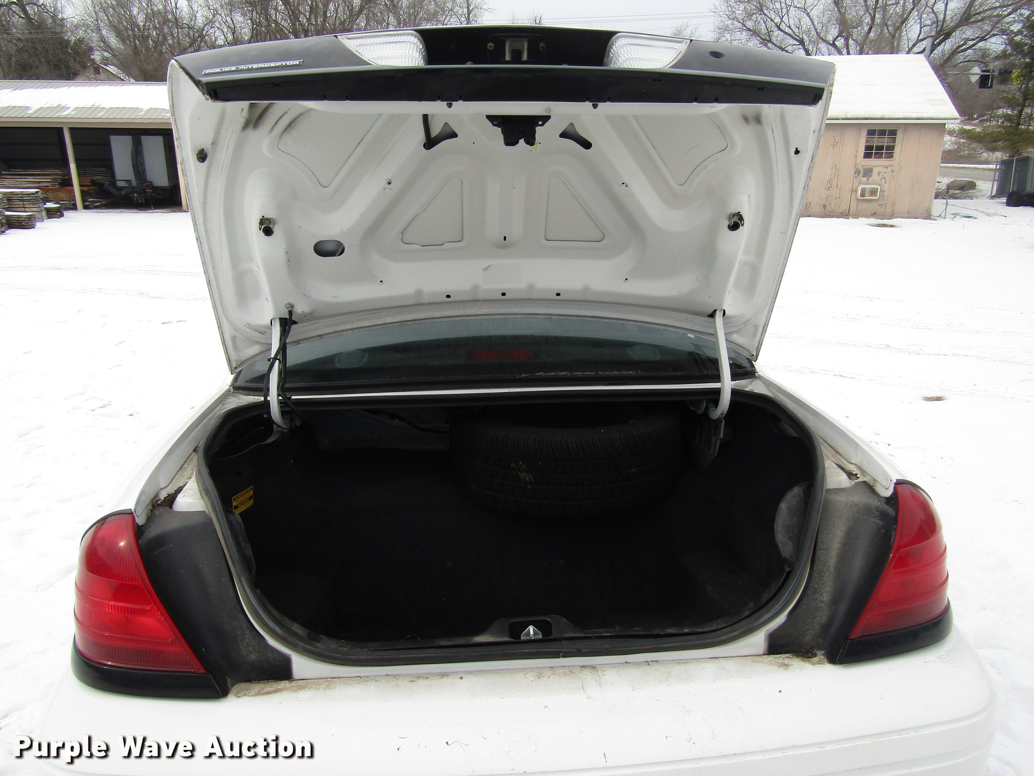 Purple Wave is selling a used Passenger Vehicle in Kansas. This item is a 2011 Ford Crown Victoria Police Interceptor with the following: 81,276 miles on odometer, 4.6L V8 SOHC 16V FFV gas engine, Automatic transmission, AC and heat, Tilt, Cruise, AM/FM, Power windows, locks, mirrors, and seat, Cloth front interior, Vinyl rear interior, Adjustable foot pedals, P235/55R17 tires, Unit# 125