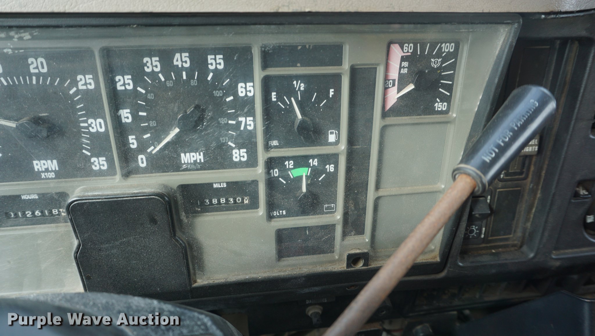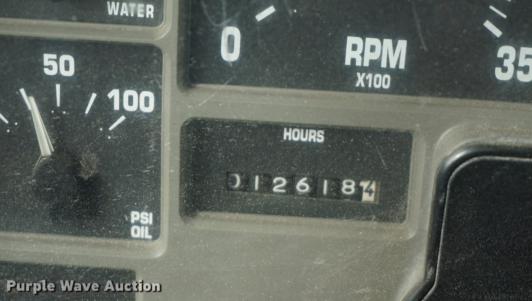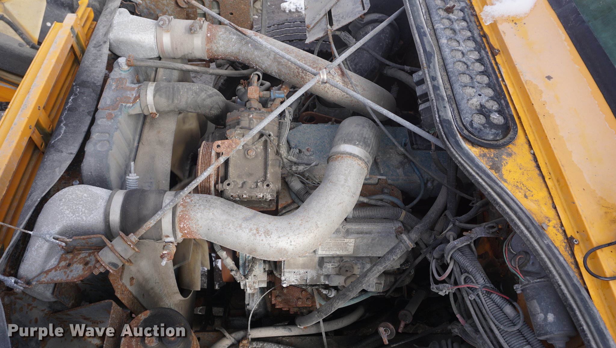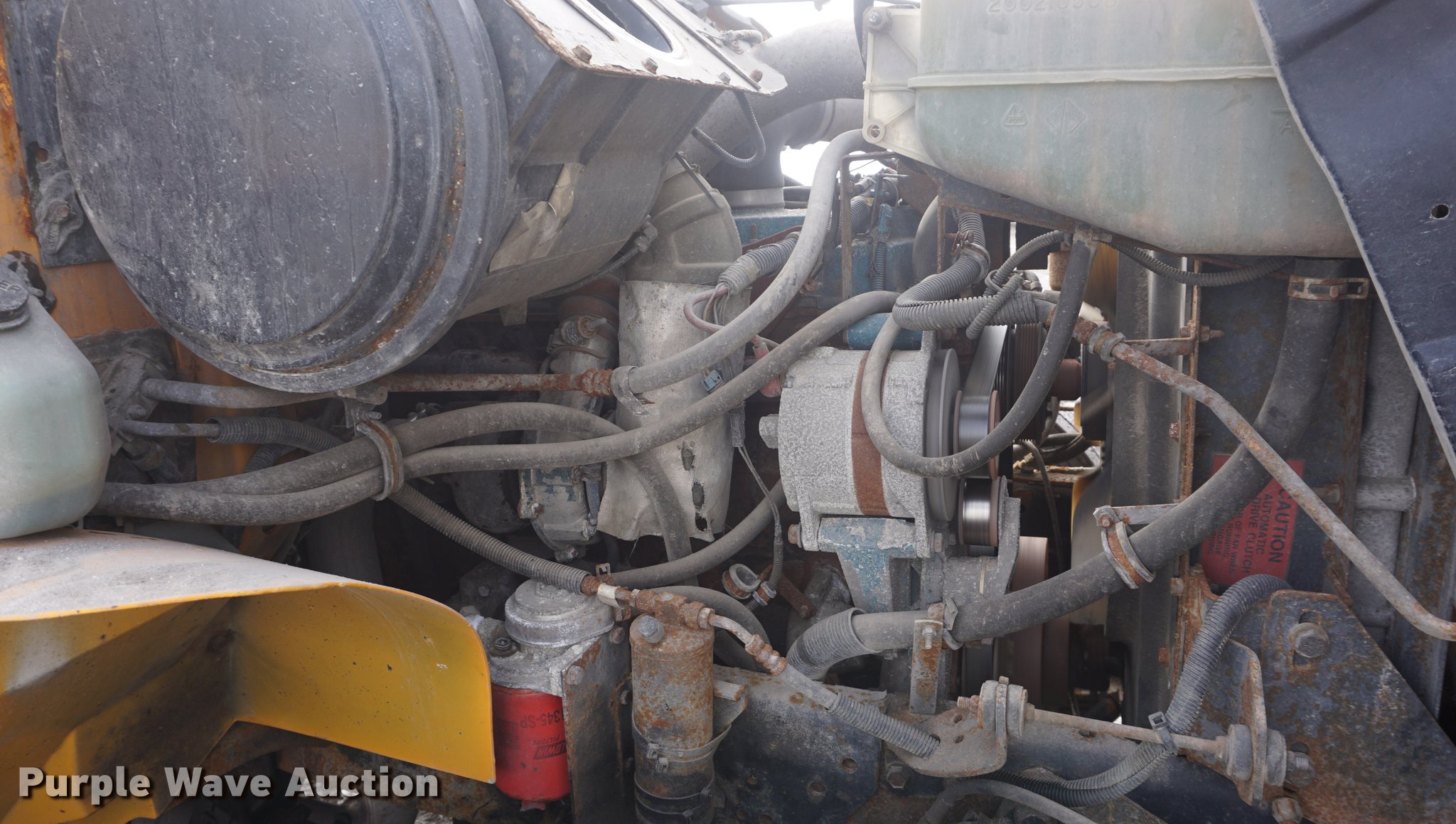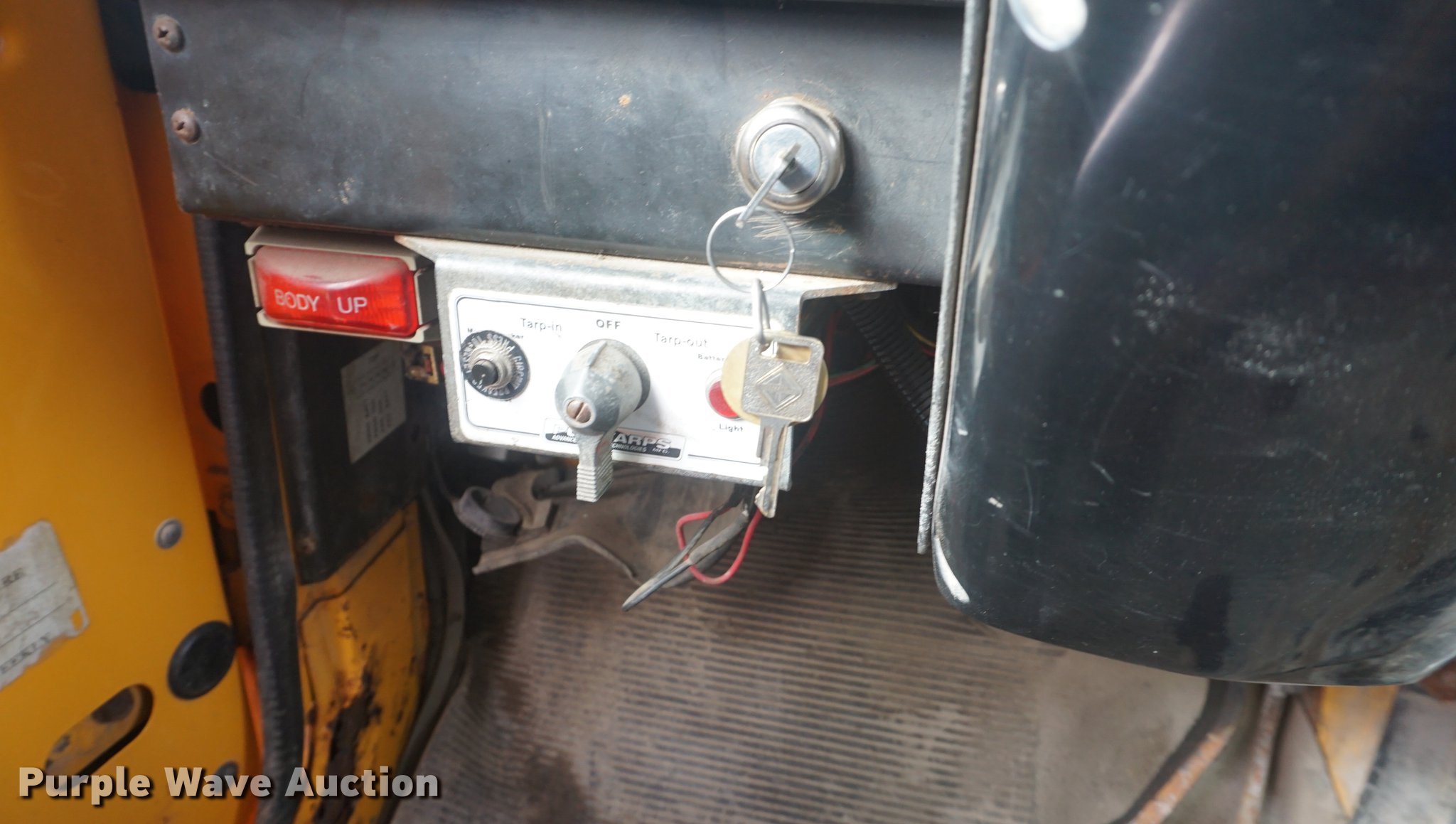 Purple Wave is selling a used Construction Dump Truck in Missouri. This item is a 2002 International 4900 dump truck with the following: 138,830 miles on odometer, 12,618 hours on meter, International DT466E 7.6L L6 turbo diesel engine, 215 HP, Allison automatic transmission, Single axle, AC and heat, Cruise, AM/FM, Power windows, Power and heated mirrors, Air suspension seat, Front mounted PTO, Galion 402FT steel dump bed, 10'L x 96"W, 24" side height, 5.6-6.8 cu. yd. capacity, Roll tarp, Bed vibrator, Single ram hoist, Air operated end gate, Single fuel tank, Pintle hitch, Spring suspension, Air brakes, 315/80R22.5 front tires, 11R22.5 rear tires, GVWR 37,000 lbs, FAWR 16,000 lbs, RAWR 21,000 lbs, Oil pan leak, Rear transmission leak, AC belt missing, Bed vibrator inoperable