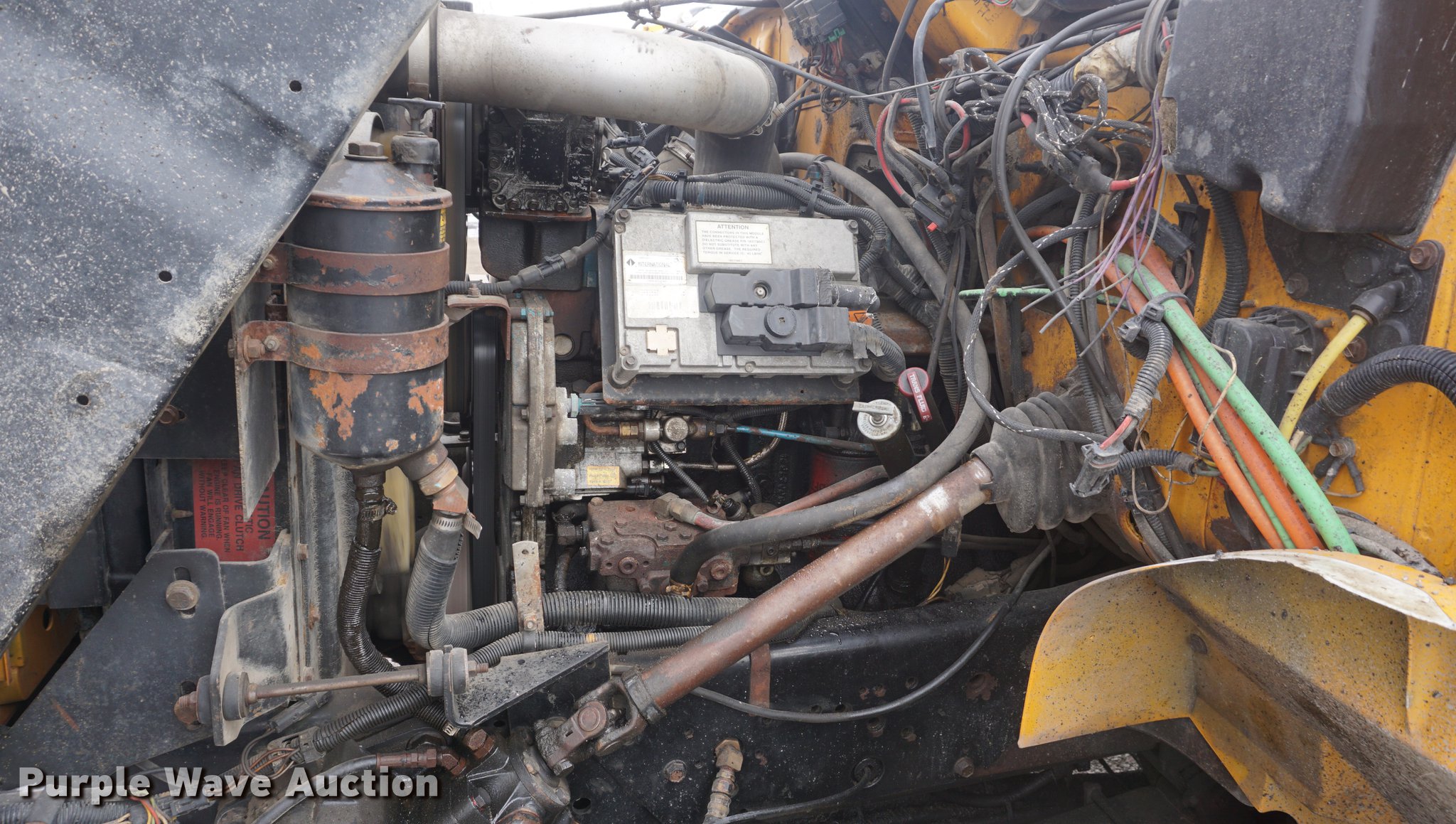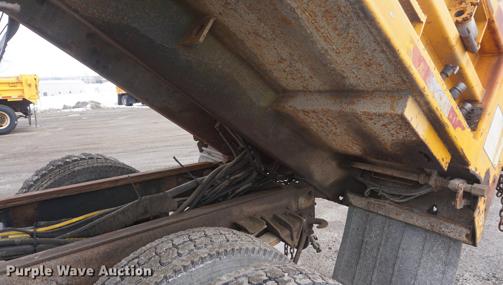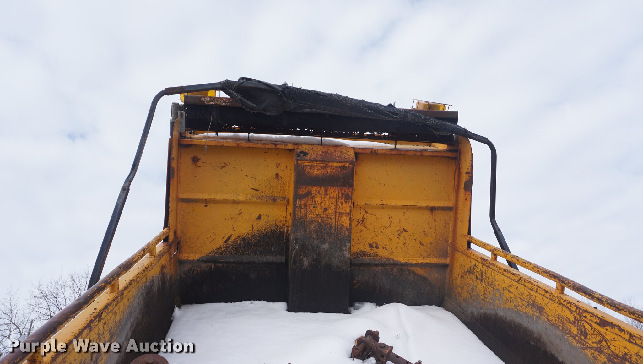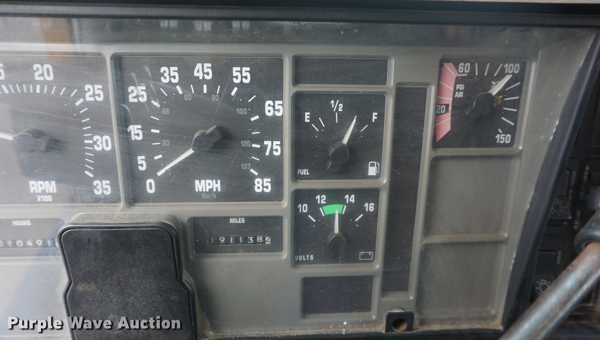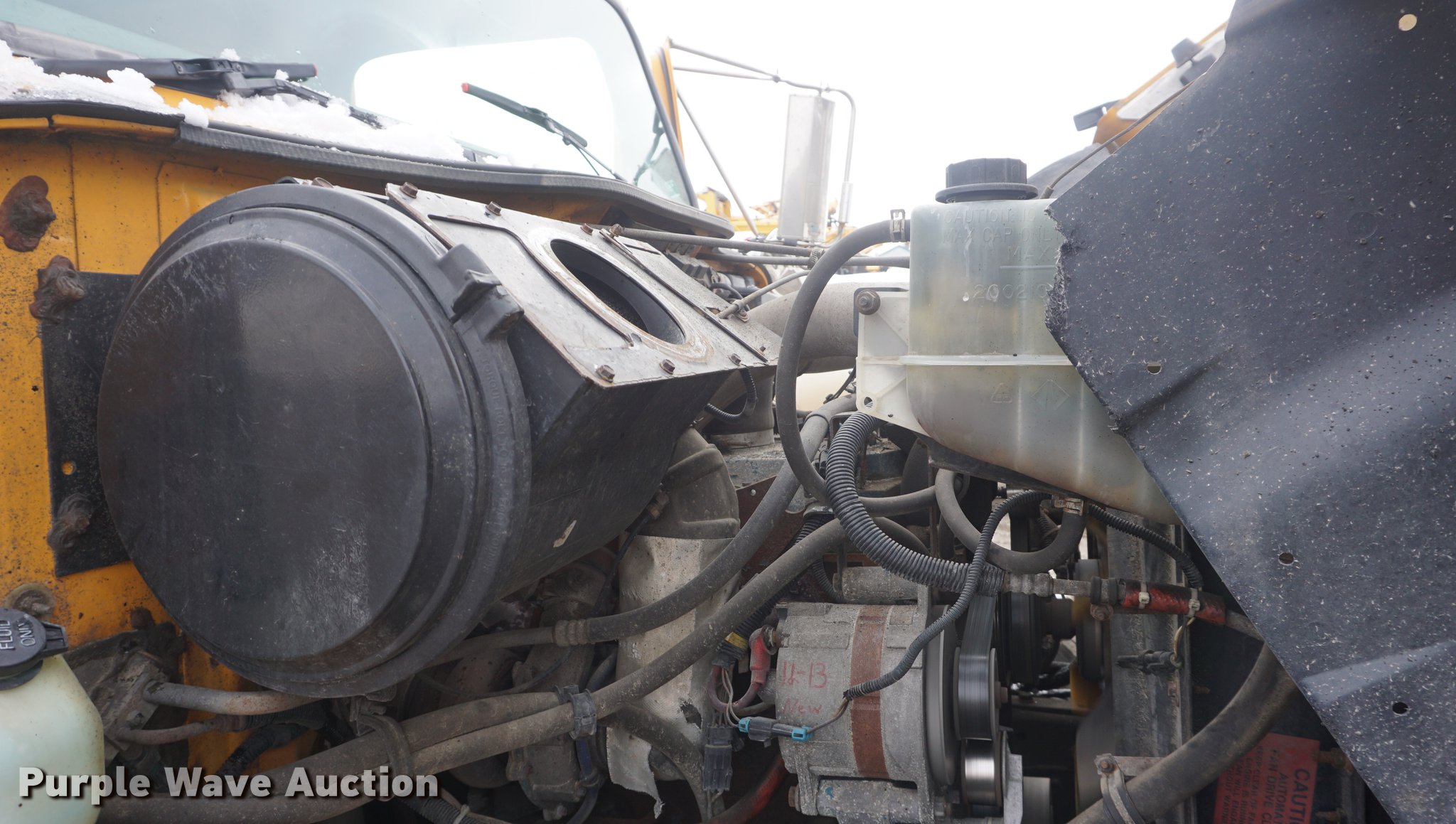 Purple Wave is selling a used Construction Dump Truck in Missouri. This item is a 2002 International 4900 Crew Cab dump truck with the following: 191,138 miles on odometer, 10,491 hours on meter, International DT466E 7.6L L6 turbo diesel engine, 215 HP, Allison automatic transmission, Single axle, AC and heat, Cruise, AM/FM, Power and heated mirrors, Air suspension seat, Front mounted PTO, Galion 402FT steel dump bed, 10'L x 96"W, 24" side height, 5.6-6.8 cu. yd. capacity, Electric roll tarp, Bed vibrator, Single ram hoist, Air operated end gate, Plow mount, 2001 Henke wing plow, Single fuel tank, Pintle hitch, Spring suspension, Air brakes, 315/80R22.5 front tires, 11R22.5 rear tires, GVWR 37,000 lbs, FAWR 16,000 lbs, RAWR 21,000 lbs, Radiator needs to be replaced, Non-operational AC, Bed vibrator inoperable, Lift cylinder leaks, Electric roll tarp inoperable