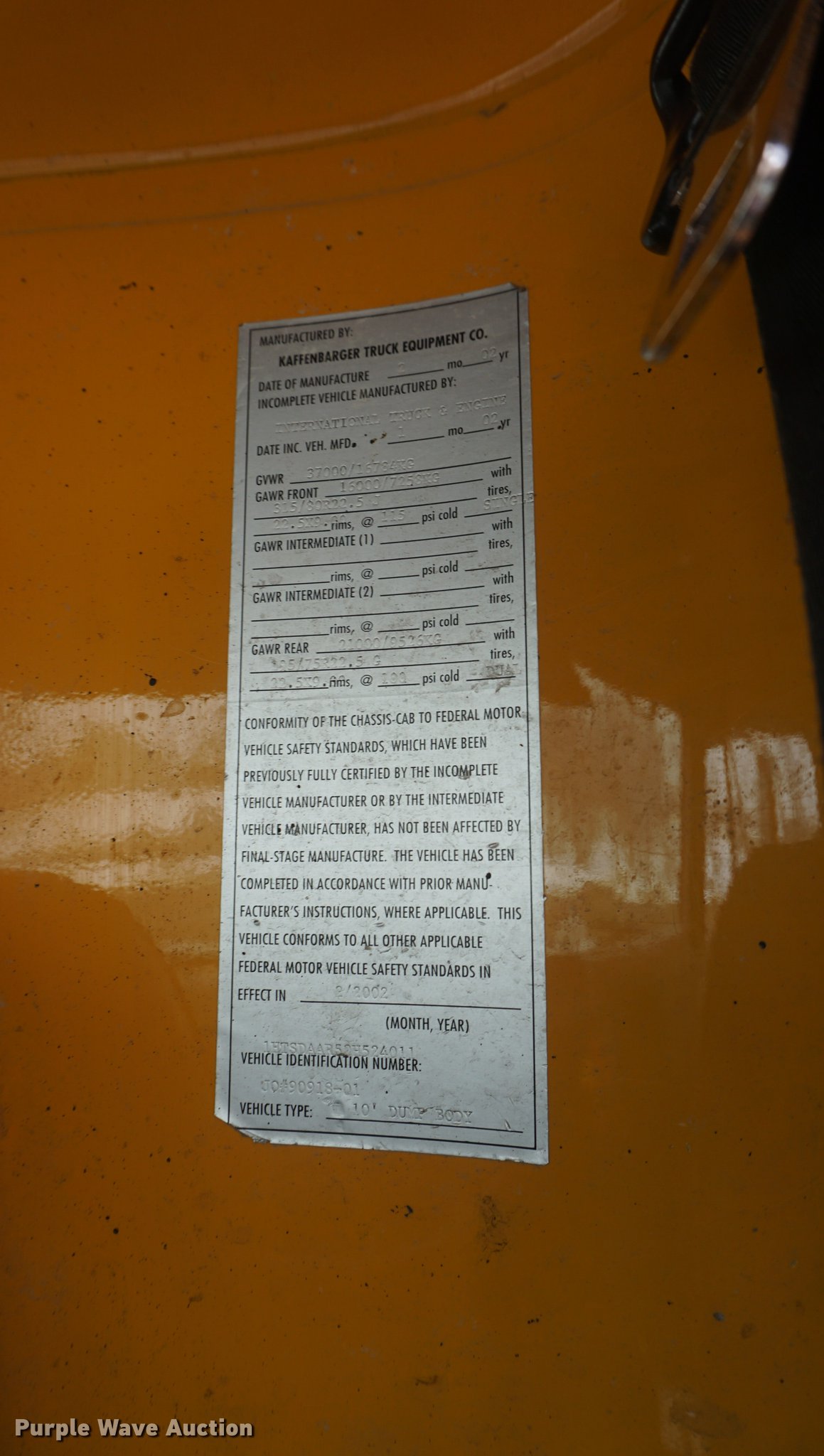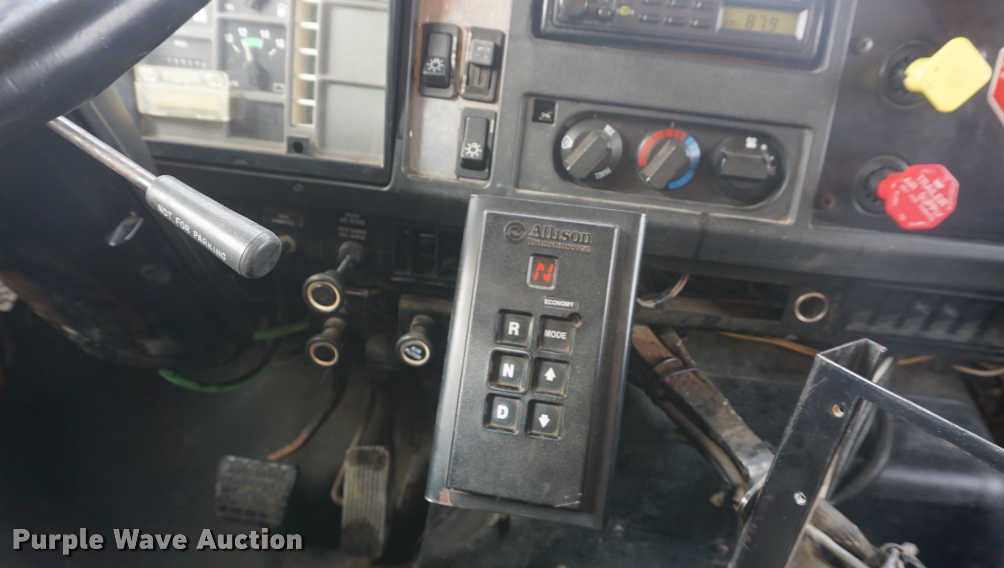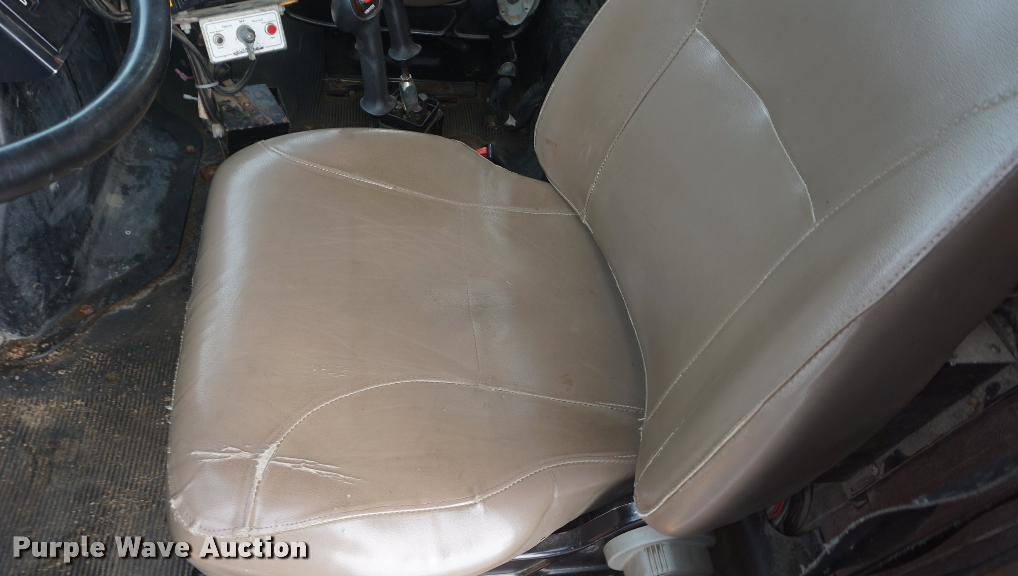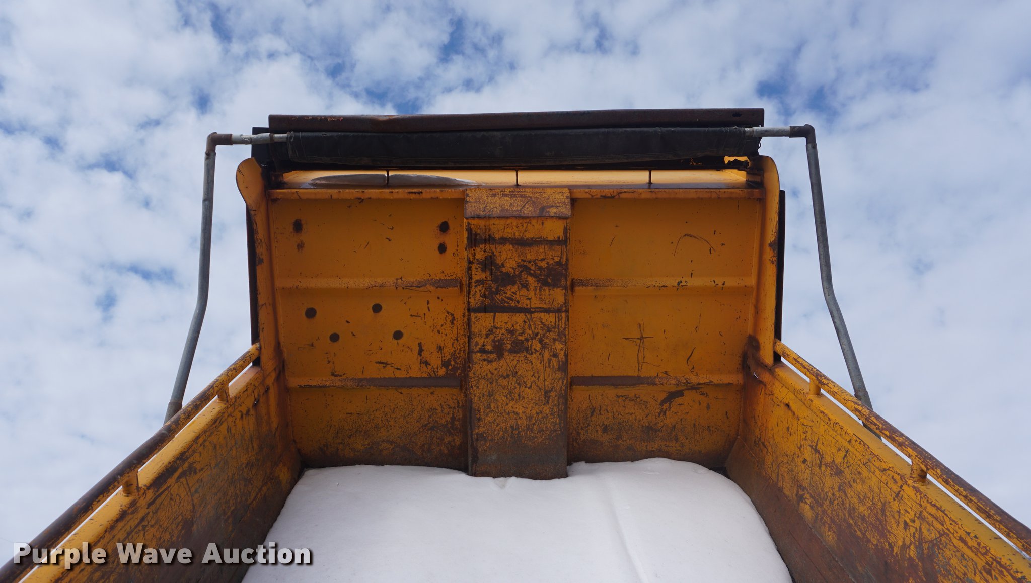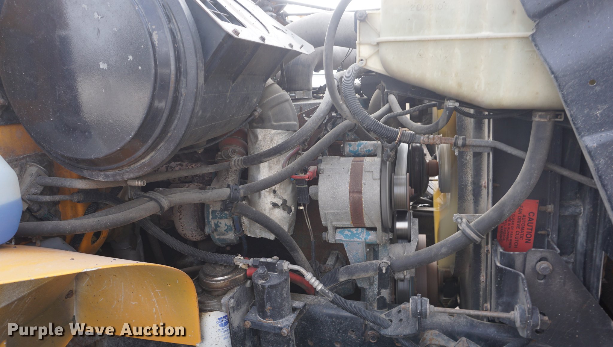 Purple Wave is selling a used Construction Dump Truck in Missouri. This item is a 2002 International 4900 dump truck with the following: 158,568 miles on odometer, 10,940 hours on meter, International DT466E 7.6L L6 turbo diesel engine, 215 HP, Allison automatic transmission, Single axle, AC and heat, Cruise, AM/FM, Power and heated mirrors, Air suspension seat, Front mounted PTO, Galion 402FT steel dump bed, 10'L x 96"W, 24" side height, 5.6-6.8 cu. yd. capacity, Roll tarp, Bed vibrator, Single ram hoist, Air operated end gate, Single fuel tank, Pintle hitch, Spring suspension, Air brakes, 315/80R22.5 front tires, 11R22.5 rear tires, GVWR 37,000 lbs, FAWR 16,000 lbs, RAWR 21,000 lbs, Engine misfire, Engine smokes, Turbo return line leak, AC belt missing, Tarp frame broken