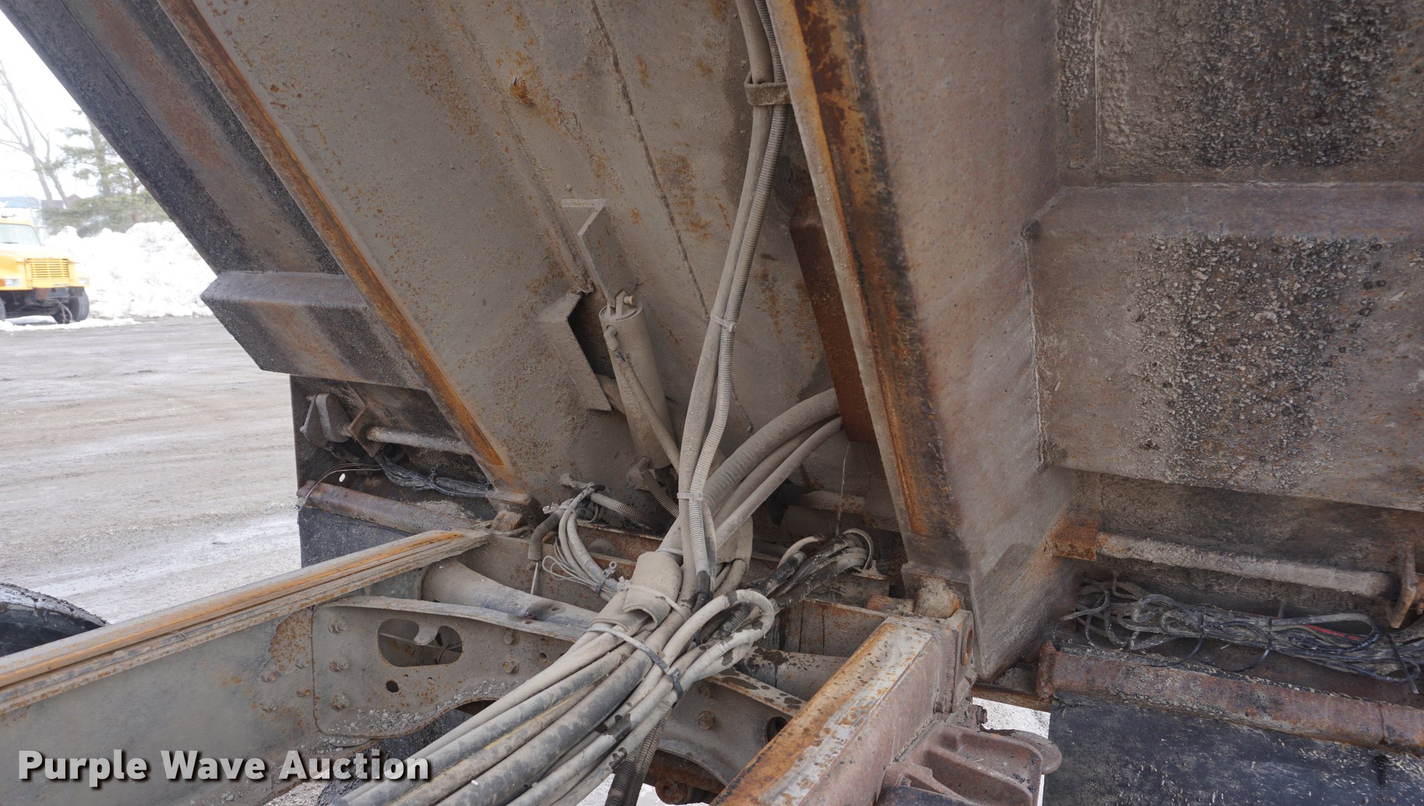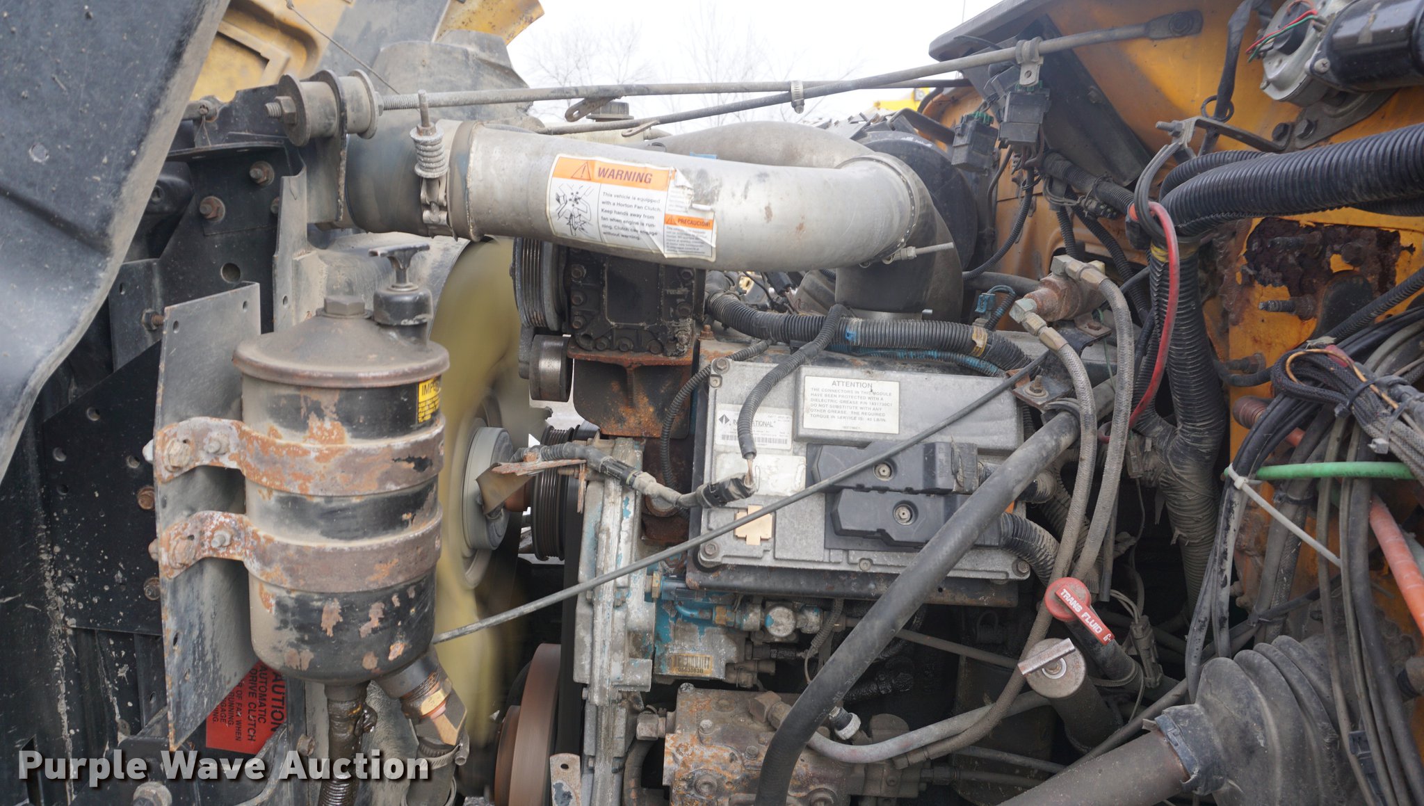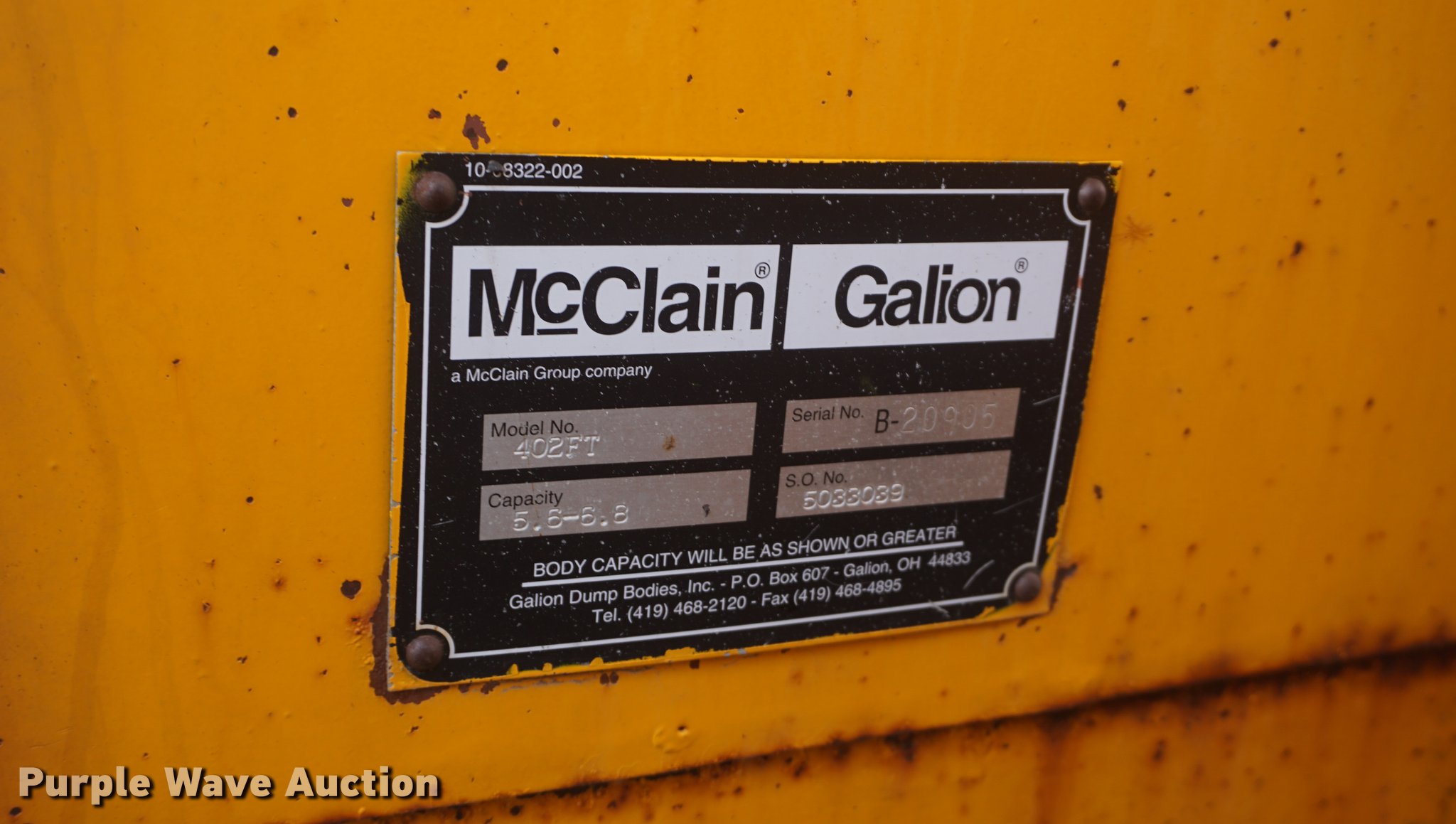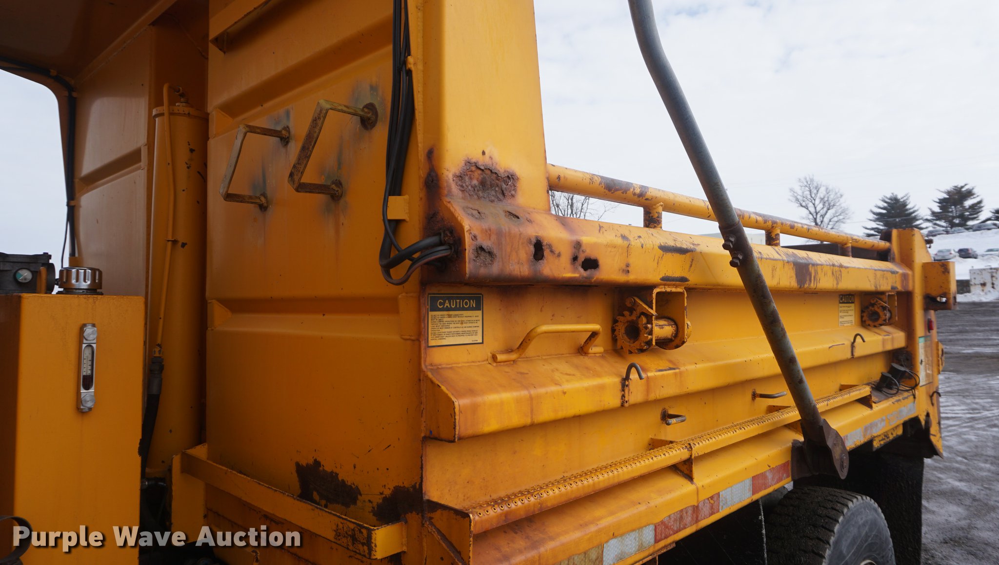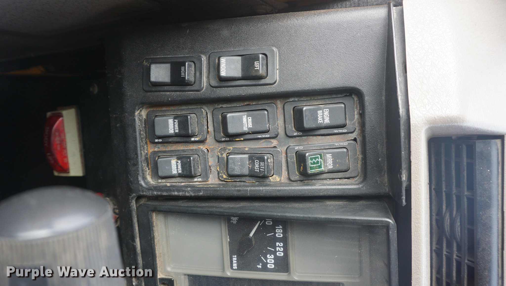 Purple Wave is selling a used Construction Dump Truck in Missouri. This item is a 2002 International 4900 dump truck with the following: 158,568 miles on odometer, 10,940 hours on meter, International DT466E 7.6L L6 turbo diesel engine, 215 HP, Allison automatic transmission, Single axle, AC and heat, Cruise, AM/FM, Power and heated mirrors, Air suspension seat, Front mounted PTO, Galion 402FT steel dump bed, 10'L x 96"W, 24" side height, 5.6-6.8 cu. yd. capacity, Roll tarp, Bed vibrator, Single ram hoist, Air operated end gate, Single fuel tank, Pintle hitch, Spring suspension, Air brakes, 315/80R22.5 front tires, 11R22.5 rear tires, GVWR 37,000 lbs, FAWR 16,000 lbs, RAWR 21,000 lbs, Engine misfire, Engine smokes, Turbo return line leak, AC belt missing, Tarp frame broken