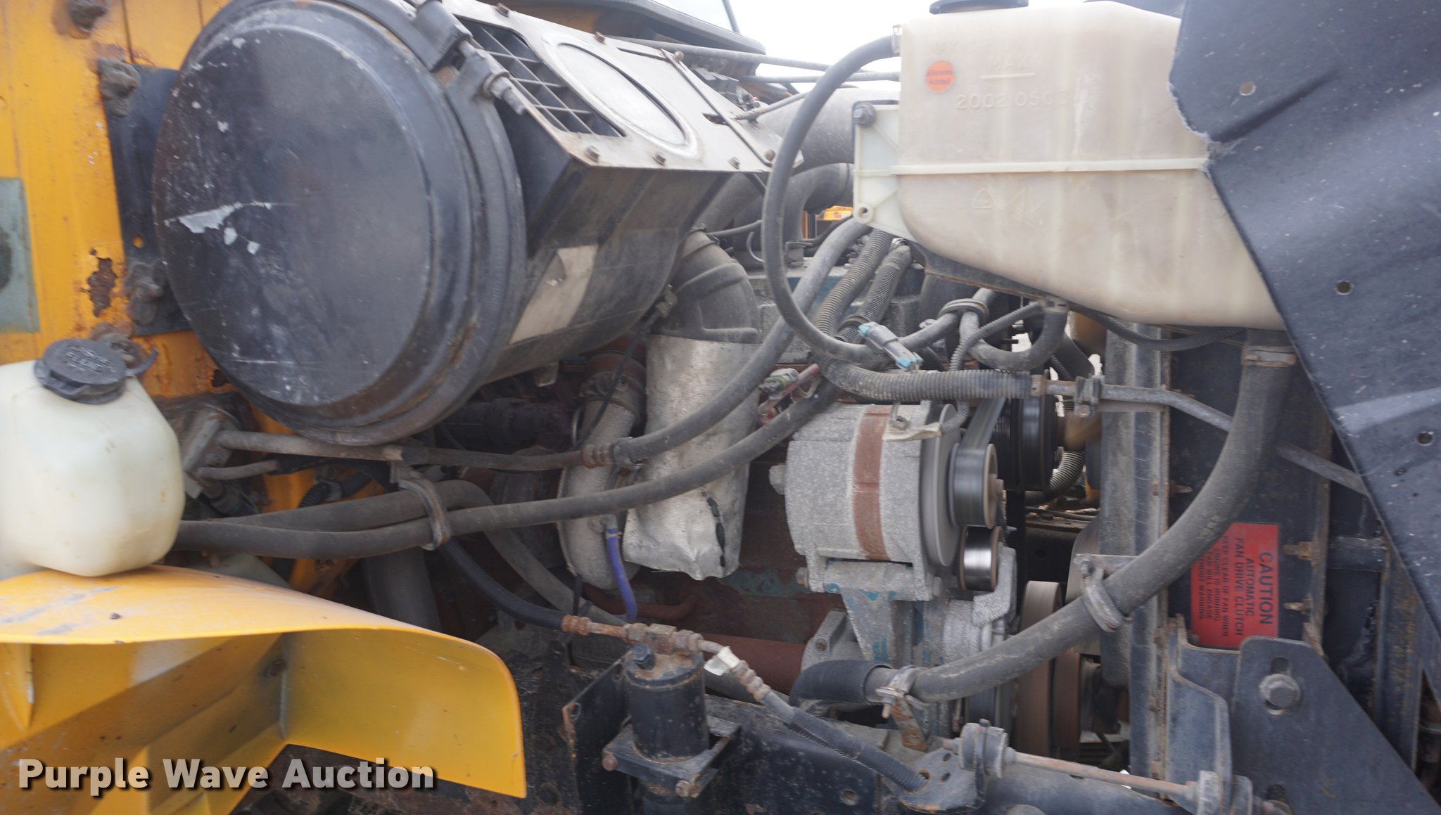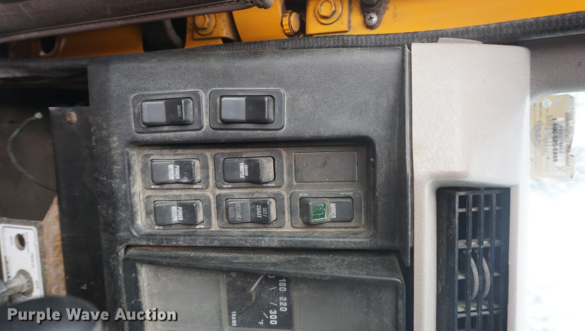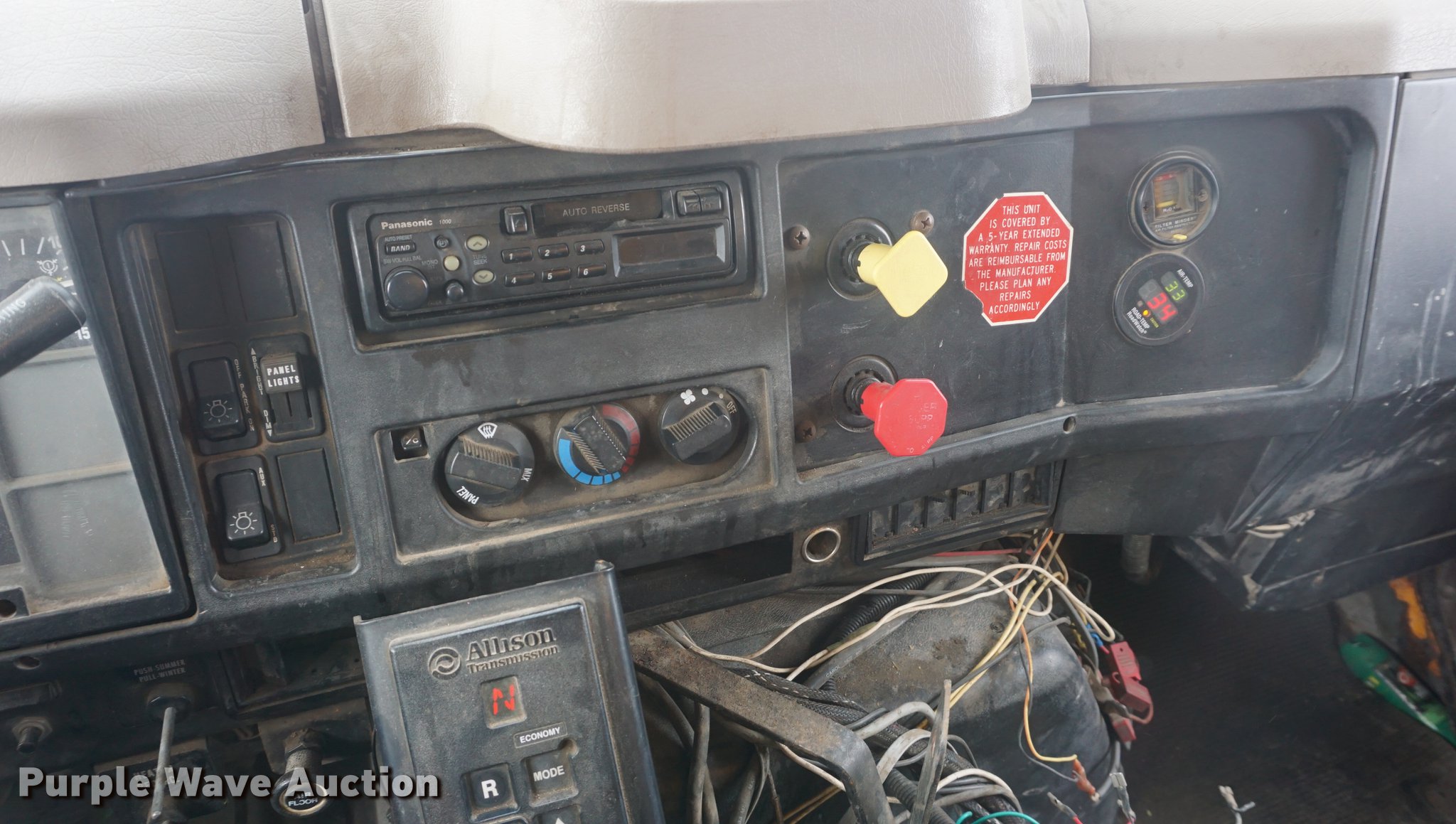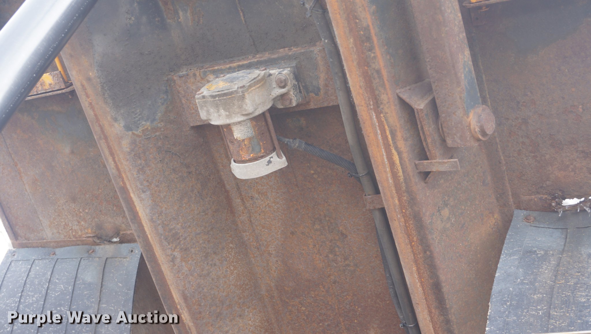 Purple Wave is selling a used Construction Dump Truck in Missouri. This item is a 2002 International 4900 dump truck with the following: 124,849 miles on odometer, 11,523 hours on meter, International DT466E 7.6L L6 turbo diesel engine, 215 HP, Allison automatic transmission, Single axle, AC and heat, Cruise, AM/FM, Power and heated mirrors, Air suspension seat, Front mounted PTO, Galion 402FT steel dump bed, 10'L x 96"W, 24" side height, 5.6-6.8 cu. yd. capacity, Roll tarp, Bed vibrator, Single ram hoist, Air operated end gate, Plow mount, Single fuel tank, Pintle hitch, Spring suspension, Air brakes, 11R22.5 tires, GVWR 37,000 lbs, FAWR 16,000 lbs, RAWR 21,000 lbs, Front fenders broken, Non-operational AC