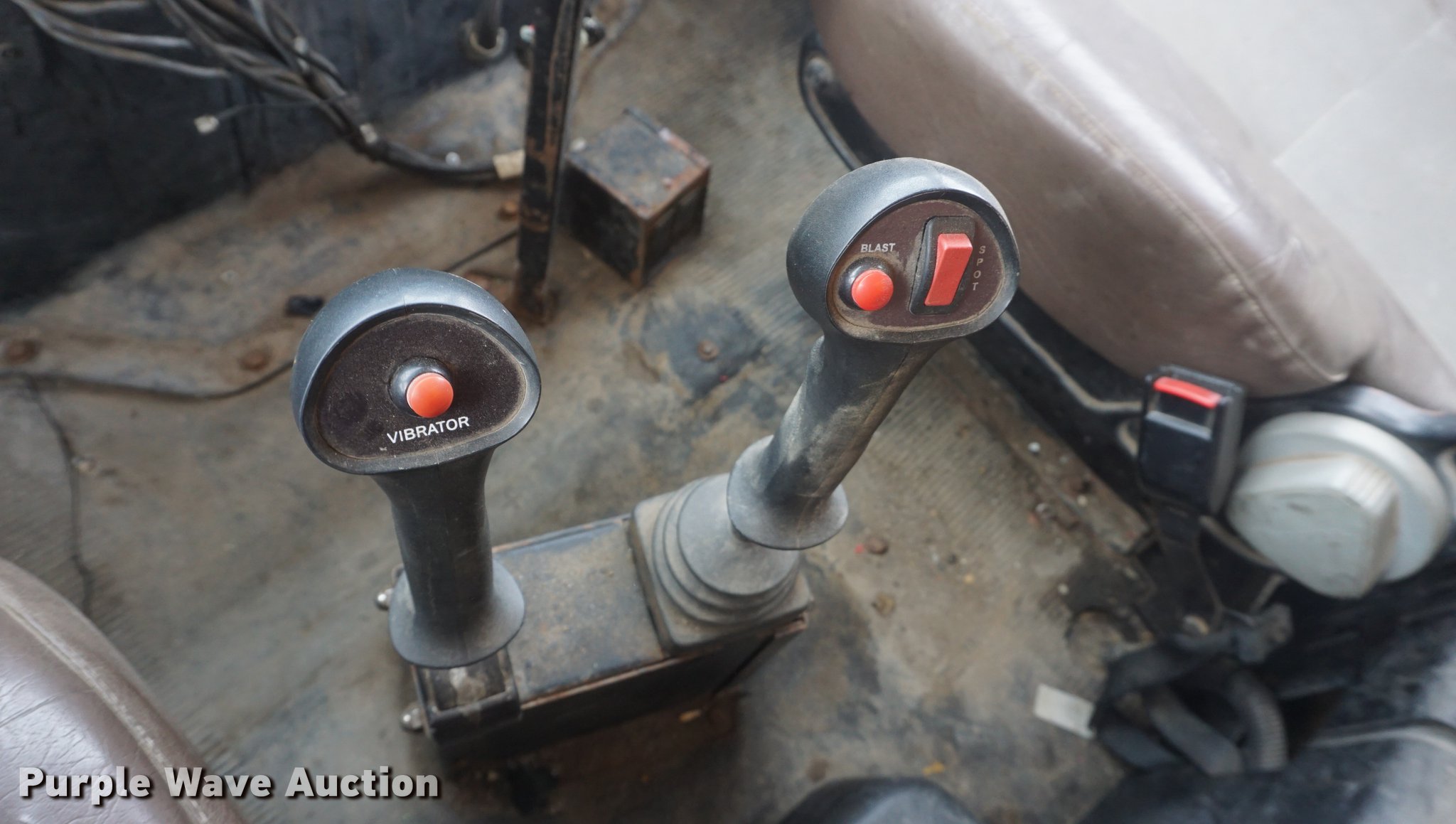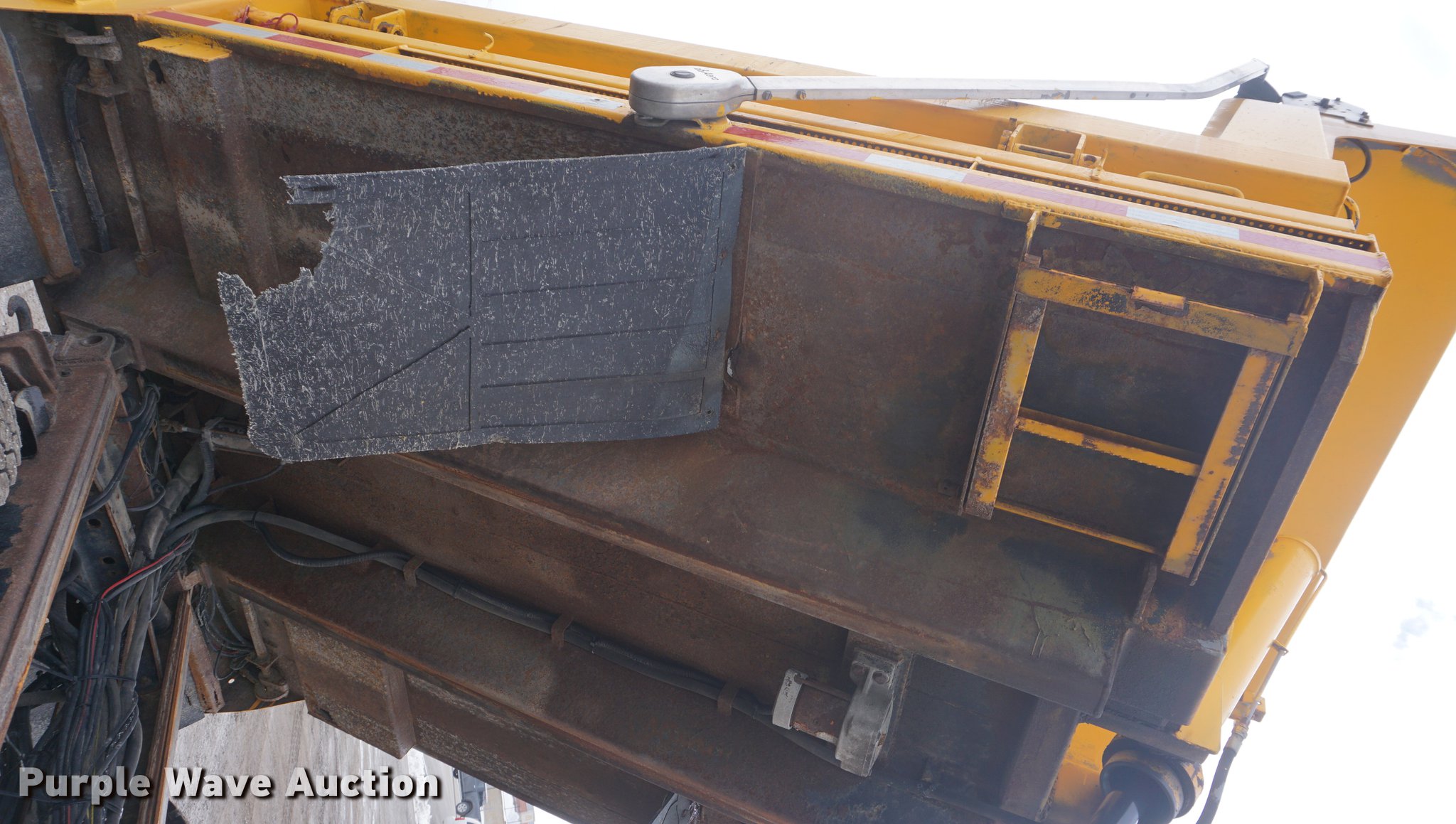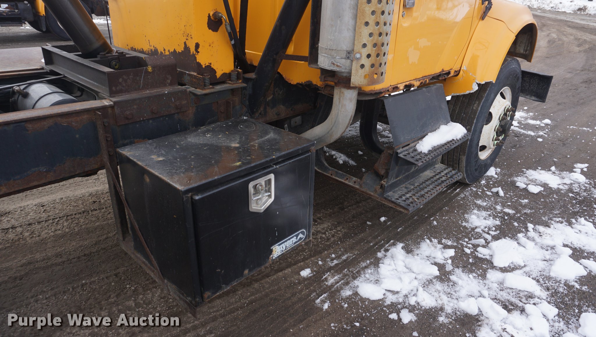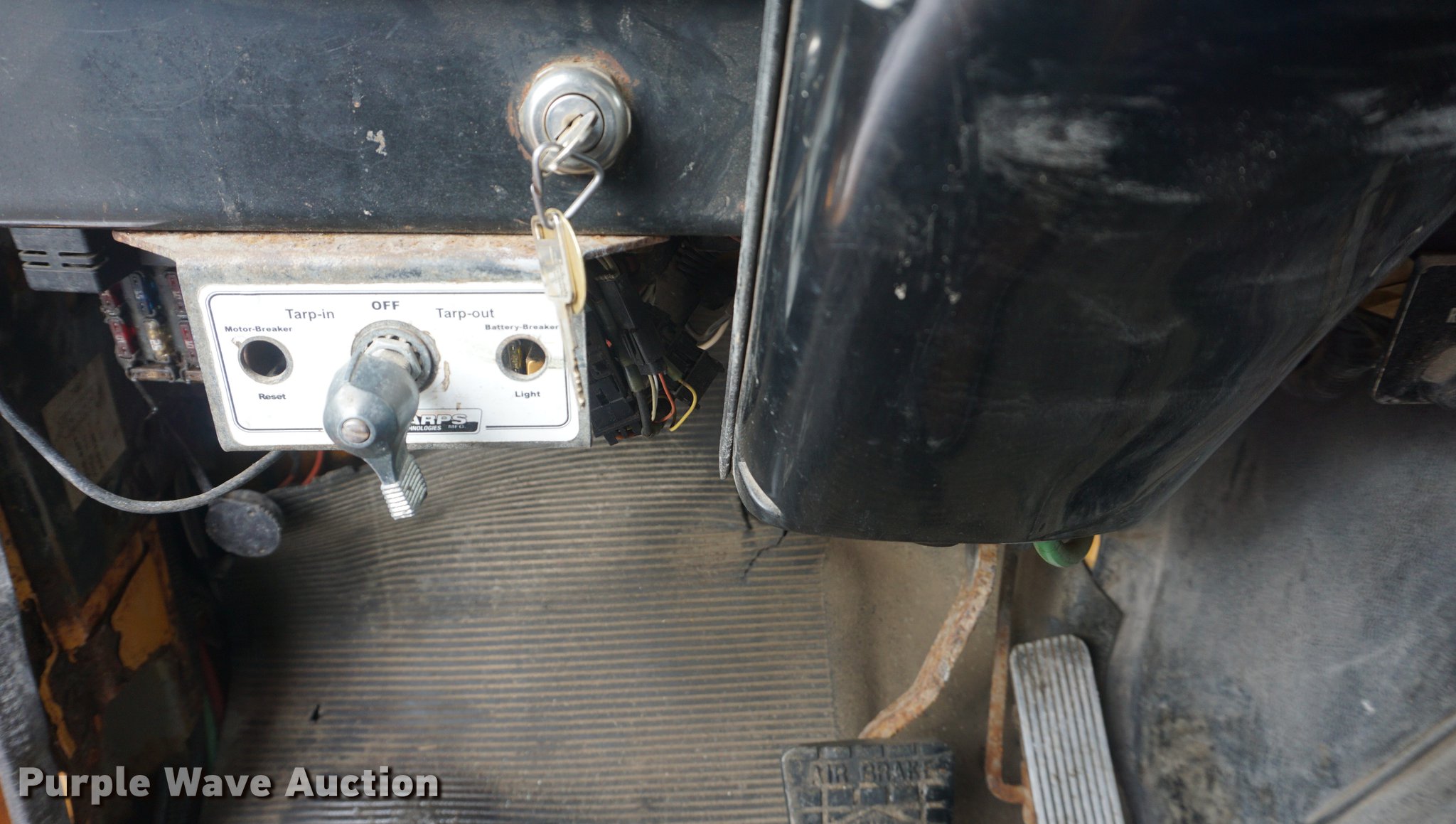Purple Wave is selling a used Construction Dump Truck in Missouri. This item is a 2002 International 4900 dump truck with the following: 124,849 miles on odometer, 11,523 hours on meter, International DT466E 7.6L L6 turbo diesel engine, 215 HP, Allison automatic transmission, Single axle, AC and heat, Cruise, AM/FM, Power and heated mirrors, Air suspension seat, Front mounted PTO, Galion 402FT steel dump bed, 10'L x 96"W, 24" side height, 5.6-6.8 cu. yd. capacity, Roll tarp, Bed vibrator, Single ram hoist, Air operated end gate, Plow mount, Single fuel tank, Pintle hitch, Spring suspension, Air brakes, 11R22.5 tires, GVWR 37,000 lbs, FAWR 16,000 lbs, RAWR 21,000 lbs, Front fenders broken, Non-operational AC