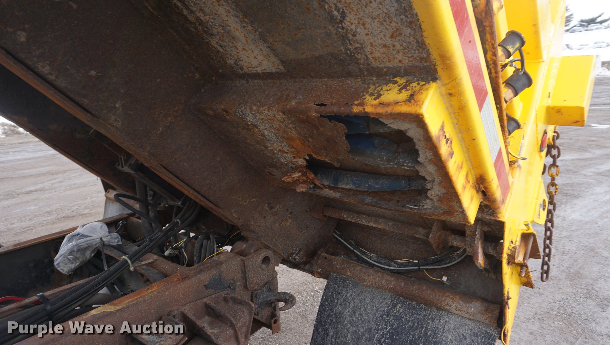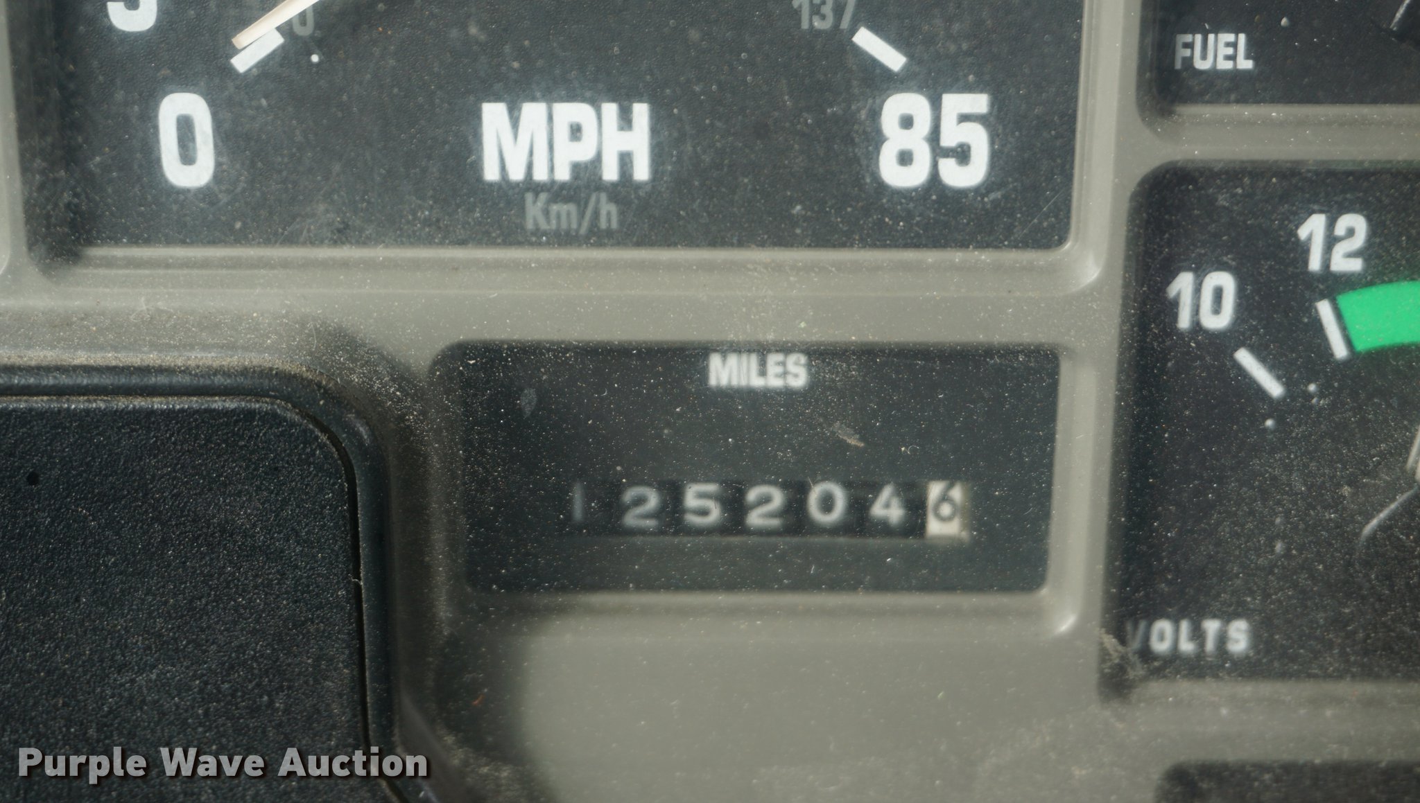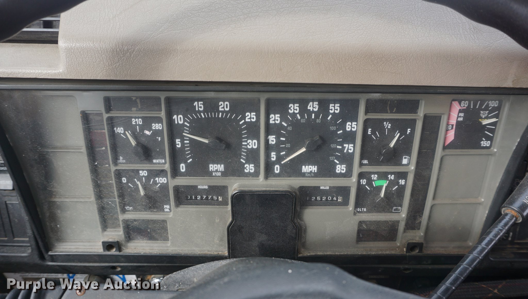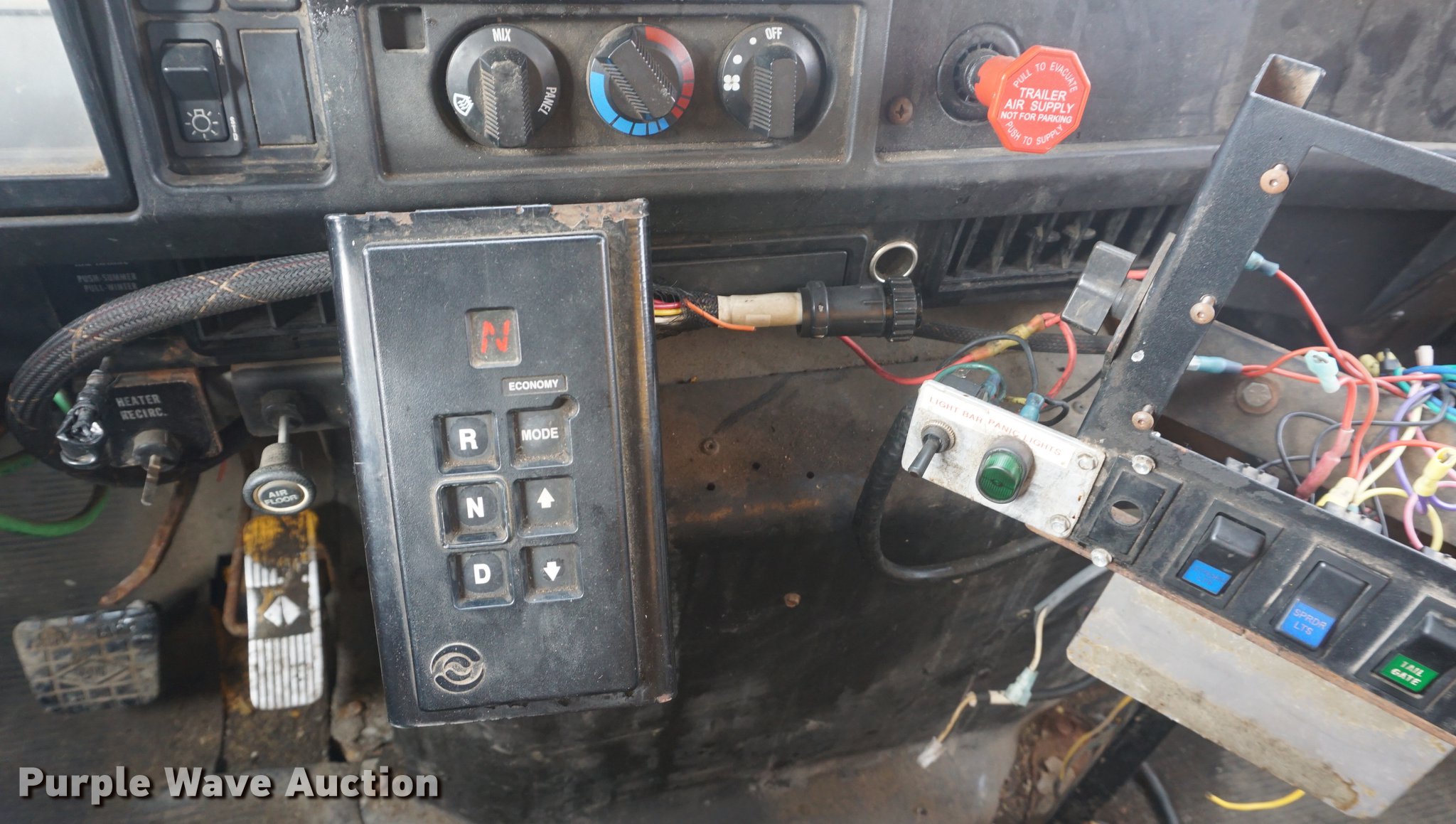 Purple Wave is selling a used Construction Dump Truck in Missouri. This item is a 2001 International 4900 dump truck with the following: 125,204 miles on odometer, 12,775 hours on meter, International DT466E 7.6L L6 turbo diesel engine, Allison automatic transmission, Single axle, Heat, Cruise, AM/FM, Heated mirrors, Air suspension seat, Front mounted PTO, Galion 402FT steel dump bed, 10'L x 96"W, 24" side height, 5.6-6.8 cu. yd. capacity, Roll tarp, Bed vibrator, Single ram hoist, Air operated end gate, Plow mount, Single fuel tank, Pintle hitch, Spring suspension, Air brakes, 11R22.5 tires, GVWR 34,220 lbs, FAWR 13,220 lbs, RAWR 21,000 lbs, Oil and fuel leak on engine, Pinion seal leaks, Air valve cylinder for bed latch inoperable, Tarp torn, Bed vibrator inoperable