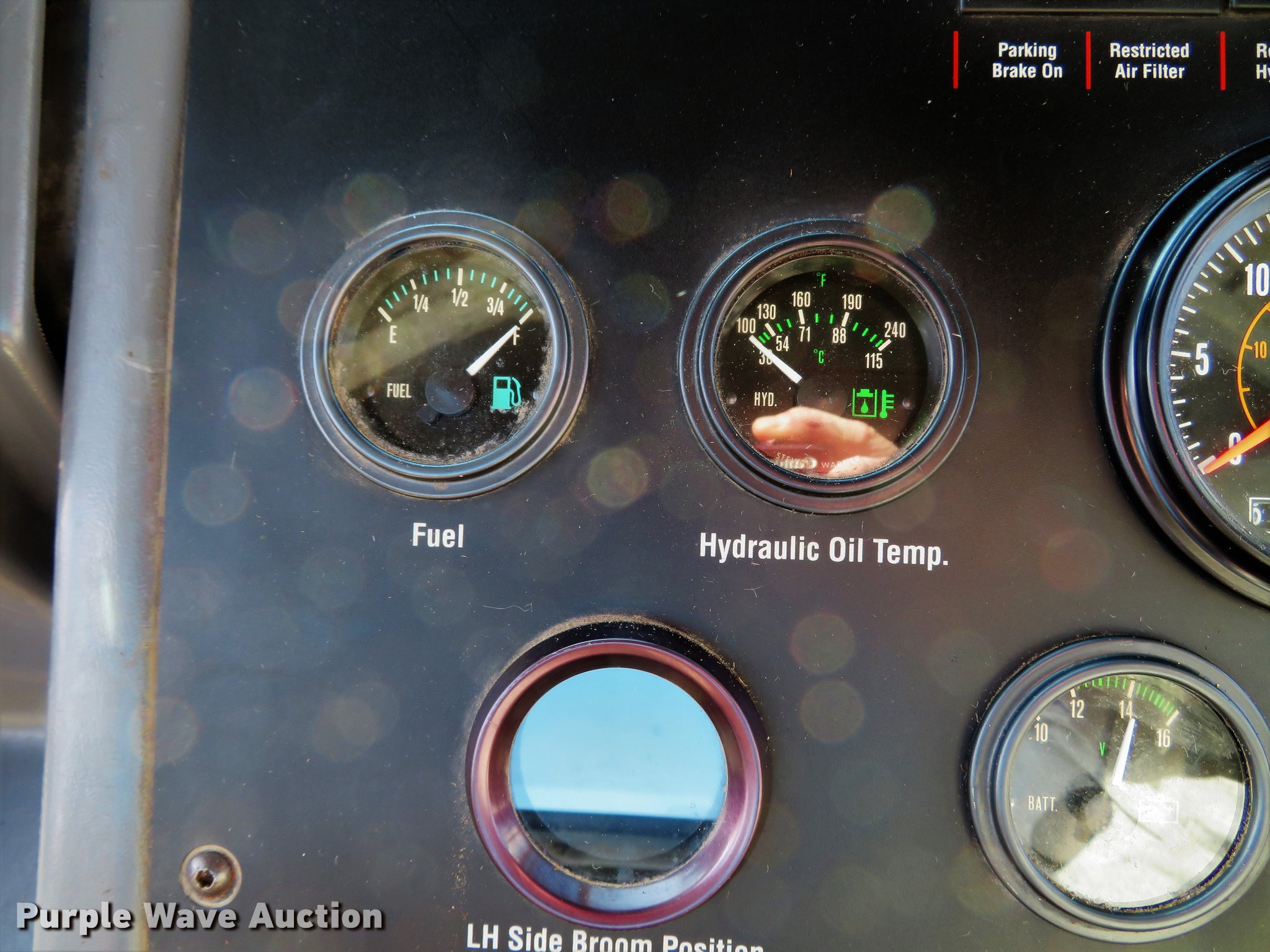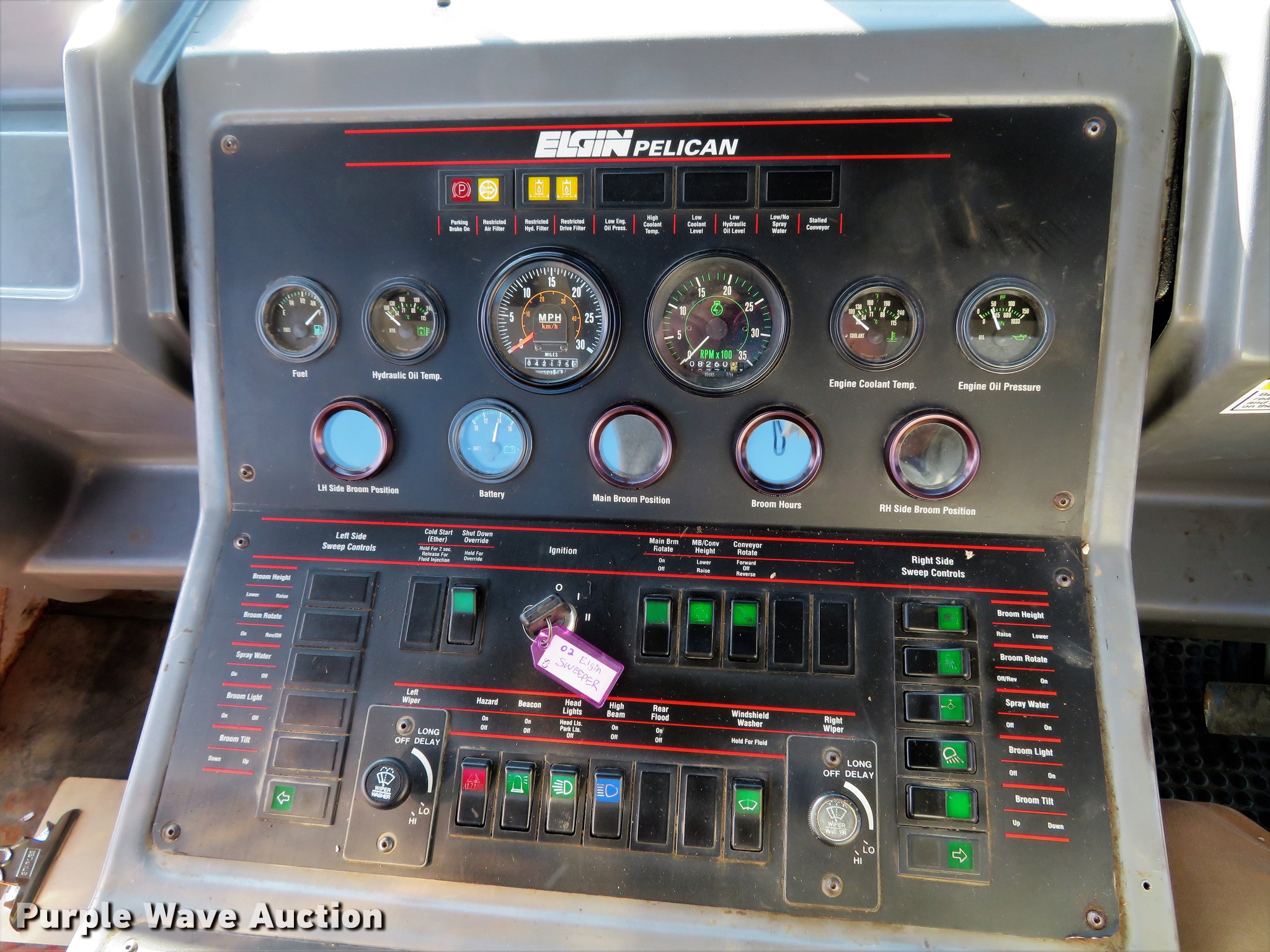 Purple Wave is selling a used Sweeper in Missouri. This item is a 2002 Elgin Pelican P series street sweeper with the following: 42,174 miles on odometer, 8,260 hours on meter, John Deere 4045T 4.5L four cylinder turbo diesel engine, 100 HP, Hydrostatic transmission, Enclosed cab, AC and heat, Air suspension seat, Wipers, 66"W broom, Hydraulic lift and rotation, Front and rear lights, Strobe light, 36" diameter right gutter broom, 35" diameter pickup broom, Water spray system, 200 gallon water system tank, 11R22.5 front tires, 10R17.5 rear tires, (5) additional sets of unused gutter broom brushes, Additional set of unused pickup brushes, Additional parts, Additional tire and wheel, Engine bay door shocks inoperable, Cracked windshield, Main broom motor leaks oil, Right gutter broom motor leaks oil, Serial P3726S