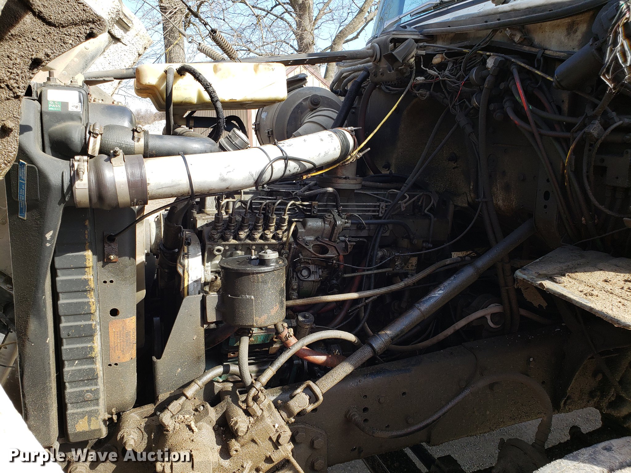 Purple Wave is selling a used Construction Dump Truck in Missouri. This item is a 1994 Ford L8000 dump truck with the following: 169,948 miles on odometer, Cummins 8.3L L6 turbo diesel engine, Automatic transmission, Tandem axle, Heat, Air suspension seat, PTO, 13'L x 8'W steel dump bed, 40" side height, 7"H side boards, Single ram hoist, Air operated end gate, Receiver hitch, Spring over walking beam suspension, Air brakes, 315/80R22.5 front tires, 11R22.5 rear tires, GVWR 56,000 lbs, Engine blow-by, Cracked windshield