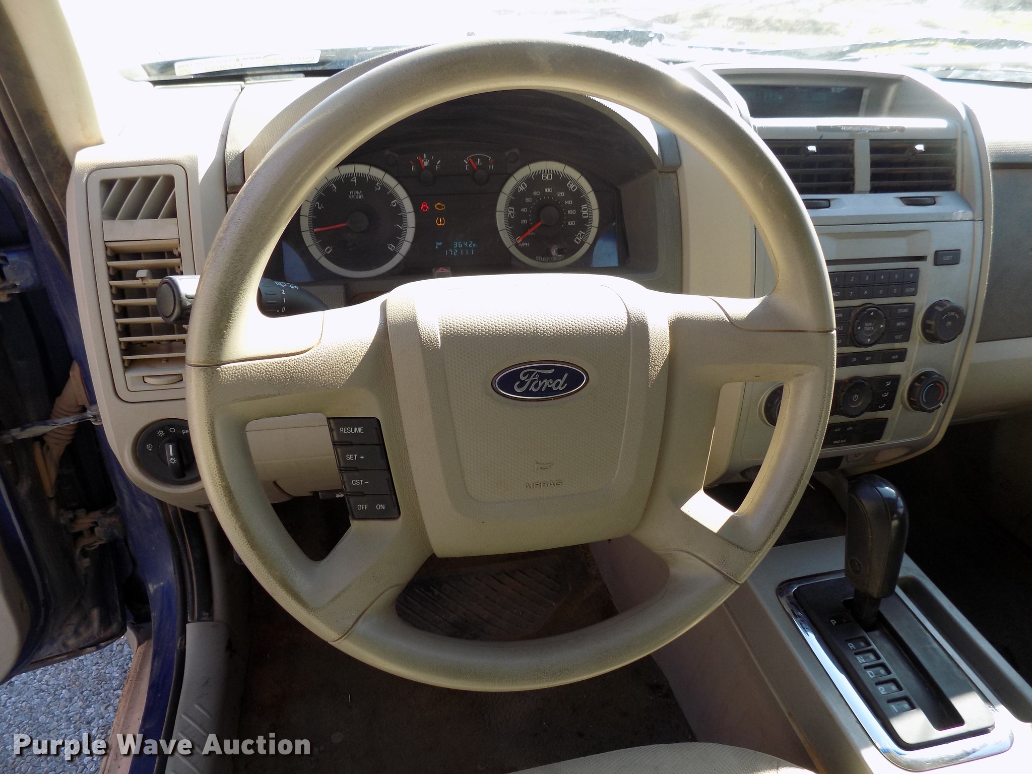 Purple Wave is selling a used Passenger Vehicle in Oklahoma. This item is a 2008 Ford Escape SUV with the following: 172,111 miles on odometer, 2.3L L4 DOHC 16V gas engine, Automatic transmission, Four wheel drive, AC and heat, Tilt, Cruise, AM/FM, Power windows, locks, and mirrors, Cloth interior, 235/70R16 tires, Vehicle will only travel at 20 MPH