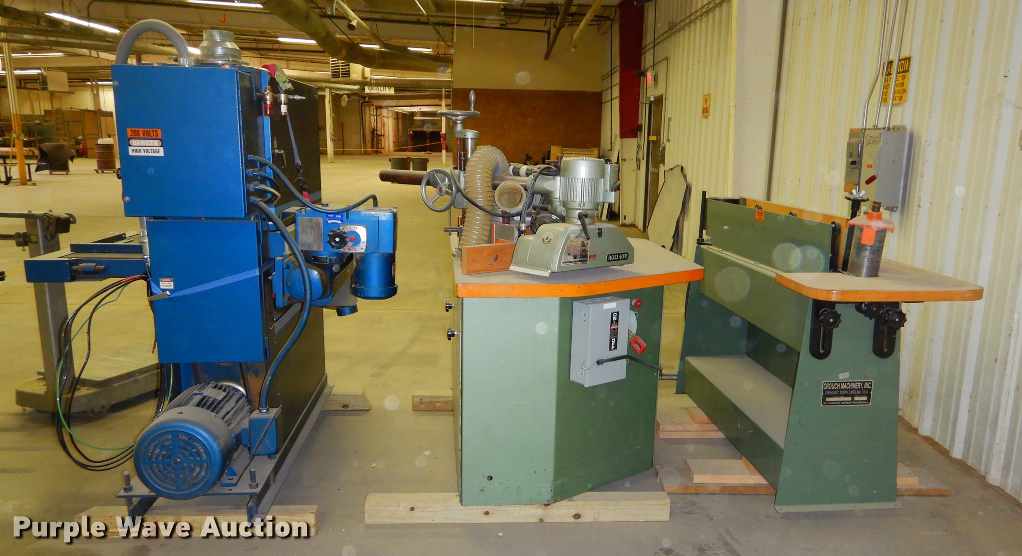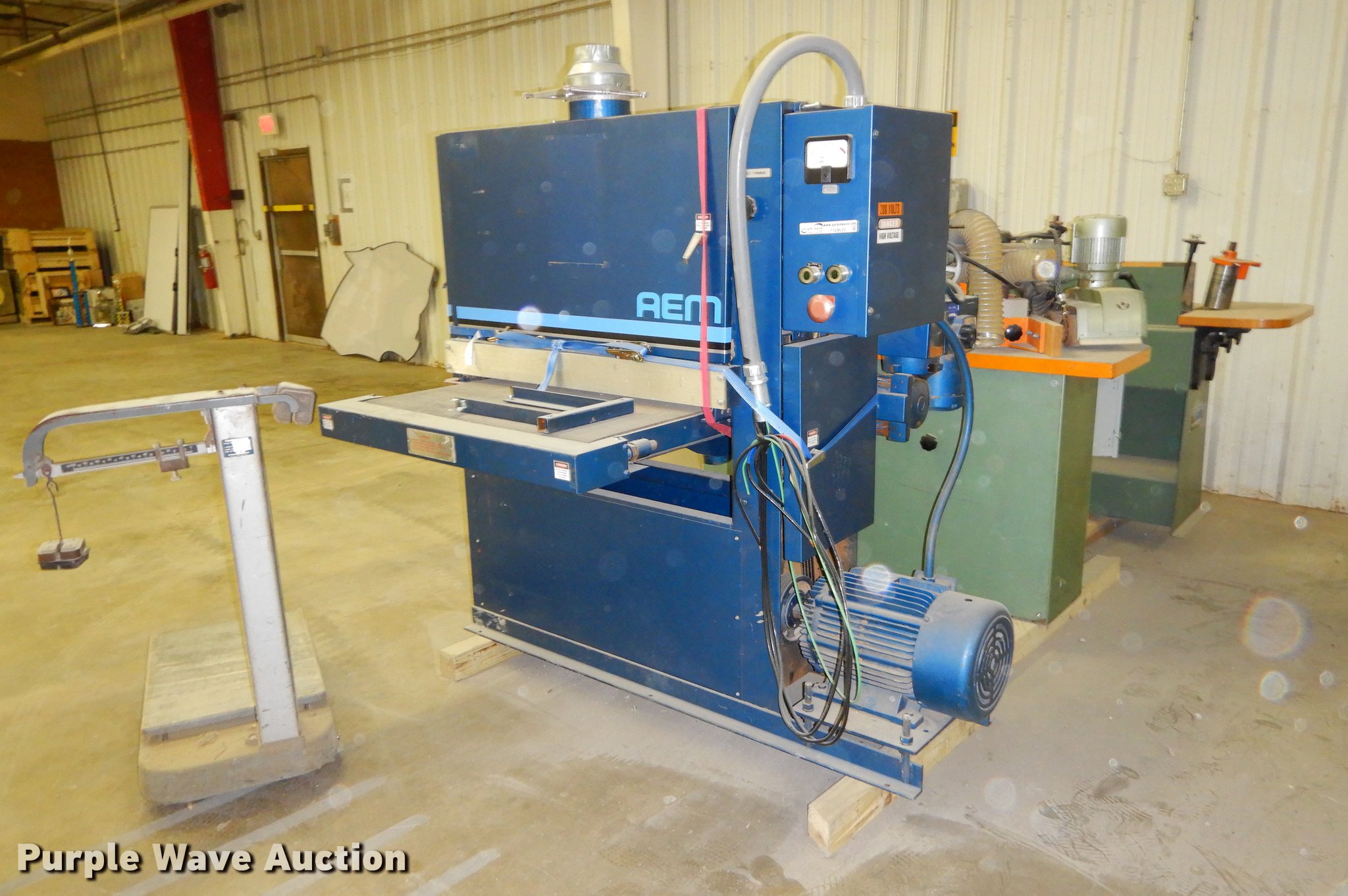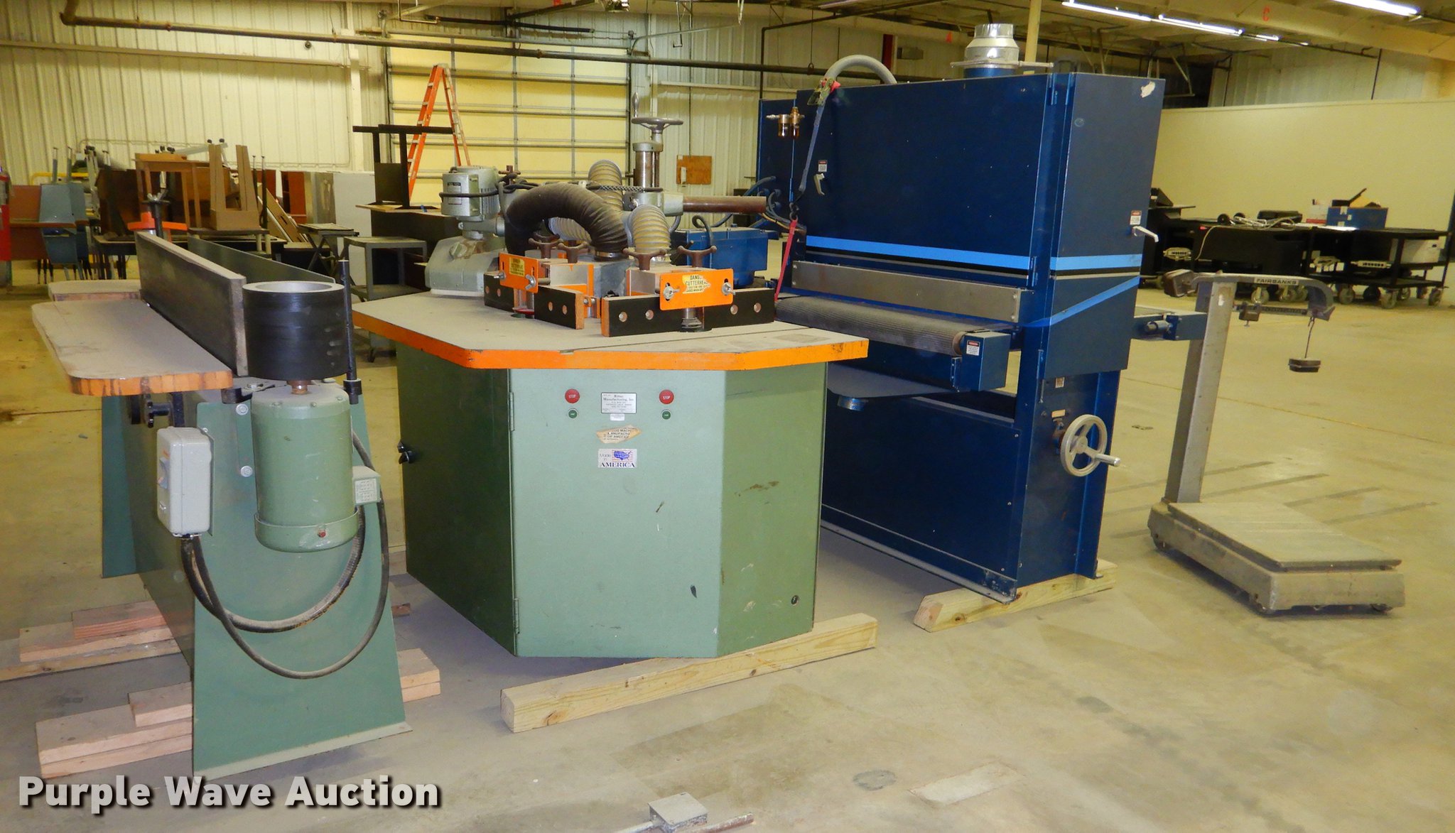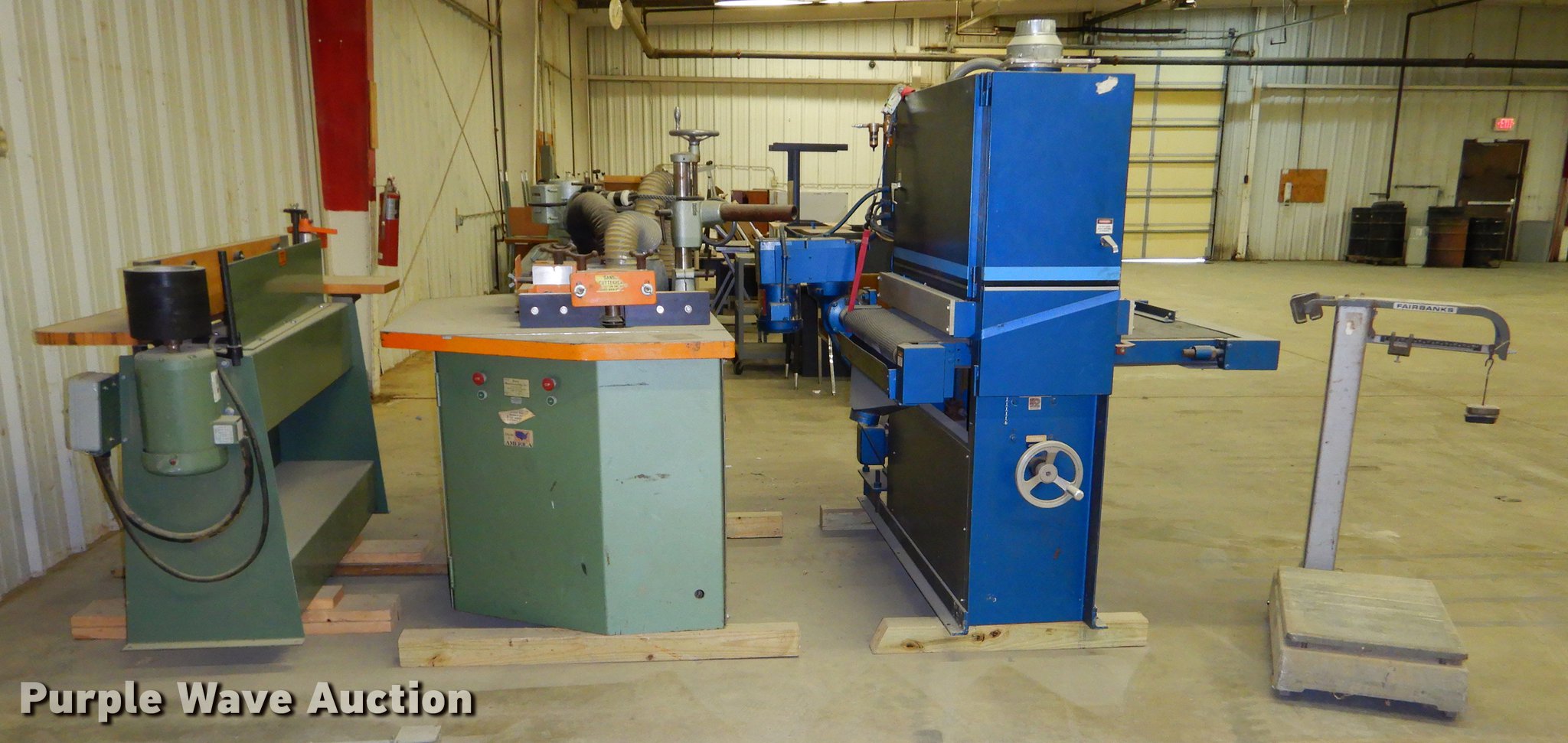 Purple Wave is selling a used Tools in Kansas. This item is a Tools with the following: Fairbands 41-3132 scale, 1,000 lbs capacity, Serial G806130, AEM 370COMBIN2770N planer, 6'L x 4'W x 65"H, Three phase, Unknown operating condition, Ritter R30 router, 70"L x 41"W x 48"H, Three phase, Serial 33, Unknown operating condition, Crouch Machinery 81-70 belt sander, 80"L x 28"W x 48"H, Three phase, Serial 059890, Unknown operating condition