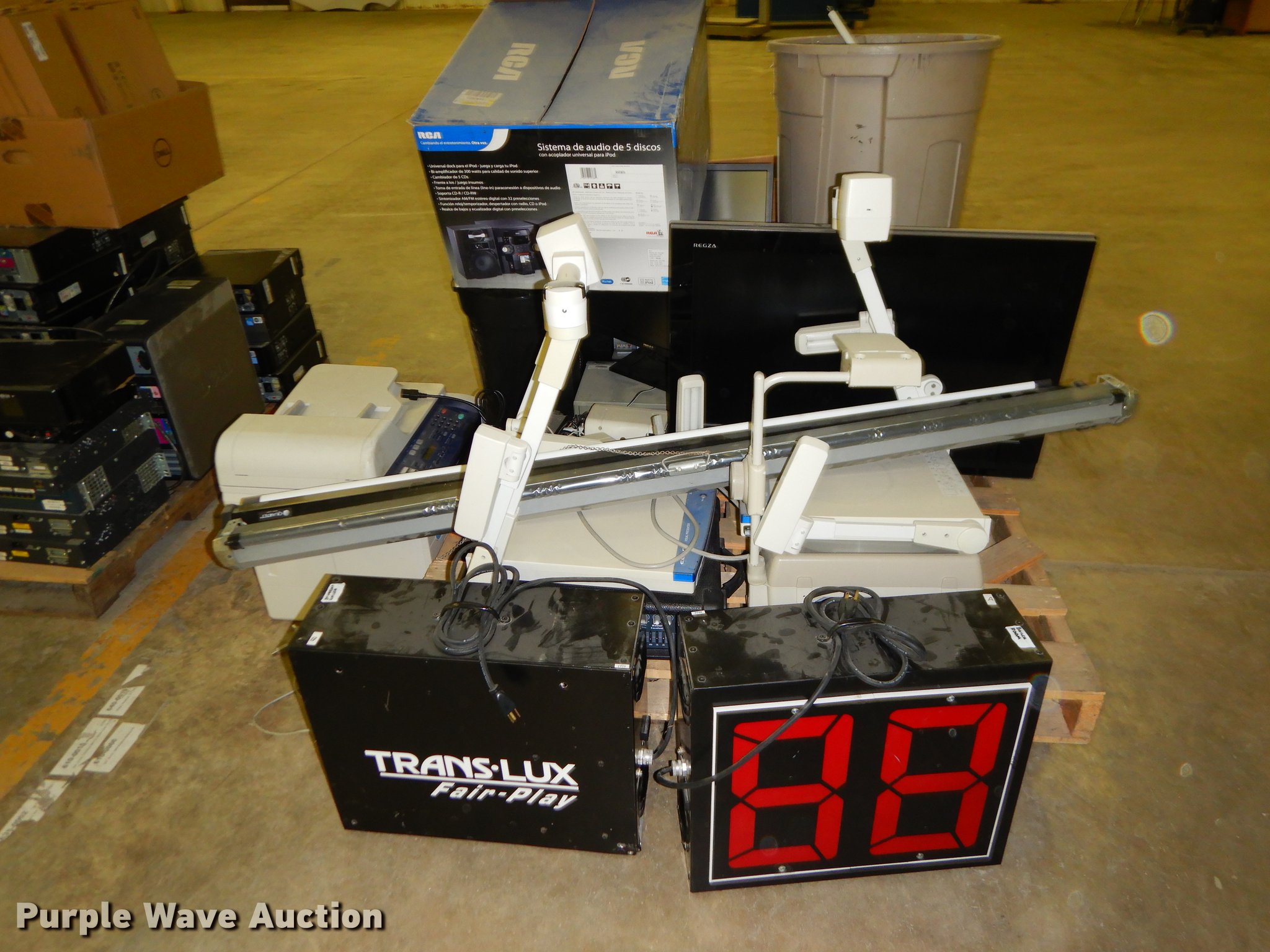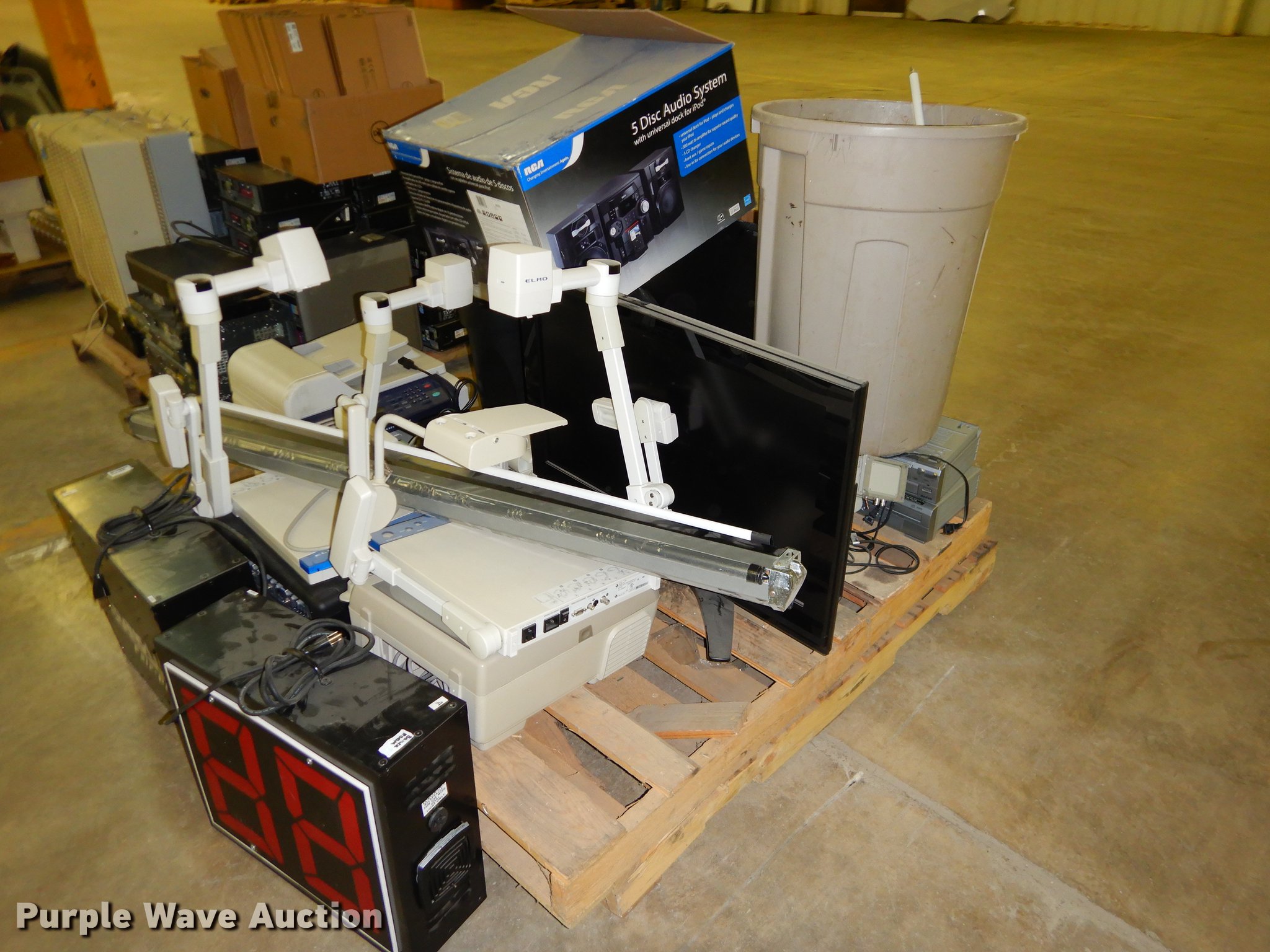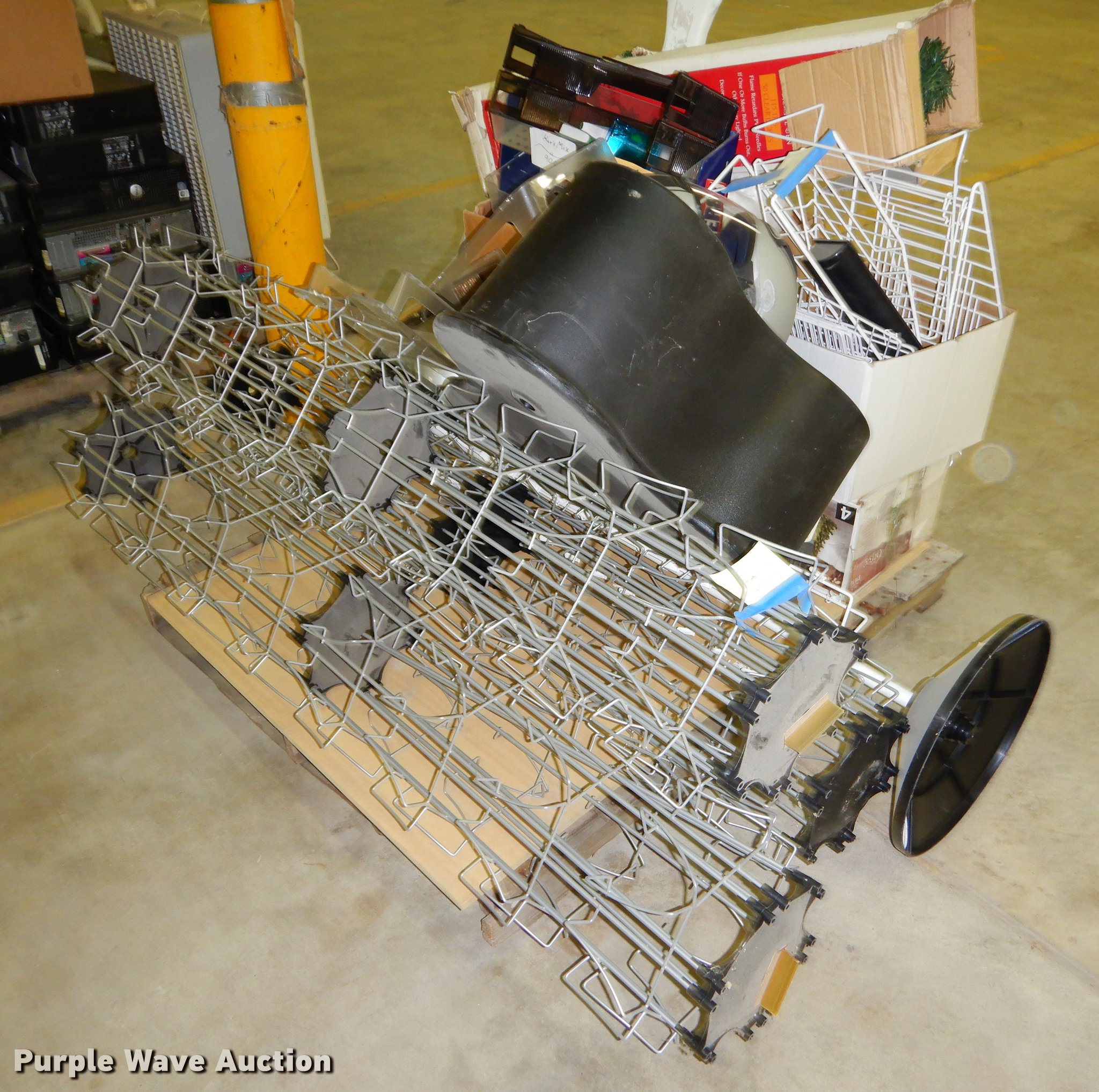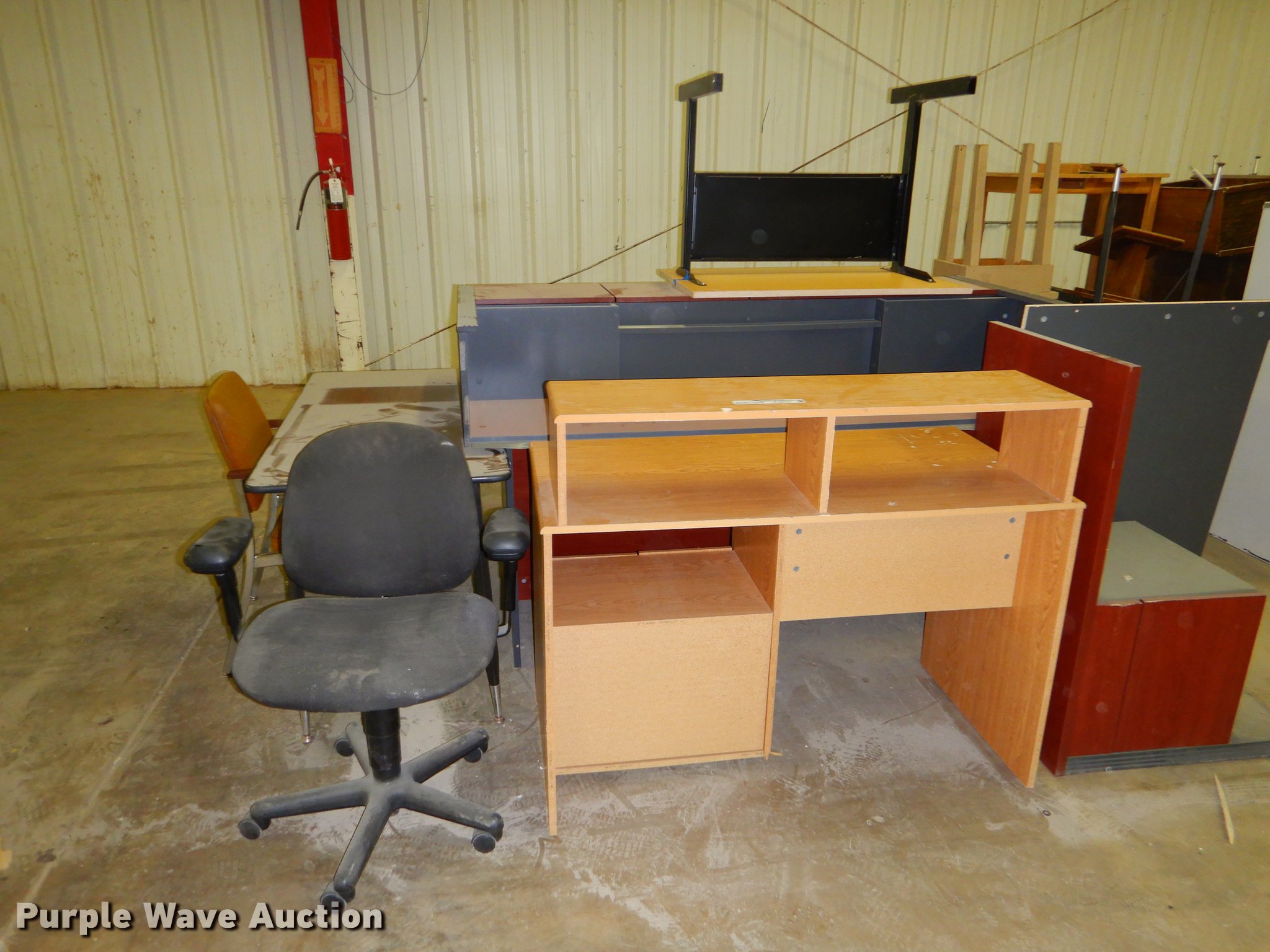 Purple Wave is selling a used Office Supplies and Equip. in Kansas. This item is a Office supplies with the following: (2) chairs, (2) desks, (5) tables, (11) carts, (3) file cabinets, (5) dry erase boards, (4) metal desks, (4) cabinets, (7) school chairs, (2) smartboards, Unknown operating condition, (10) AV carts, (2) dollies, Ice machine, Unknown operating condition, (3) overhead projectors, (2) radios, (2) projector screens, (2) monitors, Approximately 30 CPU's, (2) box fans, (3) card racks, (2) motorcycle helmets, (6) restaurant tables, (9) booths