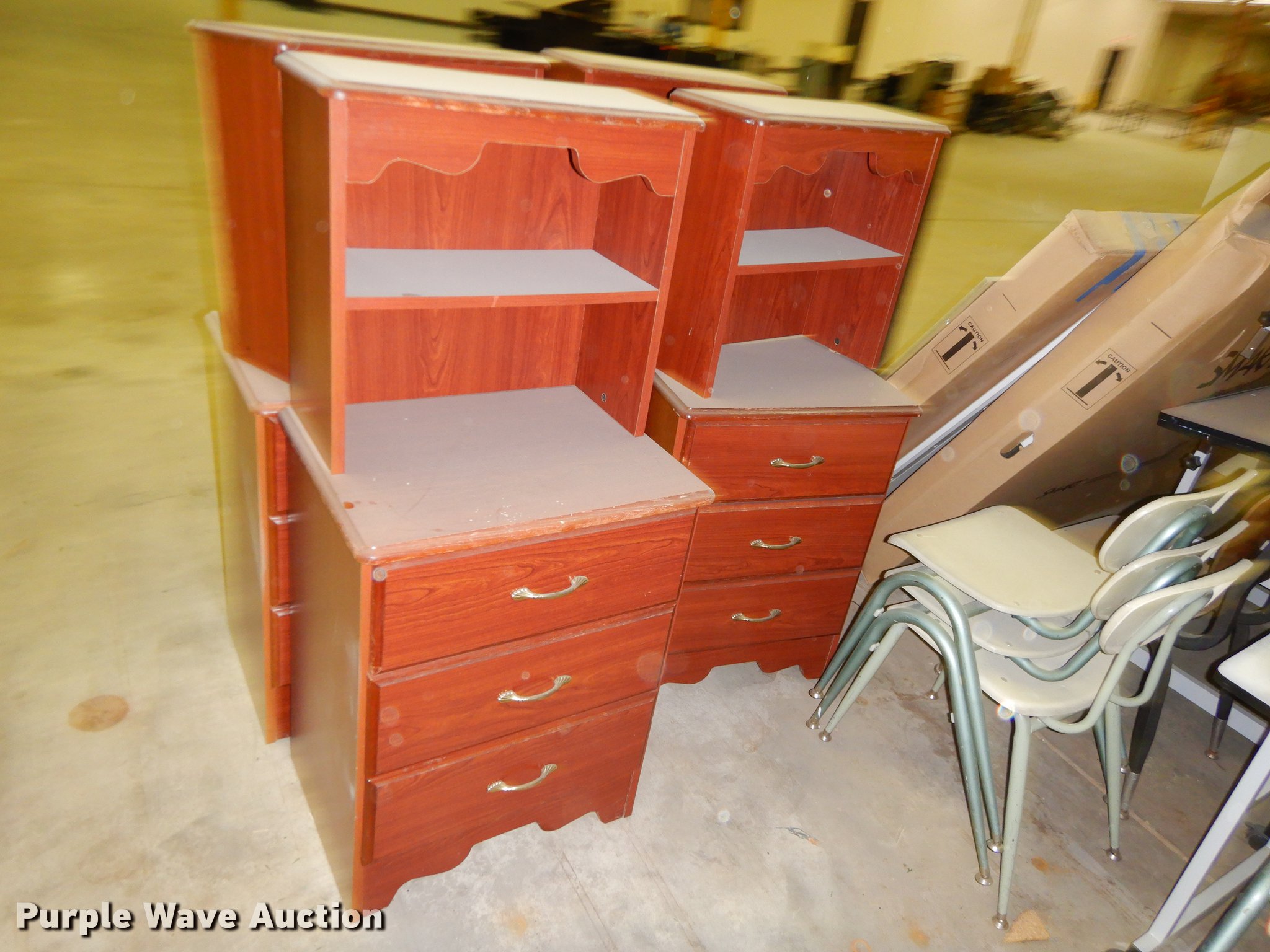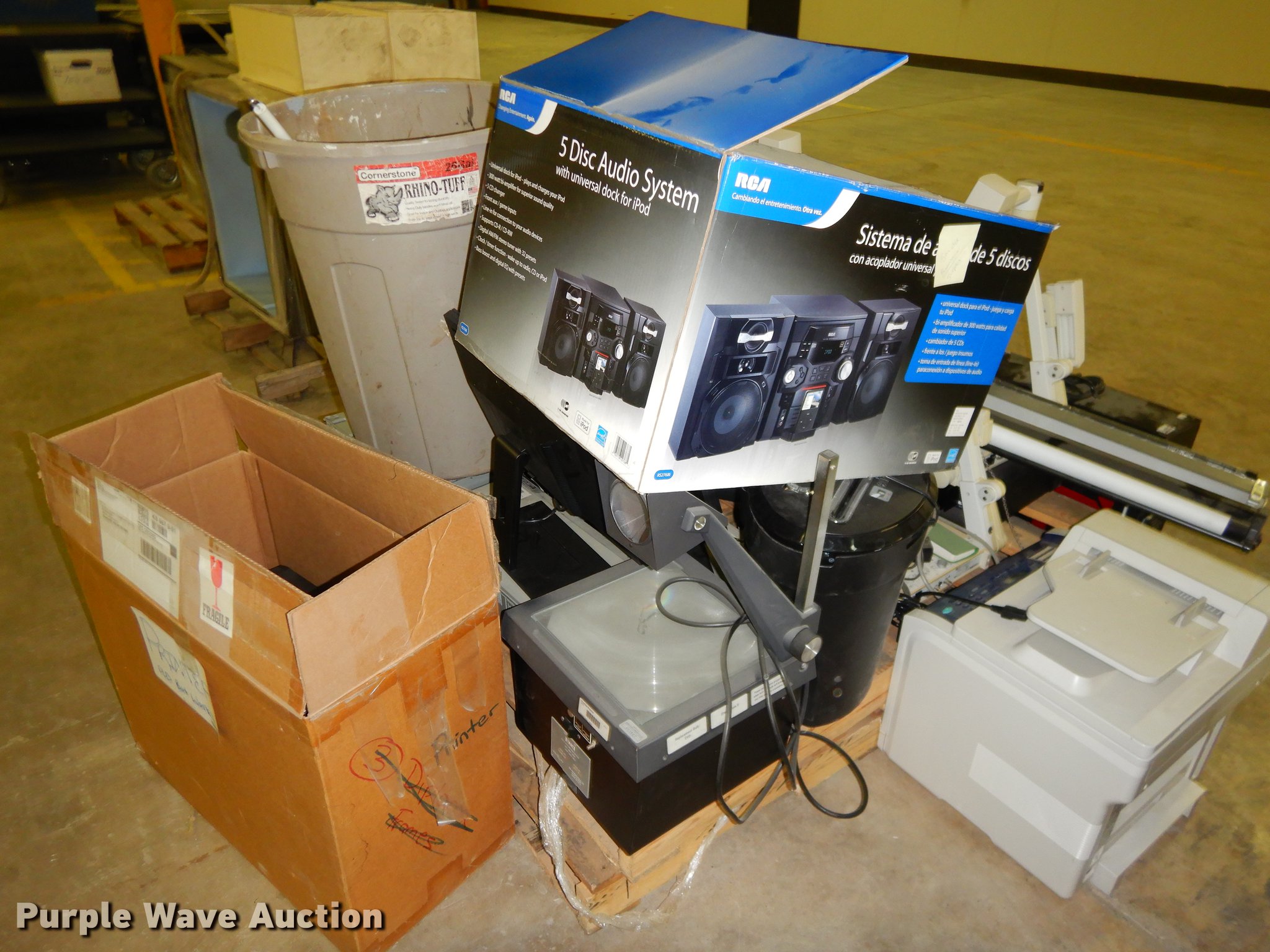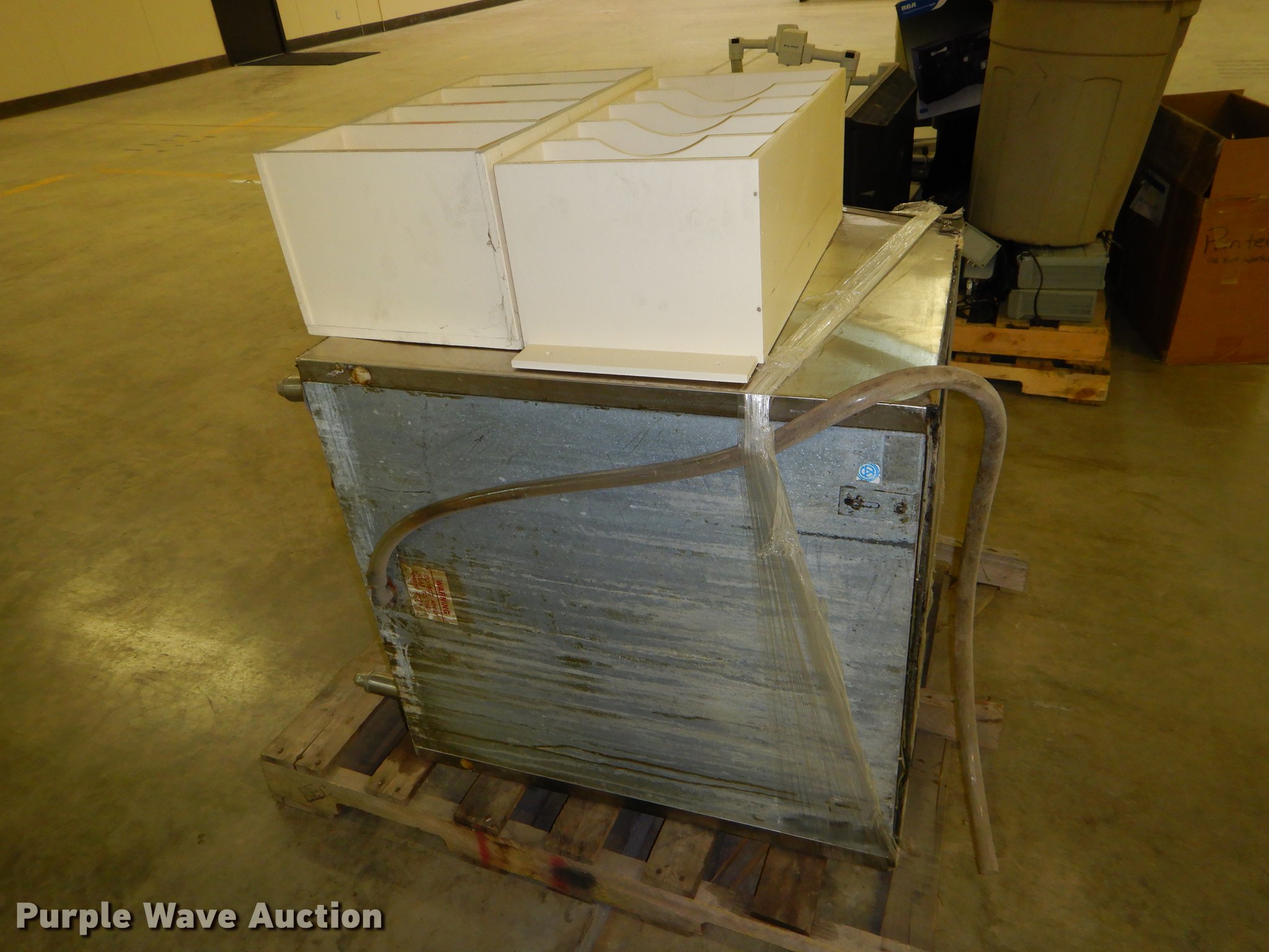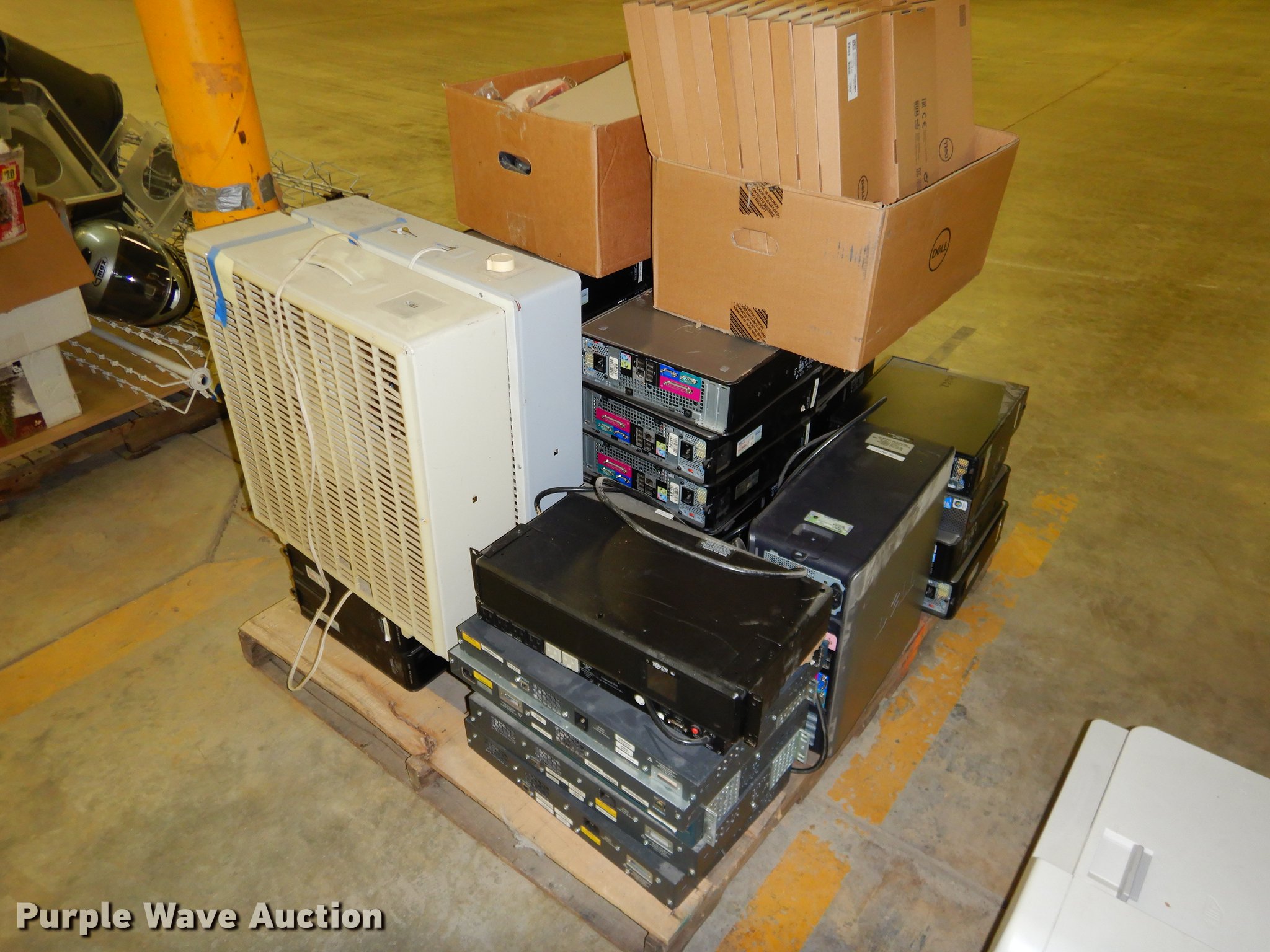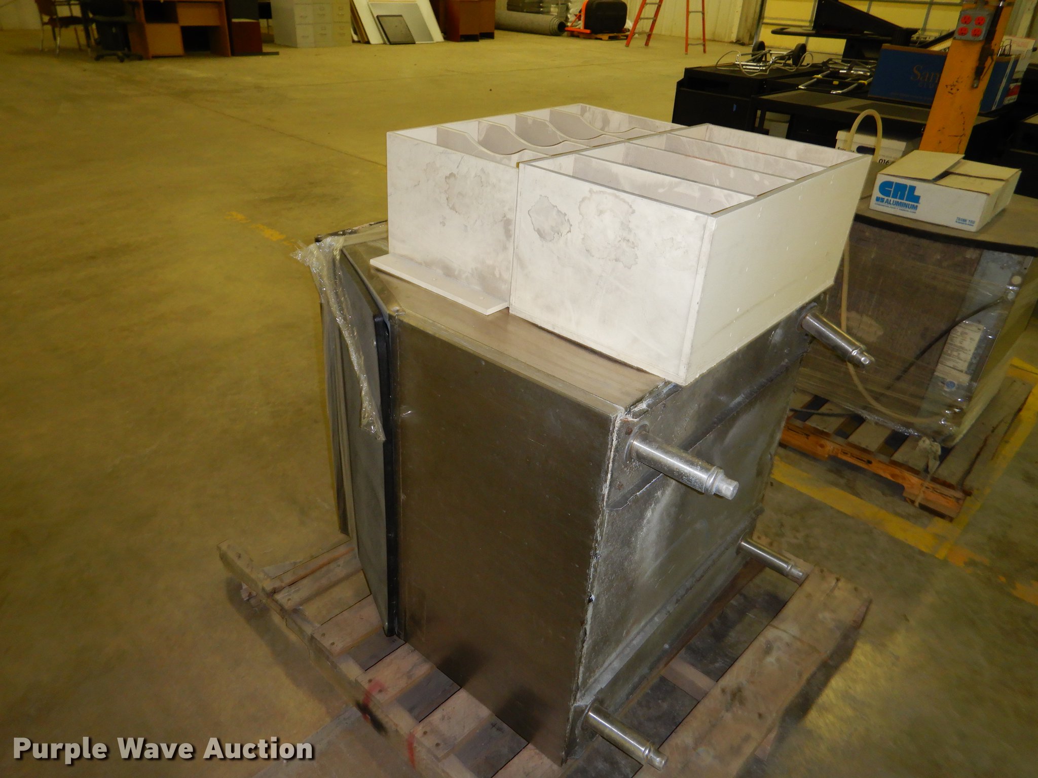 Purple Wave is selling a used Office Supplies and Equip. in Kansas. This item is a Office supplies with the following: (2) chairs, (2) desks, (5) tables, (11) carts, (3) file cabinets, (5) dry erase boards, (4) metal desks, (4) cabinets, (7) school chairs, (2) smartboards, Unknown operating condition, (10) AV carts, (2) dollies, Ice machine, Unknown operating condition, (3) overhead projectors, (2) radios, (2) projector screens, (2) monitors, Approximately 30 CPU's, (2) box fans, (3) card racks, (2) motorcycle helmets, (6) restaurant tables, (9) booths