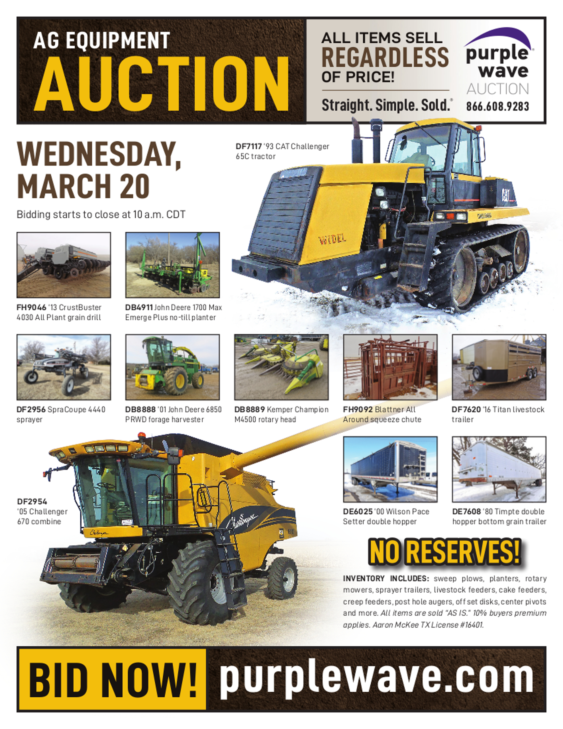 This auction is conducted by Purple Wave, Inc., whose home office is 825 Levee Drive, Manhattan, Kansas. Aaron McKee, Texas auctioneer license # 16401, operates Purple Wave, Inc. Complaints against us may be directed to the Texas Department of Licensing and Regulation, P.O. Box 12157, Austin, Texas 78711, (512) 463-6599. For additional required information, see the attached document.