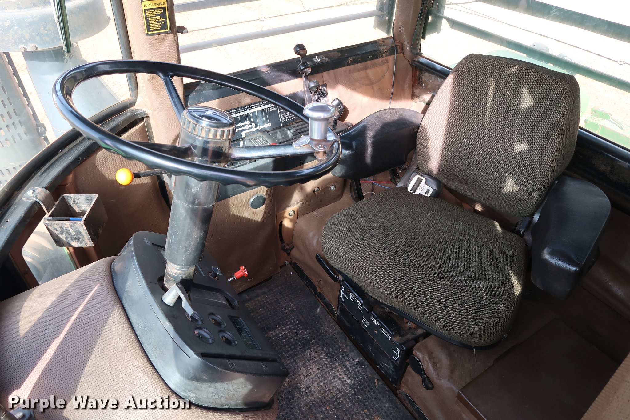Purple Wave is selling a used Articulated 4-Wheel Drive Tractor in Oklahoma. This item is a 1987 John Deere 8650 4WD tractor with the following: 10,376 hours on meter, John Deere 6619AR-11 10.1L six cylinder turbo diesel engine, 290 HP, Serial RG6619A055793, Quad-Range transmission, 16F-6R gears, Differential lock, AC and heat, Tilt steering wheel, AM/FM, Visor, Front and rear work lights, Block heater, Ether start, Three point, Quick attach, Seven pin outlet, (3) rear hydraulic remote sets, 125" wheelbase, Kelly-Springfield 20.8R38 dual tires, Serial RW8650H008607