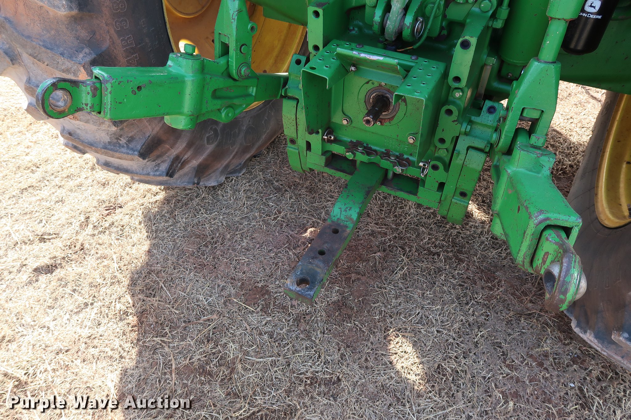 Purple Wave is selling a used Tractor in Oklahoma. This item is a 2002 John Deere 7410 tractor with the following: 4,346 hours on meter, John Deere 6068TRW51 6.8L six cylinder turbo diesel engine, 120 HP, Serial PE6068T203207, Powr Quad transmission, 16F-16R gears, Differential lock, AC and heat, Tilt steering wheel, AM/FM, Suspension seat, Block heater, Three point, Seven pin outlet, 540/1000 PTO, Rear draw bar, (3) rear hydraulic remote sets, (6) suitcase weights, 112" wheelbase, 11.00-16 front tires, 18.4R38 rear tires, Serial RW7410H076185