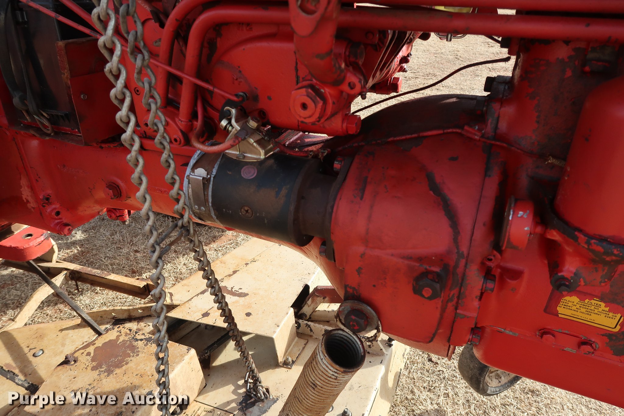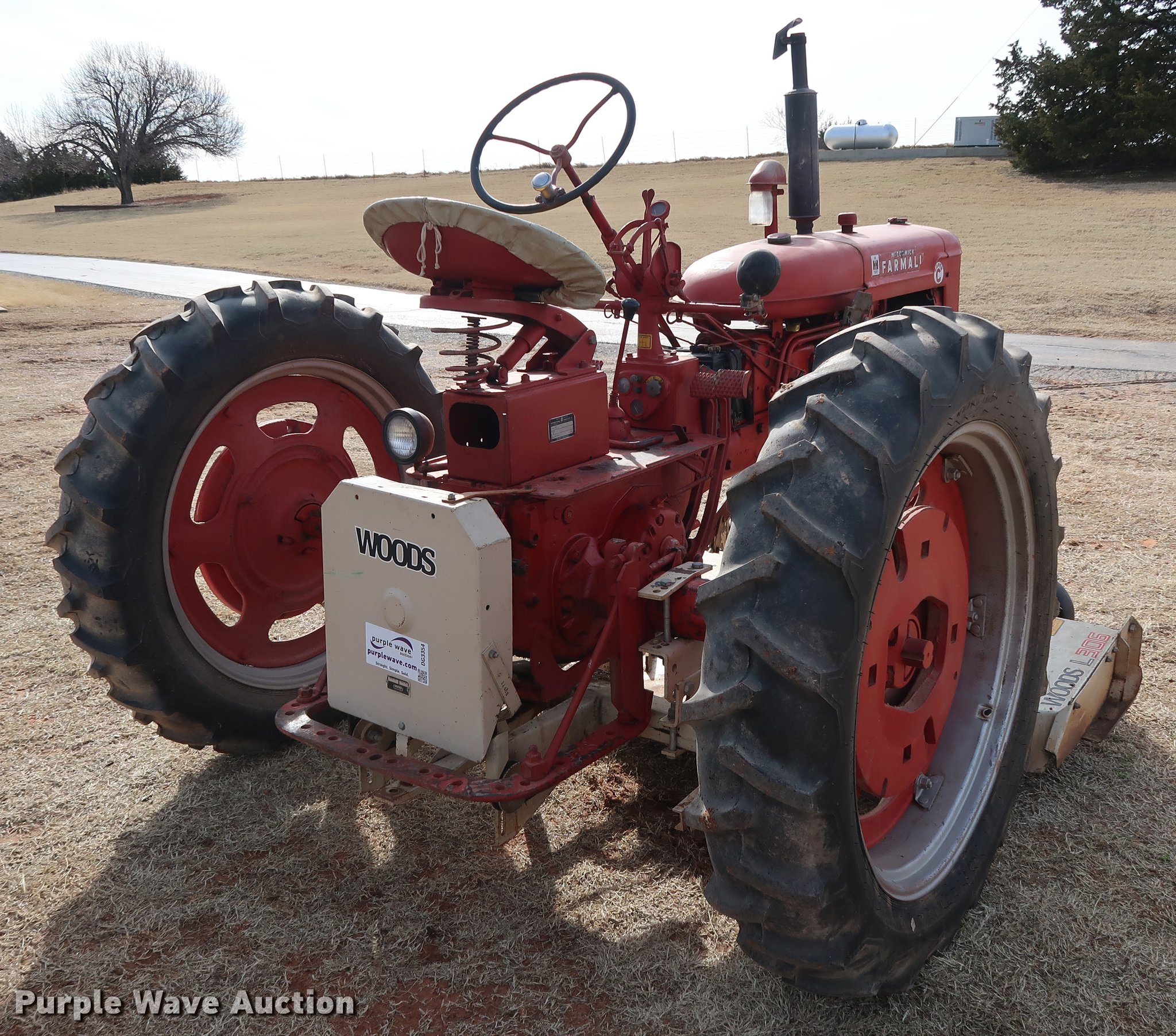 Purple Wave is selling a used Tractor in Oklahoma. This item is a 1952 Mccormick Farmall Super C tractor with the following: International 2.0L four cylinder gas engine, Sleeved engine, Upgraded to 12V system with alternator, Manual transmission, 4F-1R gears, Suspension seat, 540 PTO, Woods L306-U-1 belly rotary mower, 6'W, Serial 11549, 82"W wheelbase, 5.00-15 front tires, 11.2/36 rear tires, Serial FC-134612
