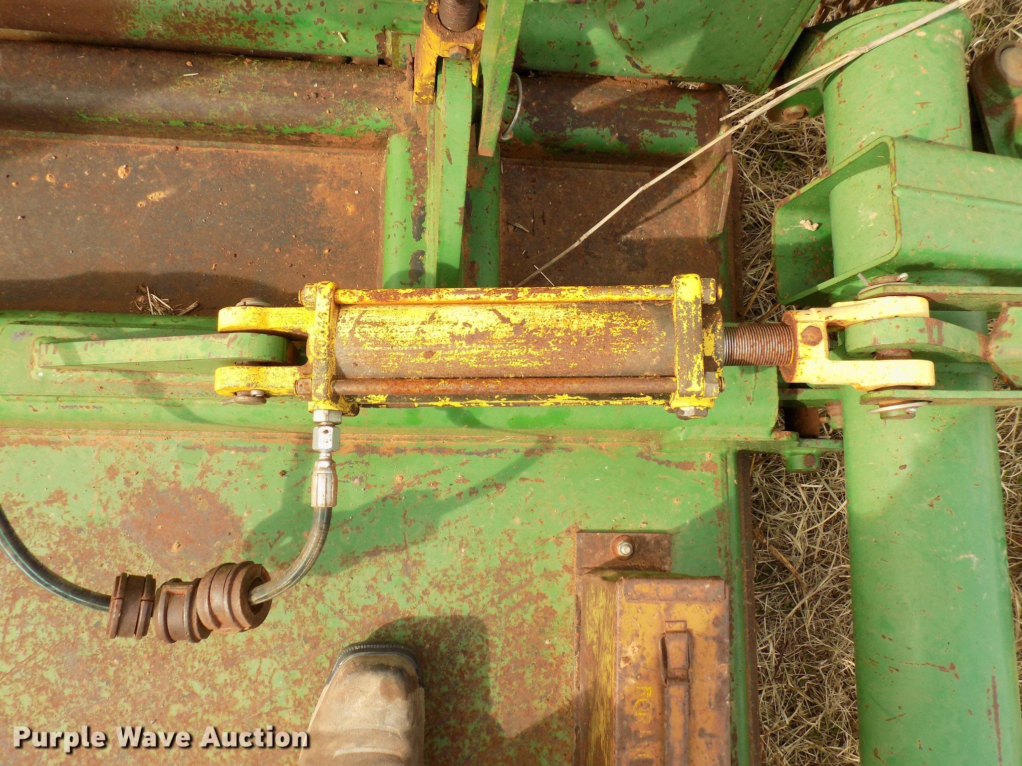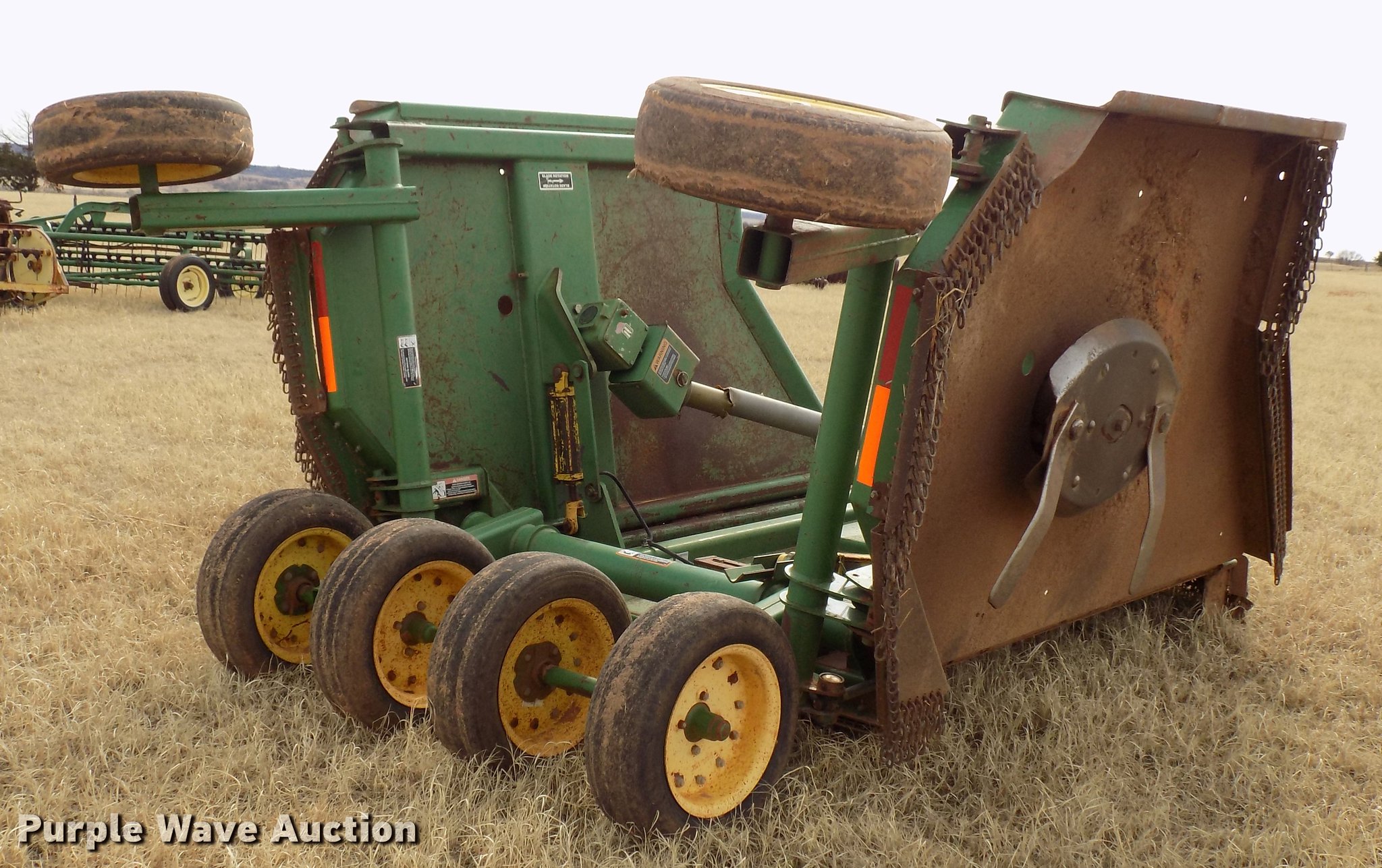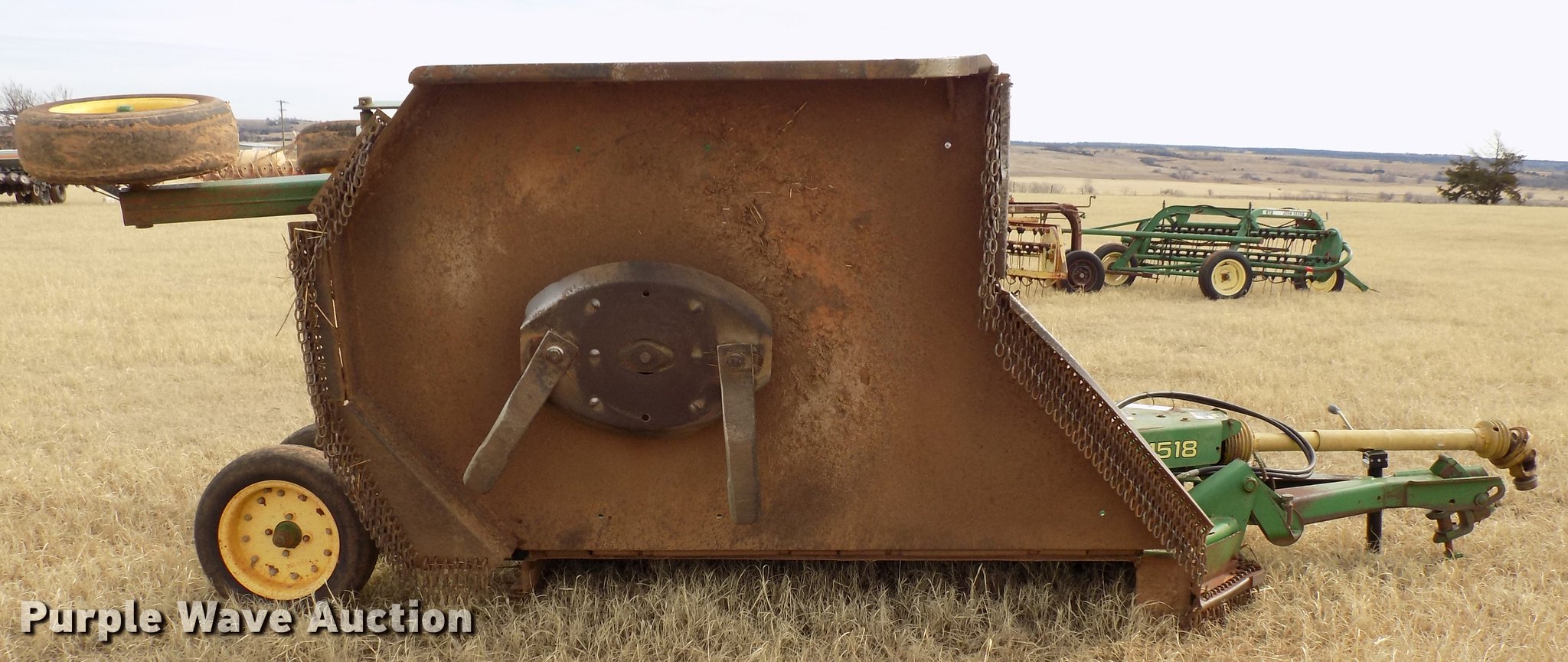 Purple Wave is selling a used Mower, Cutter, Shredder in Oklahoma. This item is a John Deere 1518 batwing rotary mower with the following: 15'W, Hydraulic lift and fold, Safety chains, 540 PTO, Pin hitch, 14" airplane tires, Serial W01518E011139