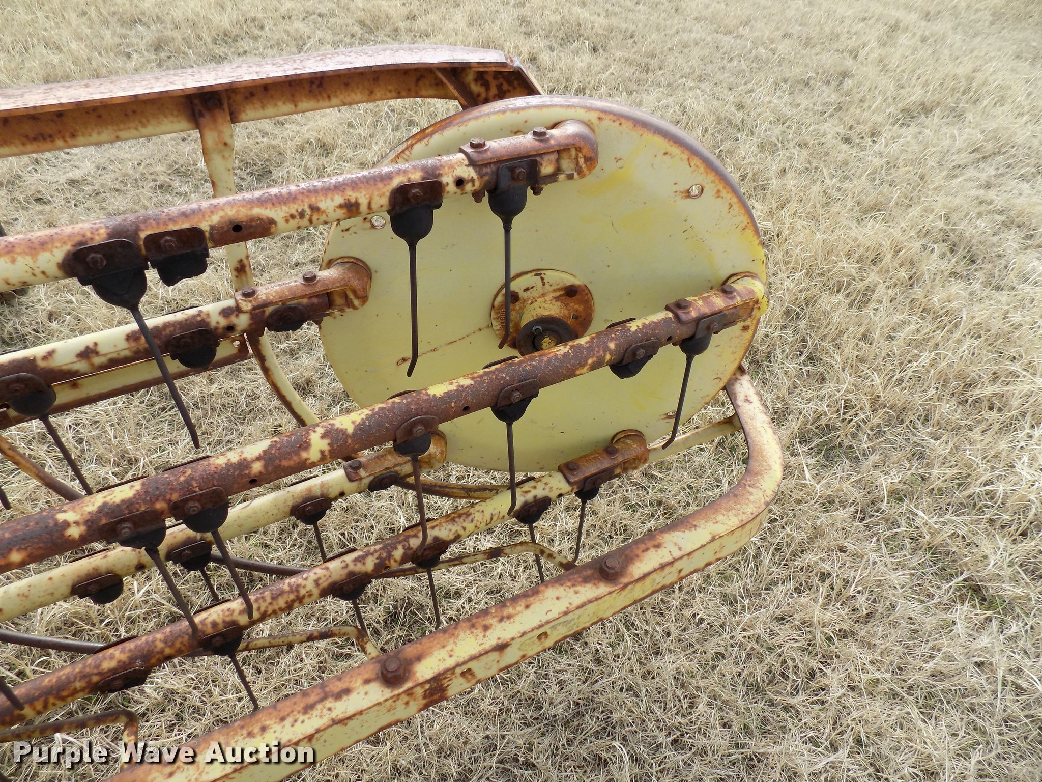 Purple Wave is selling a used Hay Rake in Oklahoma. This item is a John Deere 670 hay rake with the following: Ground driven, Pin hitch, 205/75-15 tires, Serial 347699
