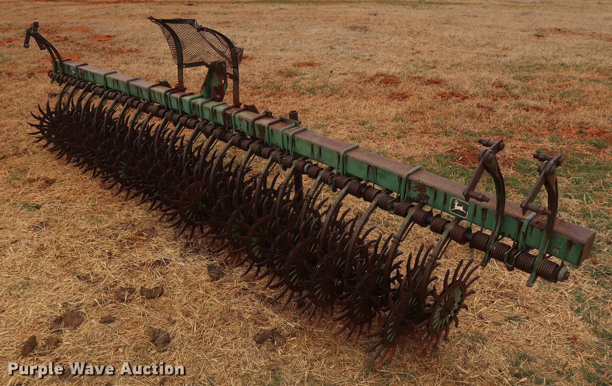 Purple Wave is selling a used Rotary Tillage in Oklahoma. This item is a John Deere 400 rotary hoe with the following: 15'W, 20" diameter blades, 7" spacing, Spring loaded, Three point, Serial 056914N