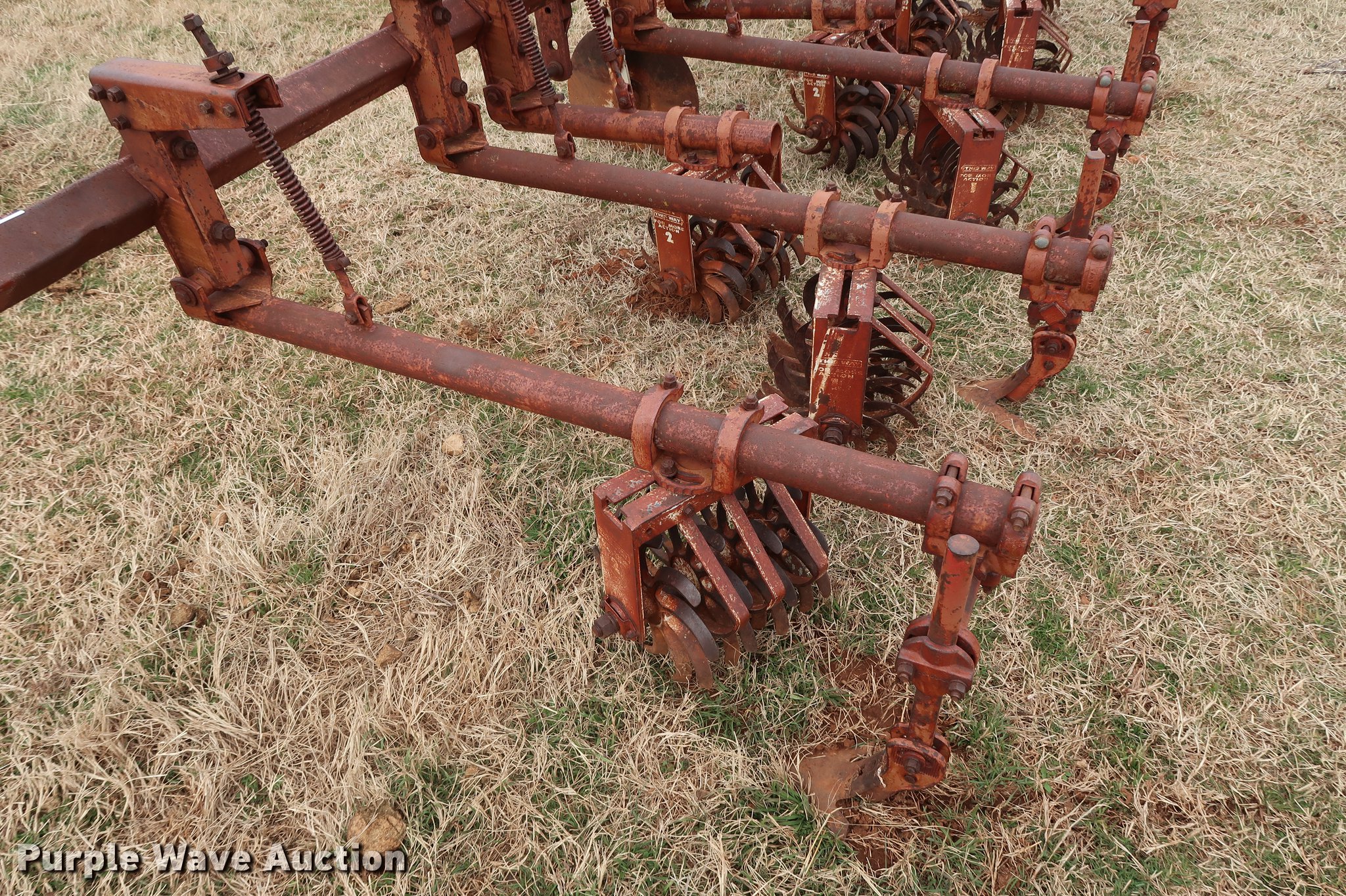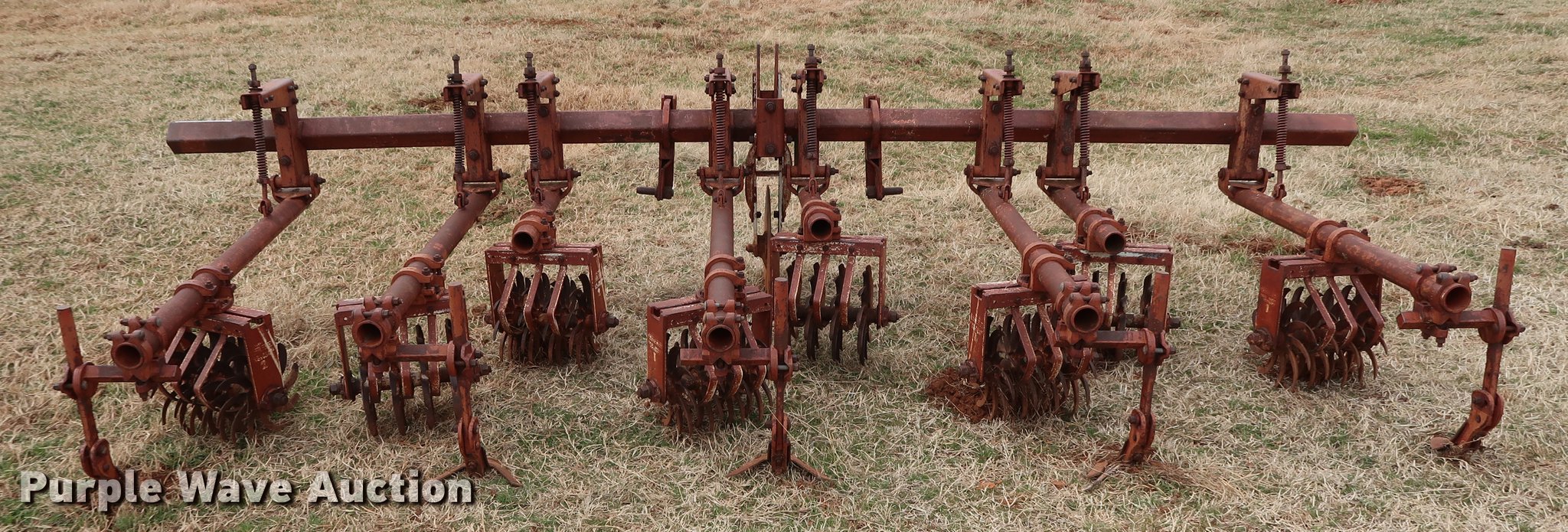 Purple Wave is selling a used Rotary Tillage in Oklahoma. This item is a Lilliston rolling cultivator with the following: Four rows, 14" diameter disks, 7"W sweeps, Rigid shank, 36" spacing, Three point
