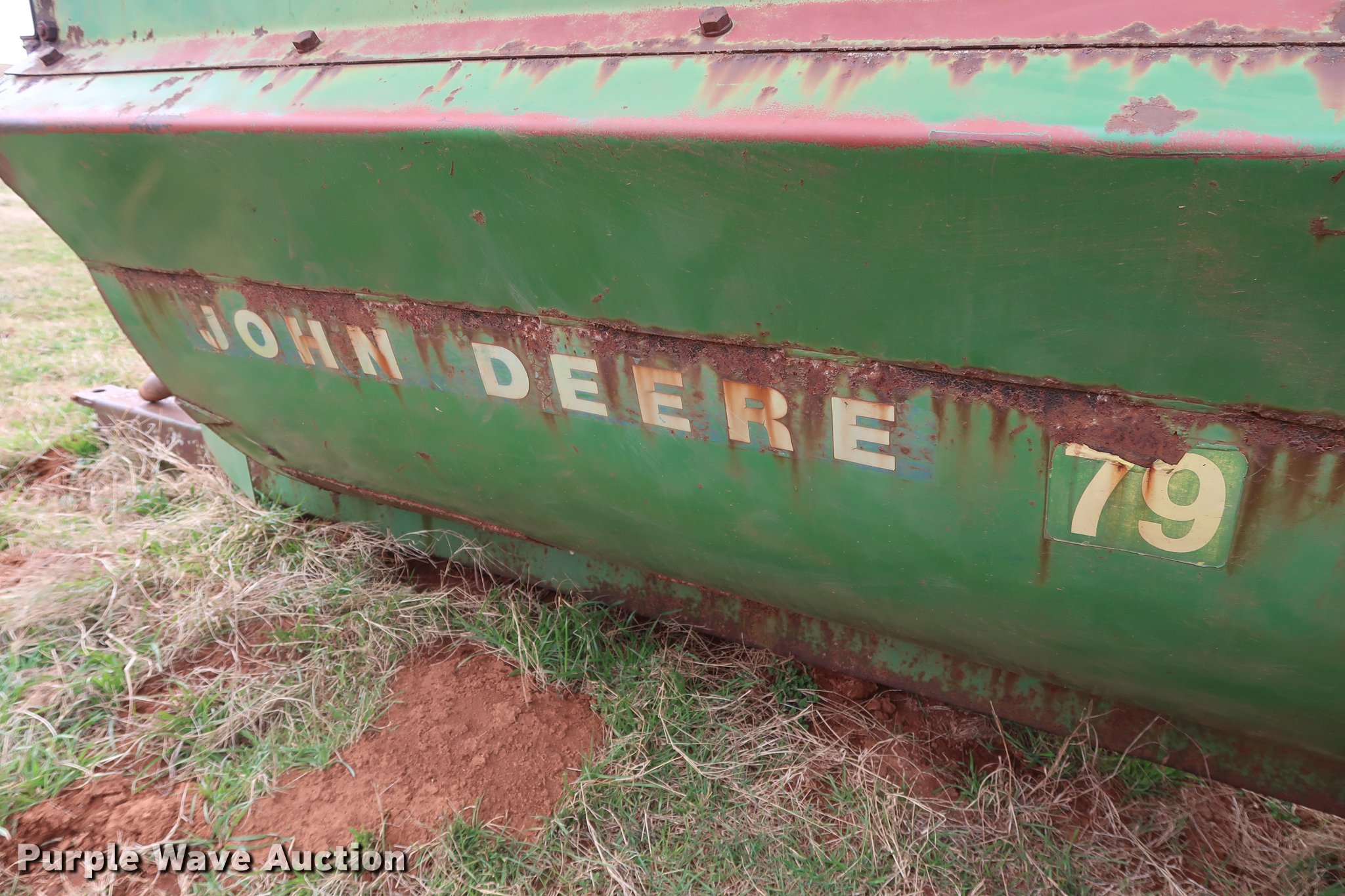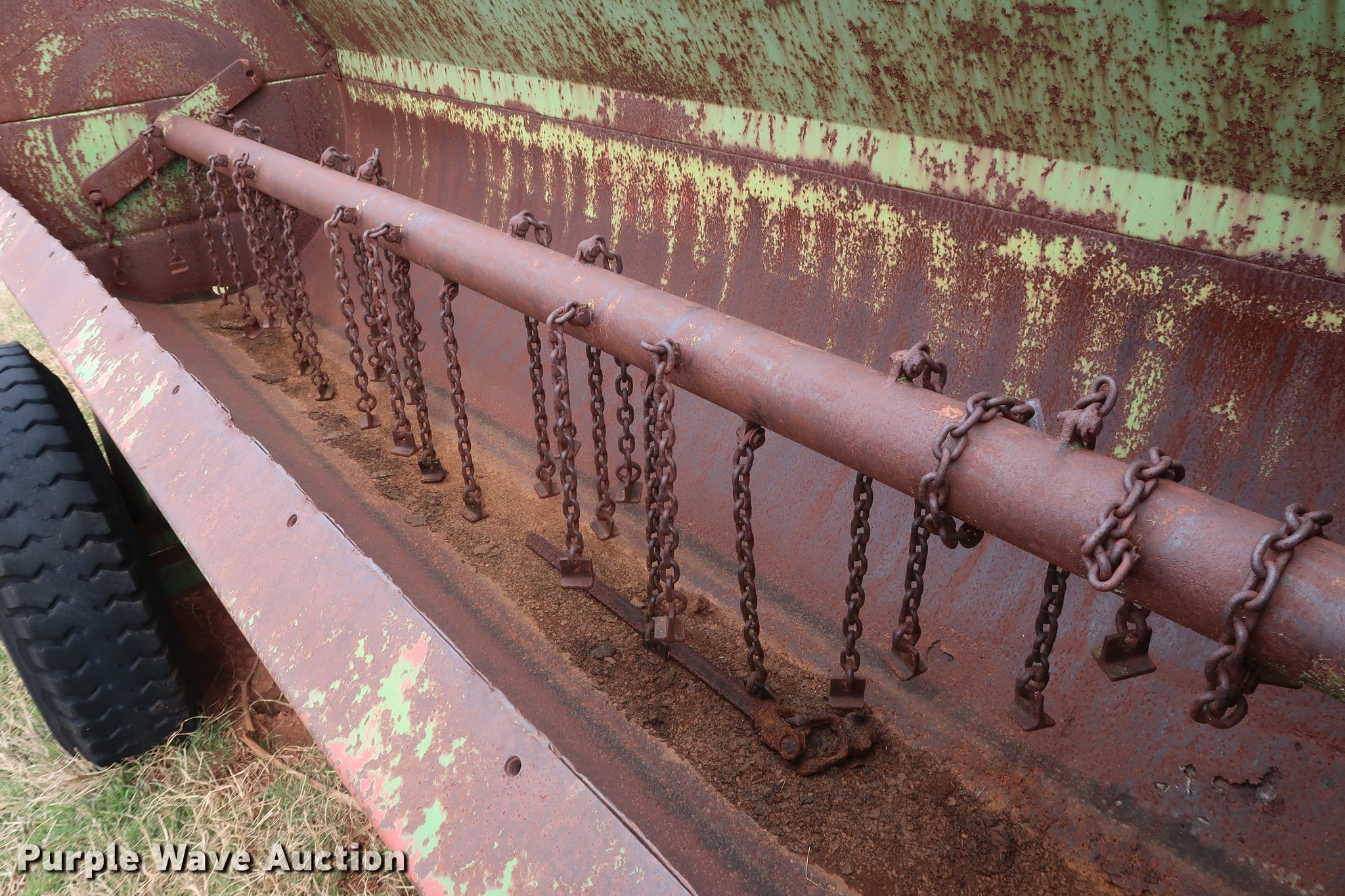 Purple Wave is selling a used Manure Spreader in Oklahoma. This item is a John Deere 79 manure spreader with the following: 12.5'L bin, 48" chain flail, 540 PTO, Pin hitch, 8.25-20 tires