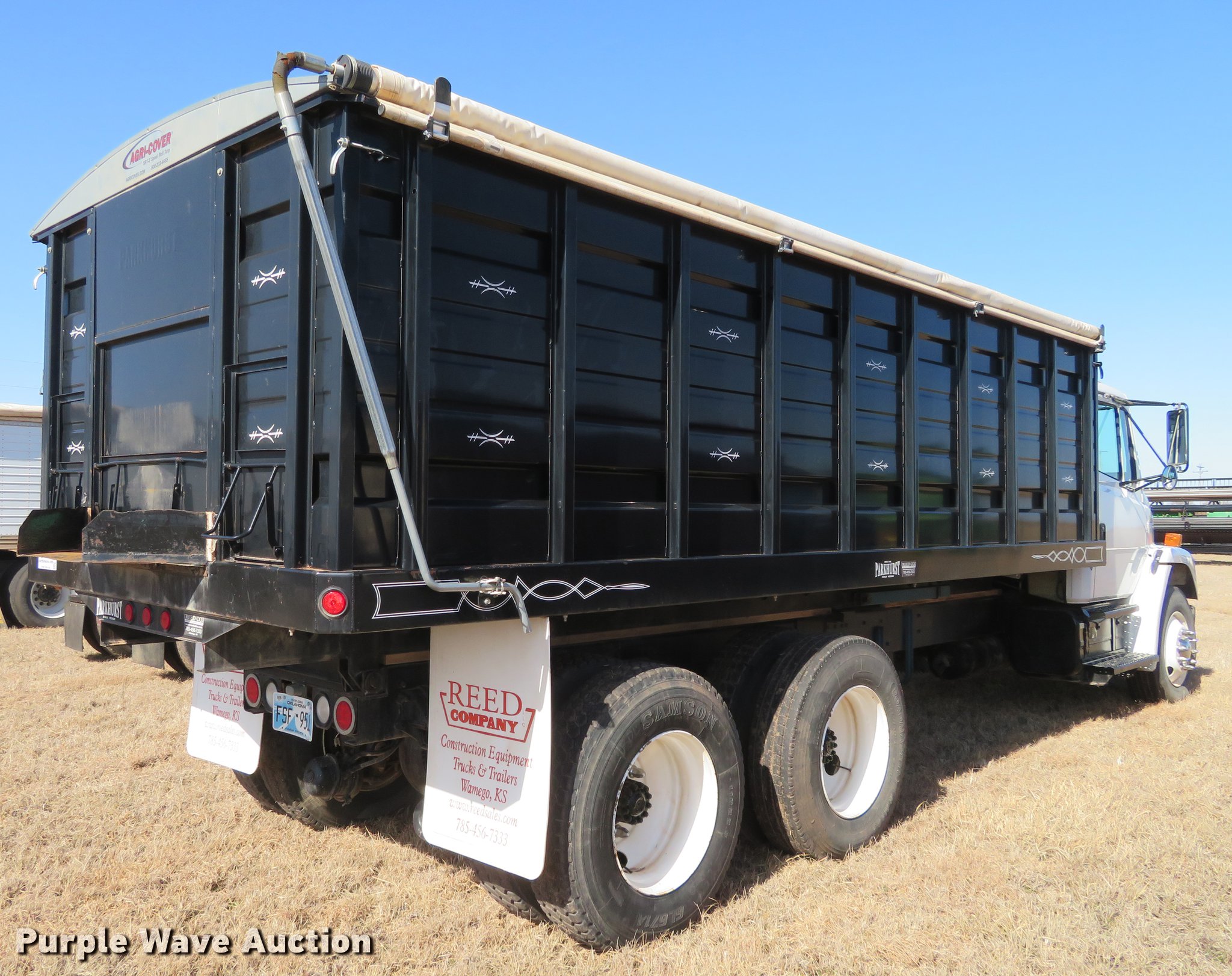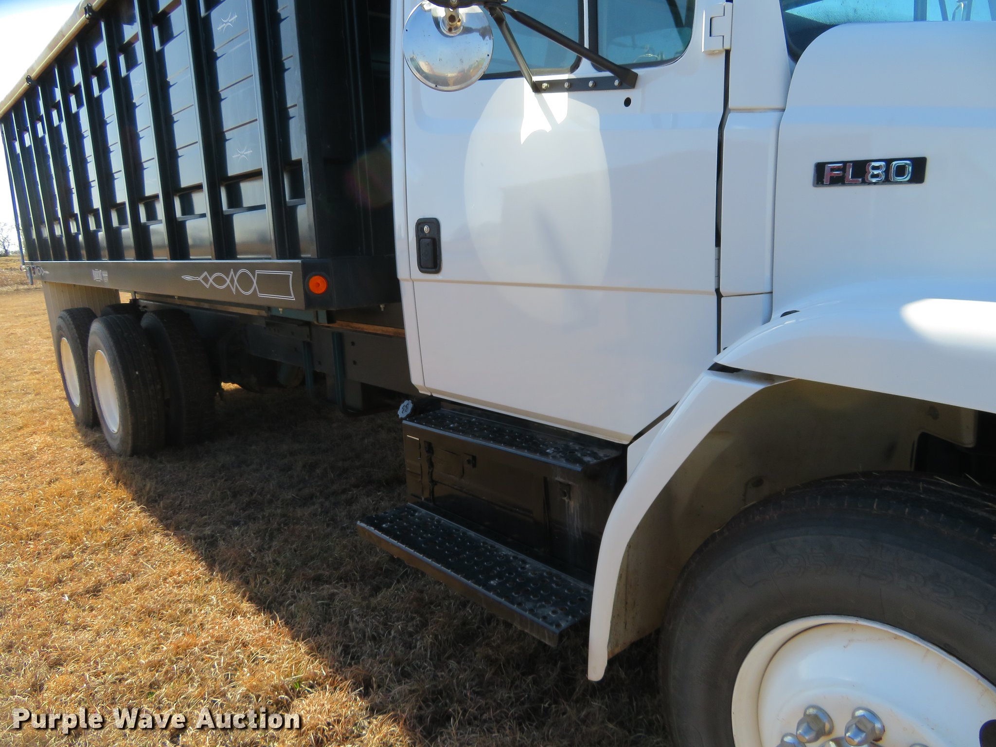 Purple Wave is selling a used Grain Truck in Oklahoma. This item is a 1995 Freightliner FL80 grain truck with the following: 24,611 miles on odometer, Cummins 8.3L L6 turbo diesel engine, Six speed manual transmission, Manual windows and locks, Park Hurst grain bed, 20'L x 96"W, 52" side height, Manual gate, Air brakes, Spring suspension, 295/75R22.5 front tires, 11R22.5 rear tires