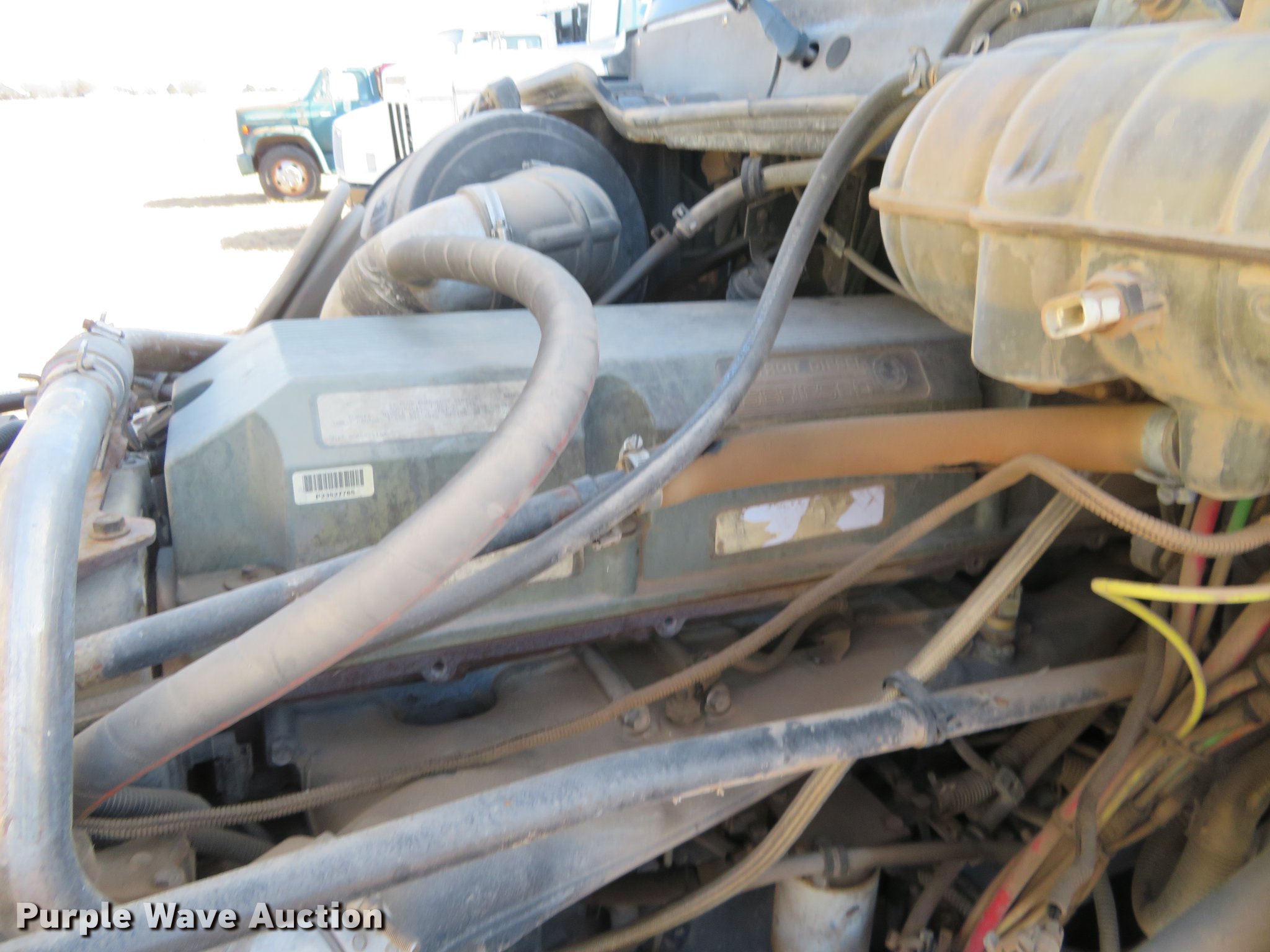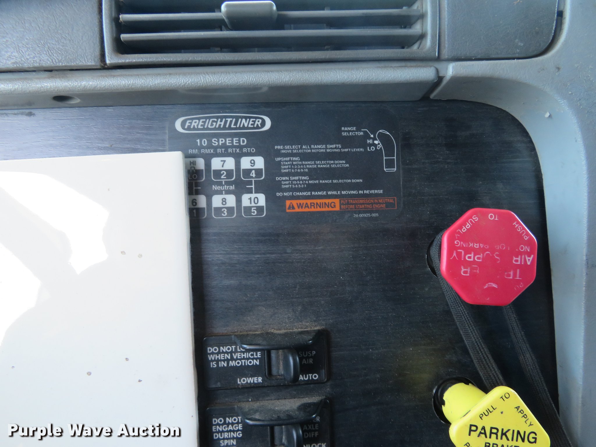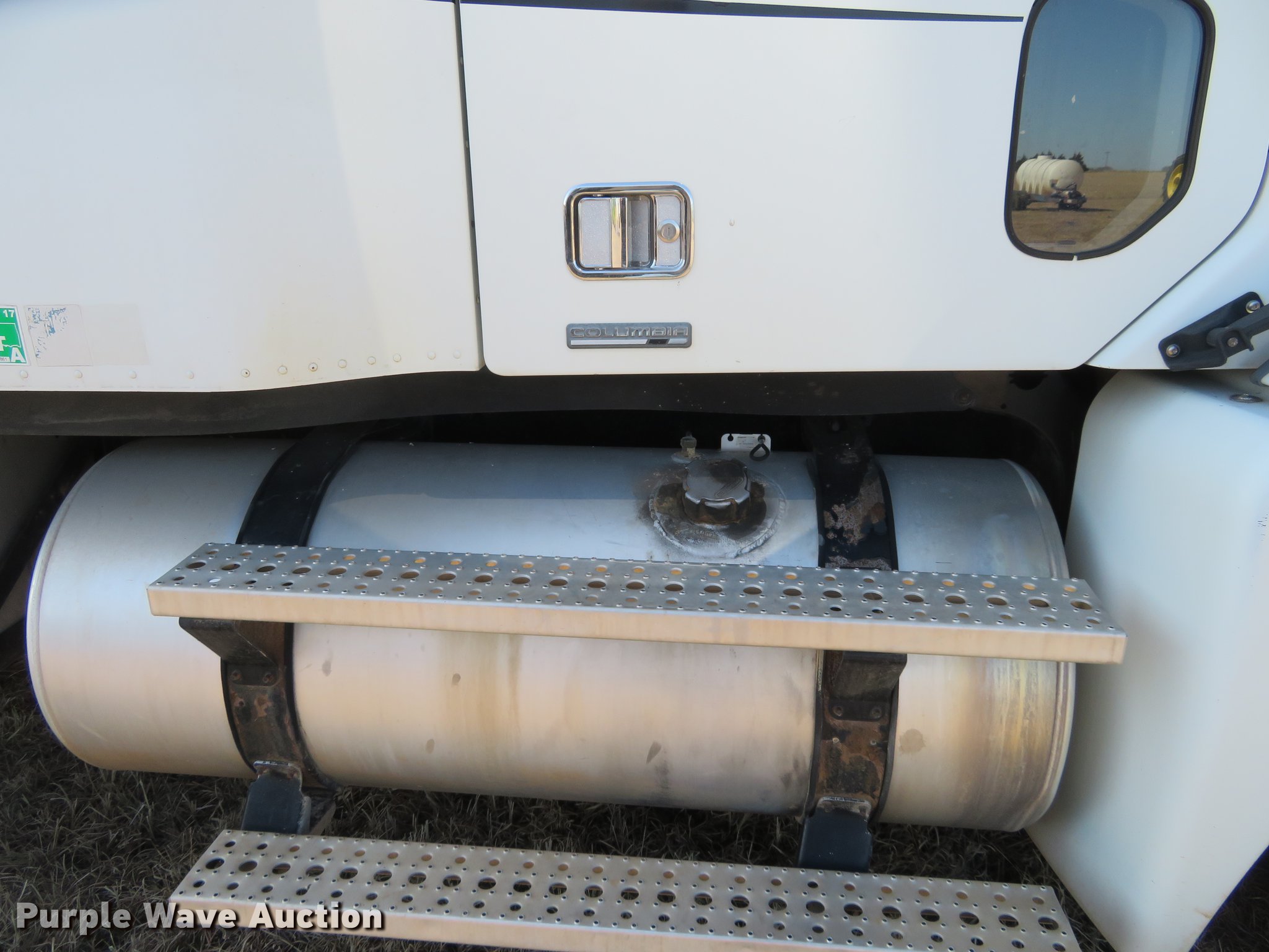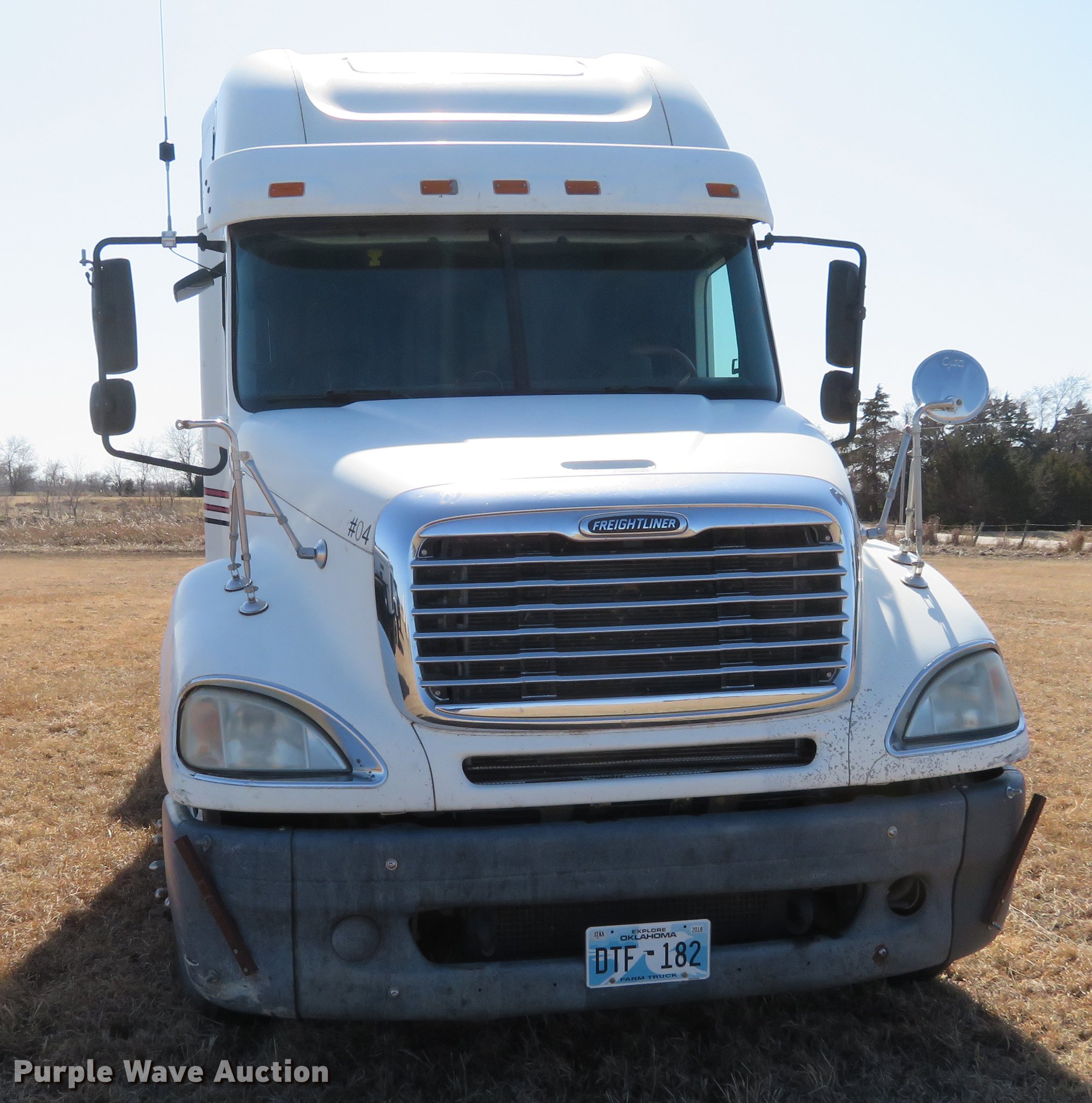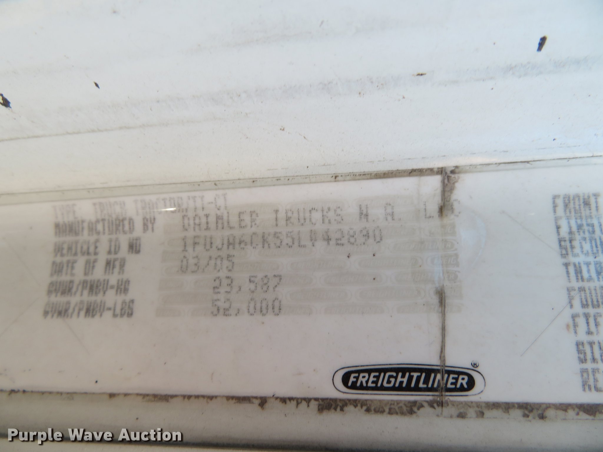 Purple Wave is selling a used Truck Tractor in Oklahoma. This item is a 2005 Freightliner Columbia semi truck with the following: 920,955 miles on odometer, 31,571 hours on meter, Detroit Diesel Series 60 14.0L L6 turbo diesel engine, 10 speed manual transmission, Tandem axle, Inter-axle differential lock, AC and heat, Tilt, Cruise, AM/FM, Power windows, Air suspensions eat, Sleeper, Double bunk beds, Exterior visor, Single rear exhaust stack, Air operated sliding fifth wheel plate, Air suspension, Air brakes, 295/75R22.5 front tires, 275/80R22.5 rear tires