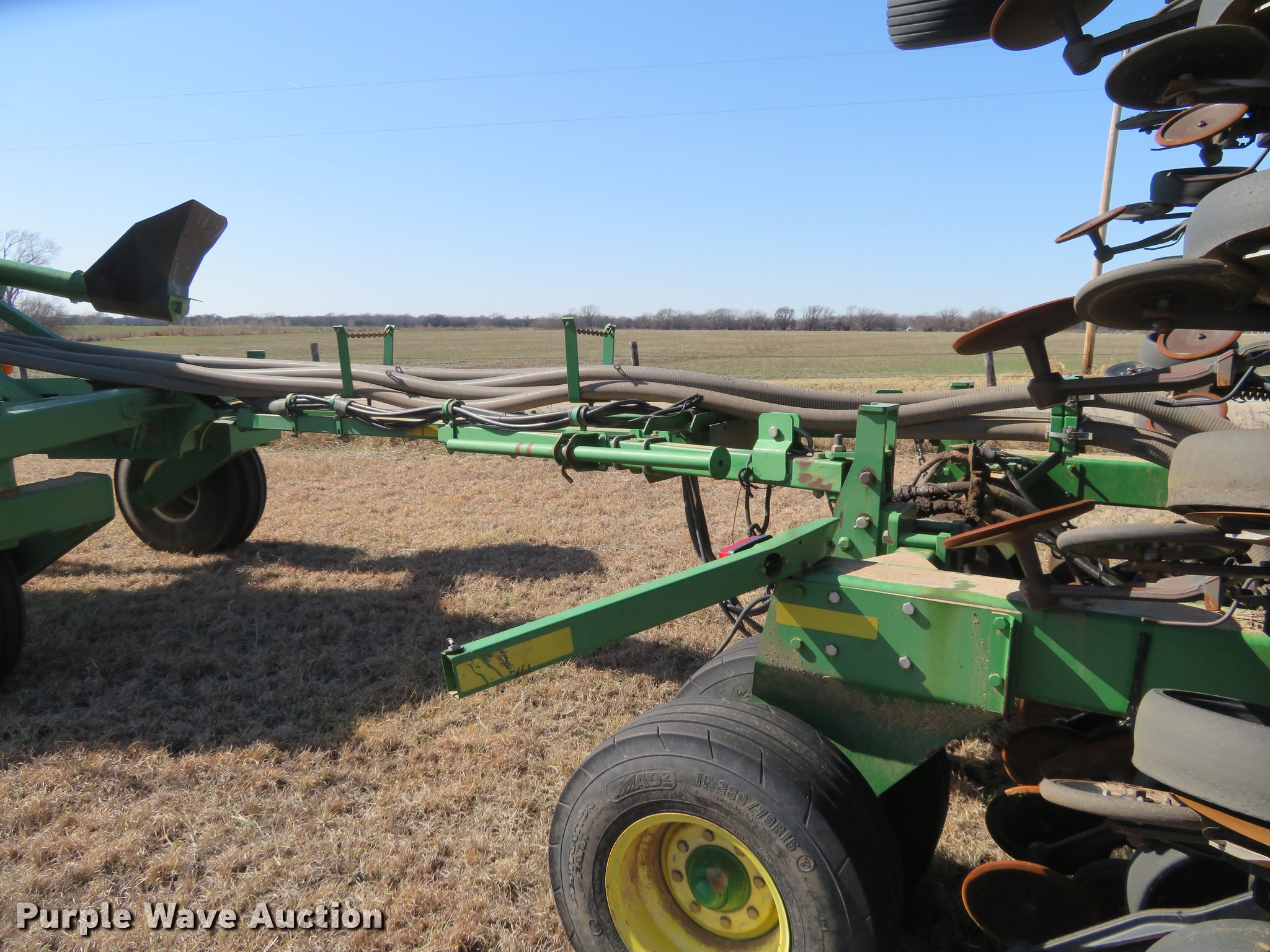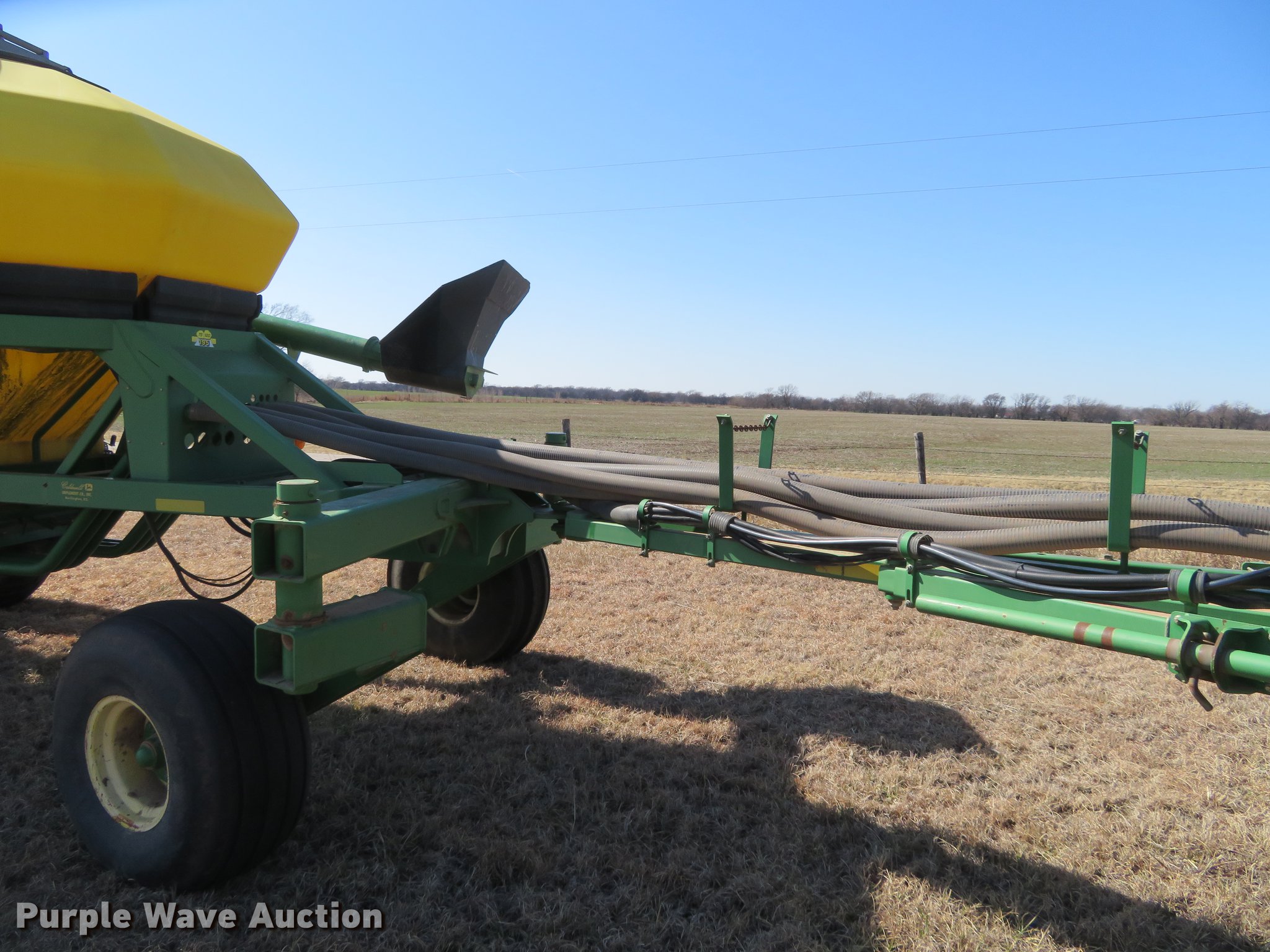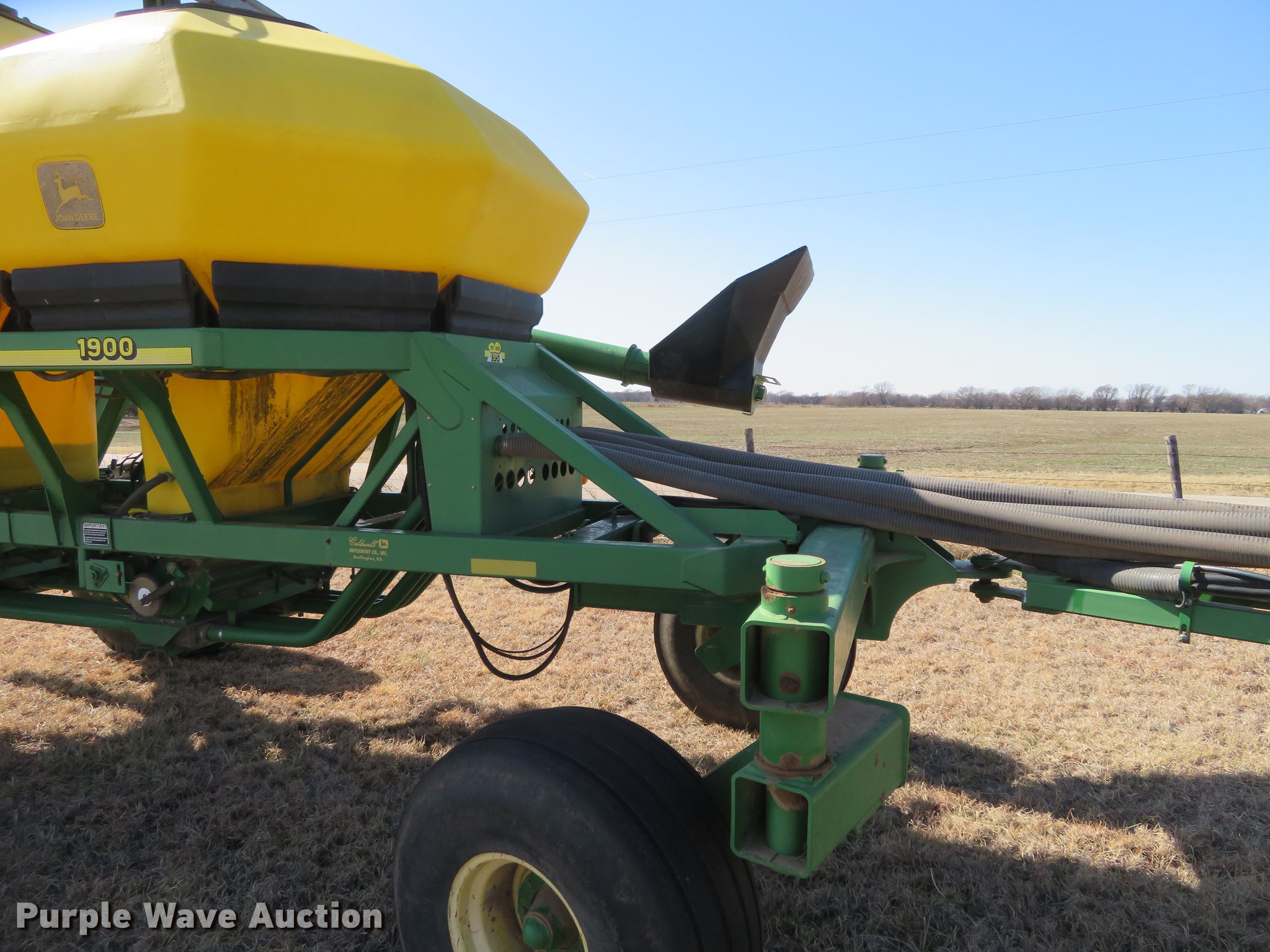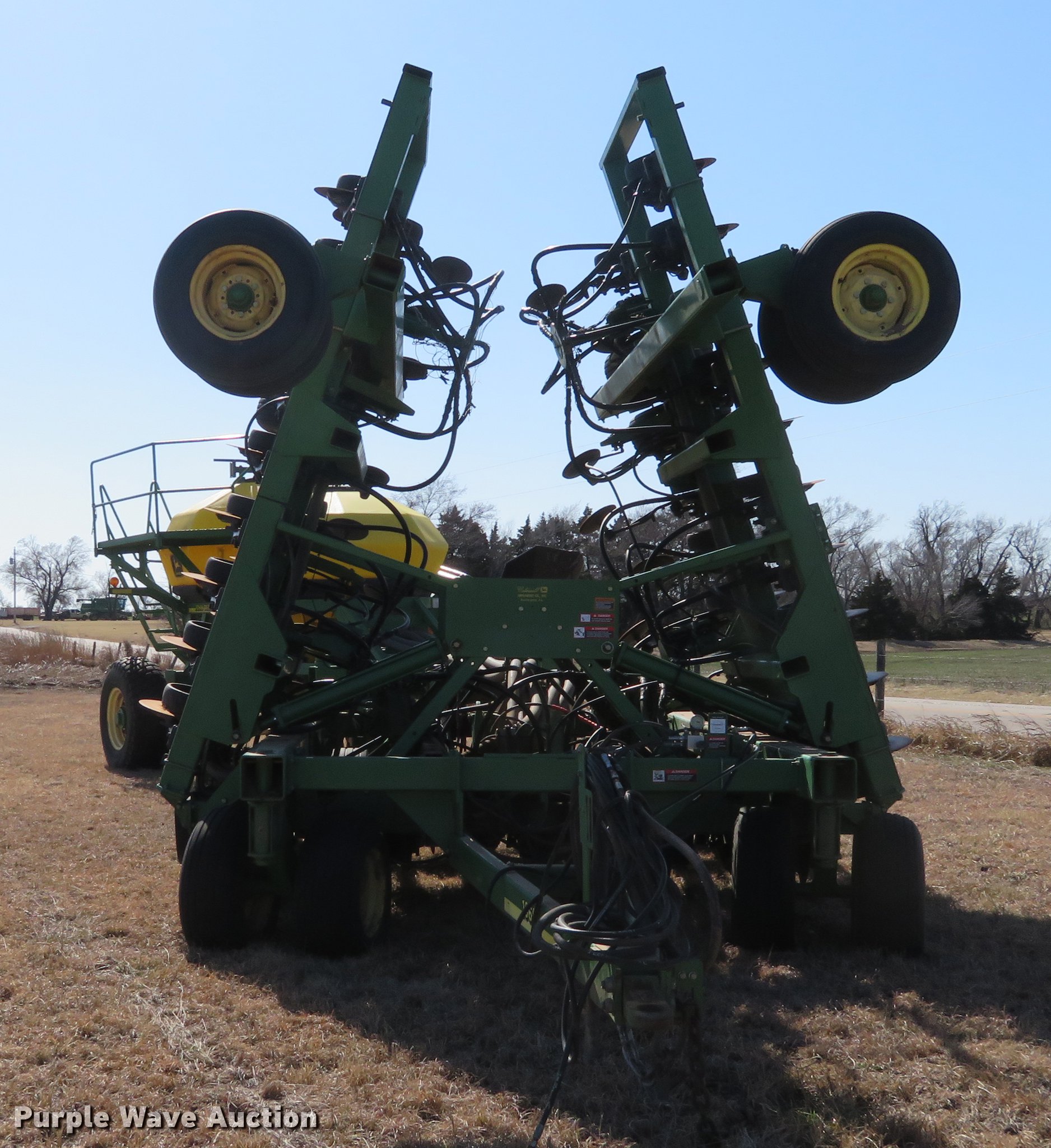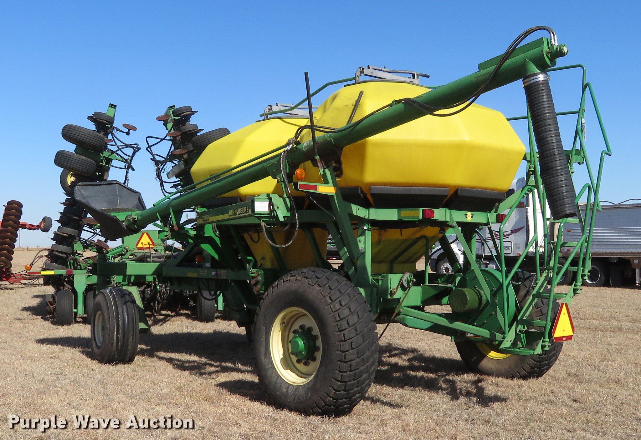 Purple Wave is selling a used Air Seeder in Oklahoma. This item is a John Deere 1860 no-till air seeder with the following: 58 row units, 7.5" row spacing, Hydraulic wing fold, Bulk fill system, 270 bushel capacity, Air delivery, John Deere 1900 air commodity cart, 16.5-16 front tires, 28L-26 rear tire, Serial A01900H695257, Hydraulic meter drive, Precision seed meters, HD spring down pressure, Seed firmers, Single disk openers, Pin hitch, Single gauge wheels, 11L-15 tires, Serial A01860X695291