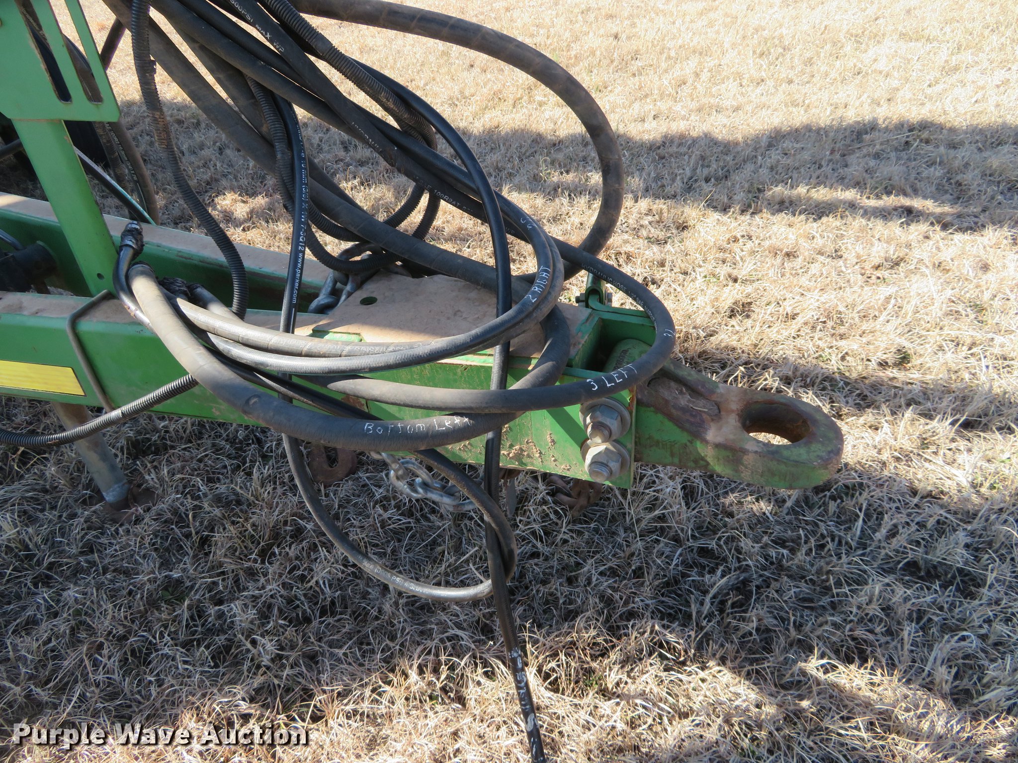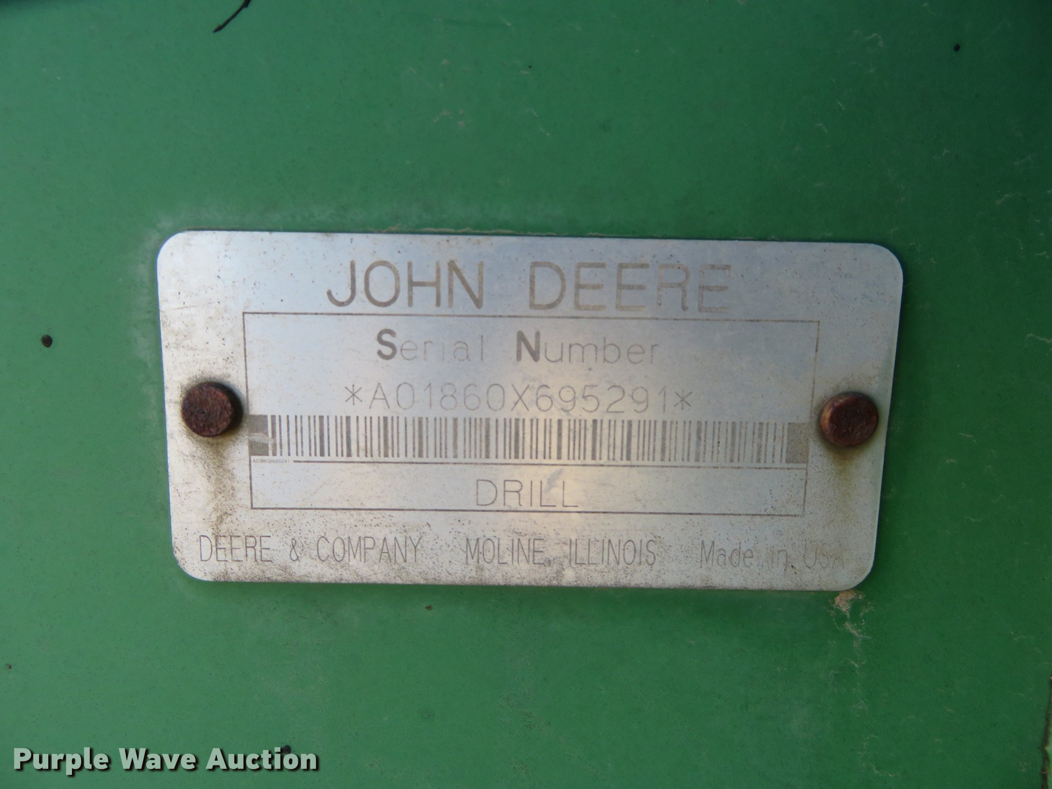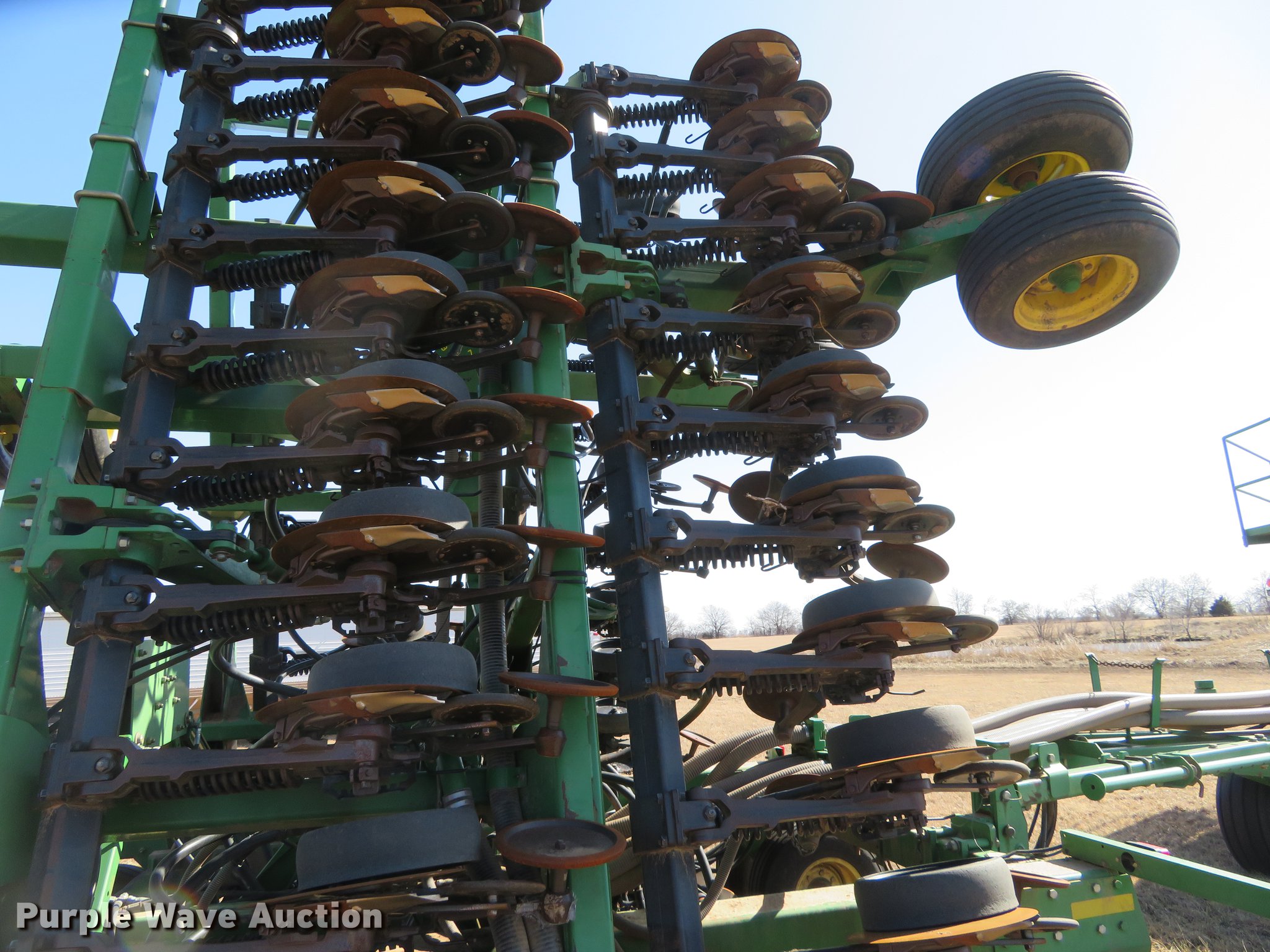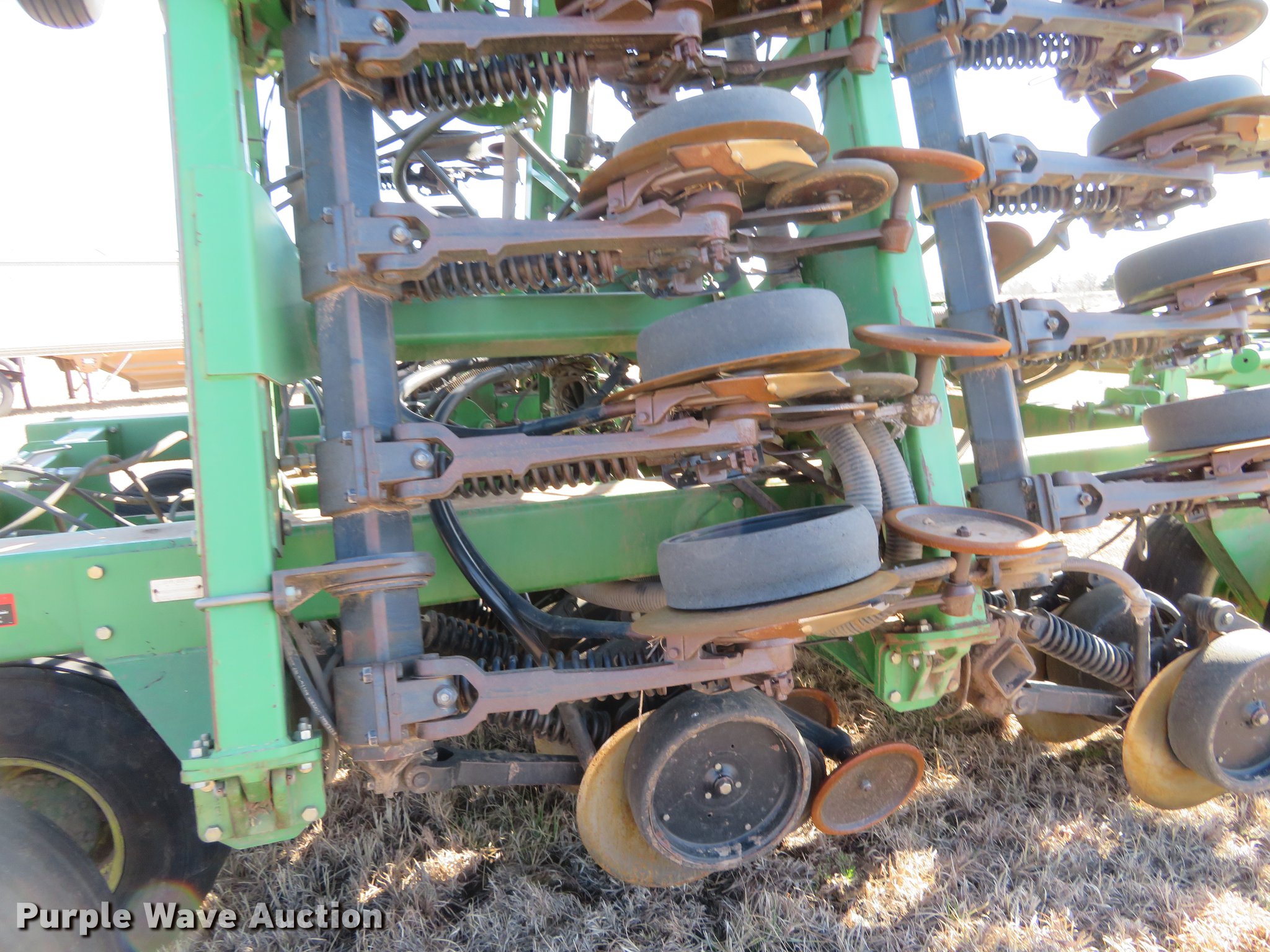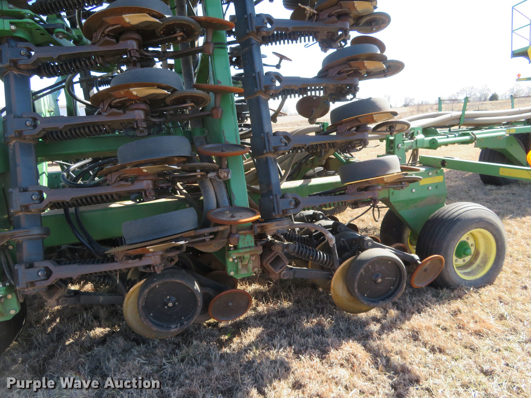 Purple Wave is selling a used Air Seeder in Oklahoma. This item is a John Deere 1860 no-till air seeder with the following: 58 row units, 7.5" row spacing, Hydraulic wing fold, Bulk fill system, 270 bushel capacity, Air delivery, John Deere 1900 air commodity cart, 16.5-16 front tires, 28L-26 rear tire, Serial A01900H695257, Hydraulic meter drive, Precision seed meters, HD spring down pressure, Seed firmers, Single disk openers, Pin hitch, Single gauge wheels, 11L-15 tires, Serial A01860X695291