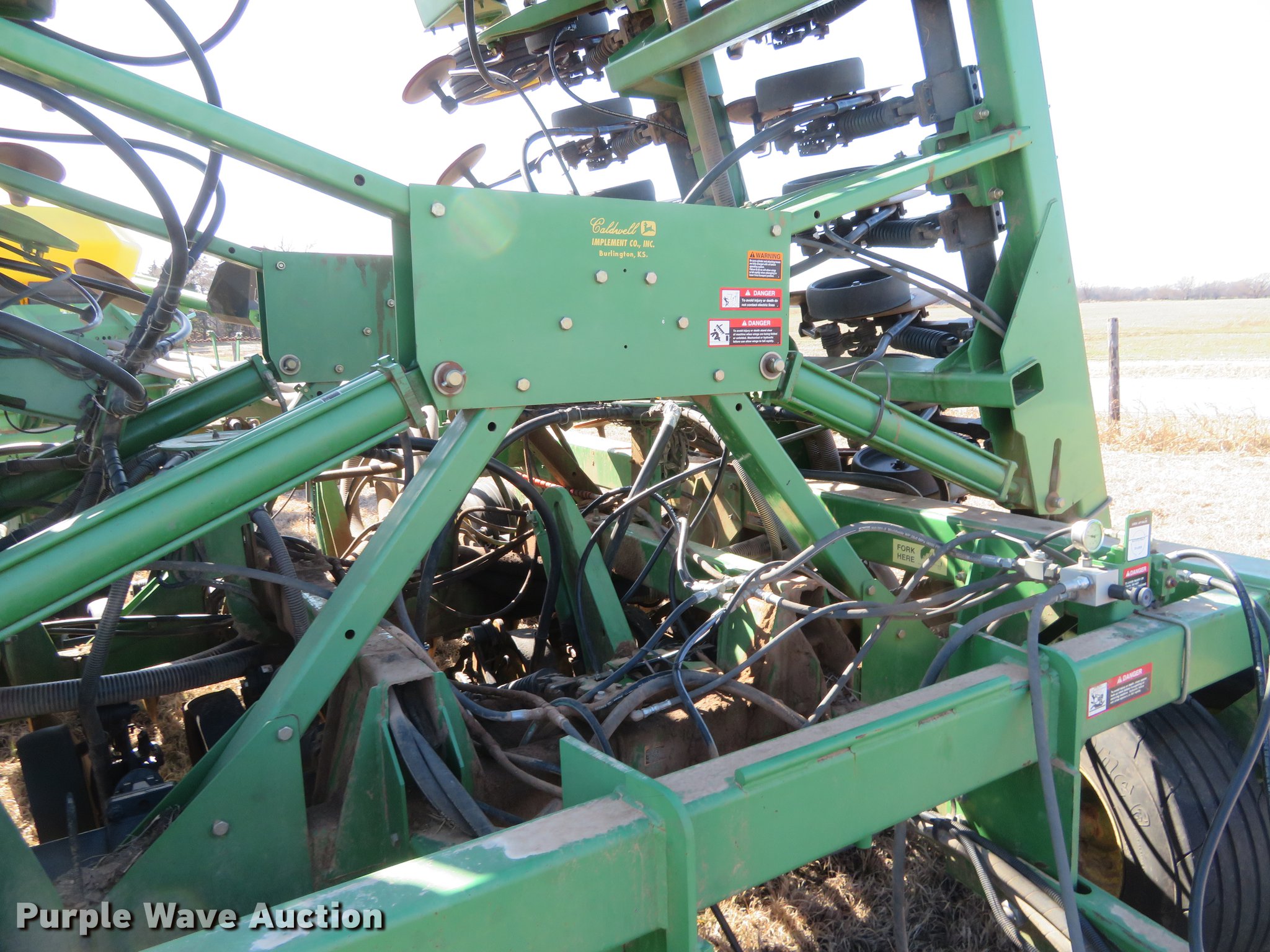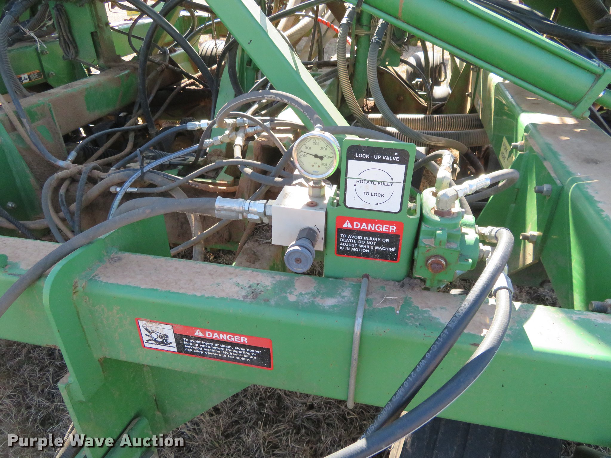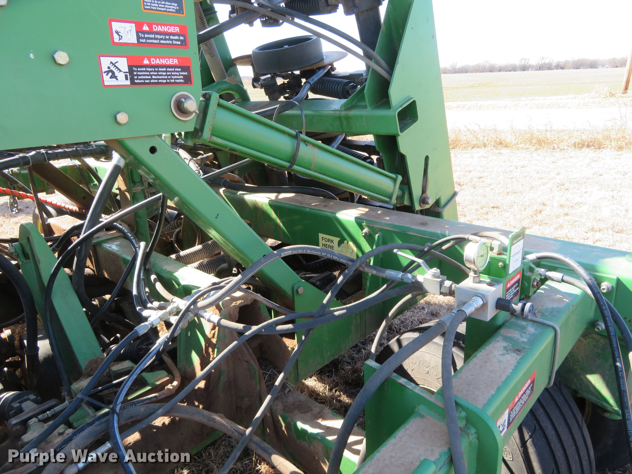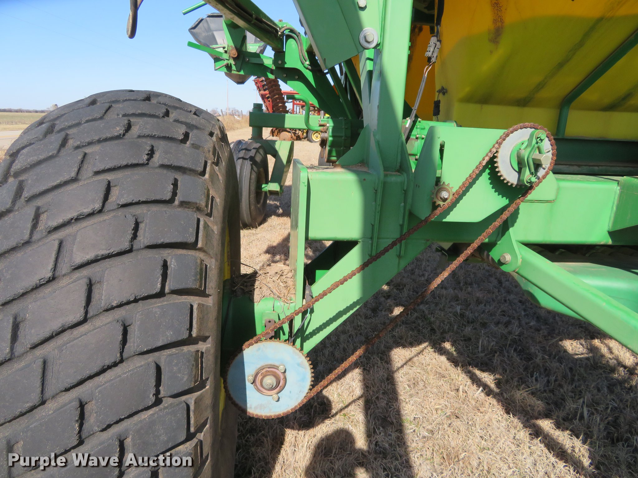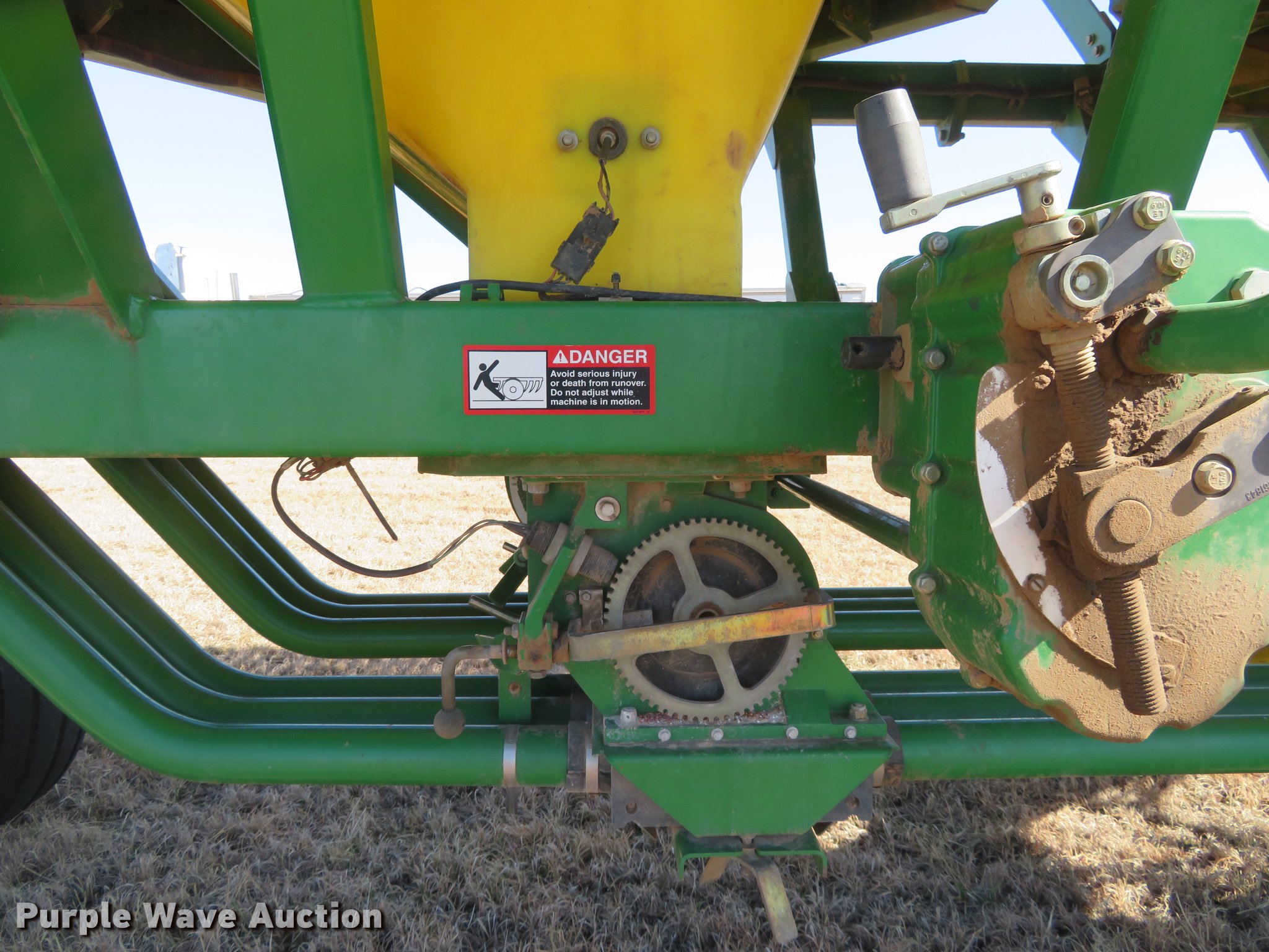 Purple Wave is selling a used Air Seeder in Oklahoma. This item is a John Deere 1860 no-till air seeder with the following: 58 row units, 7.5" row spacing, Hydraulic wing fold, Bulk fill system, 270 bushel capacity, Air delivery, John Deere 1900 air commodity cart, 16.5-16 front tires, 28L-26 rear tire, Serial A01900H695257, Hydraulic meter drive, Precision seed meters, HD spring down pressure, Seed firmers, Single disk openers, Pin hitch, Single gauge wheels, 11L-15 tires, Serial A01860X695291