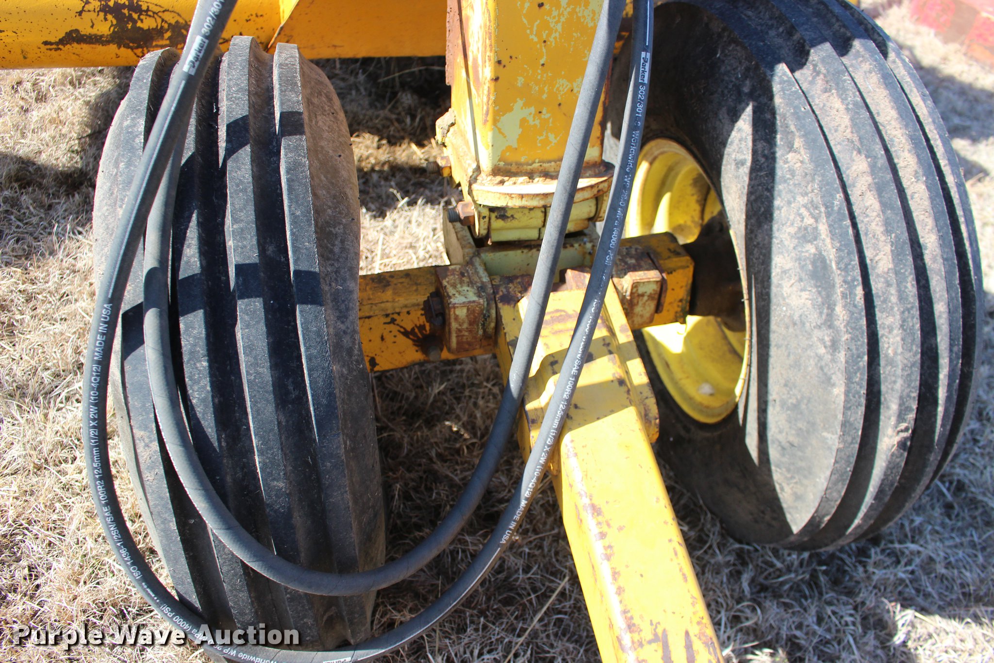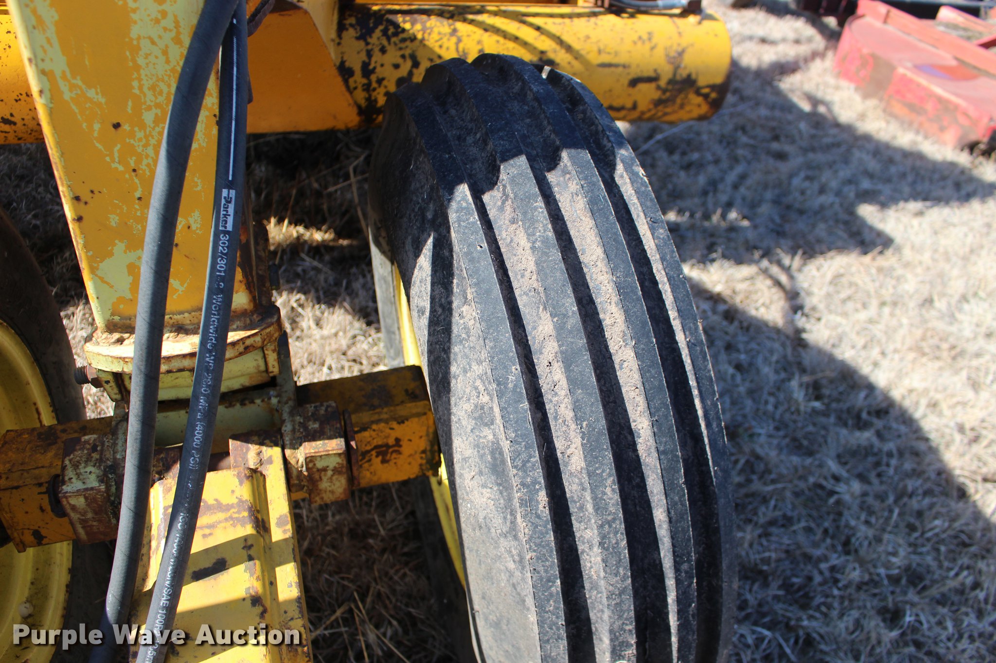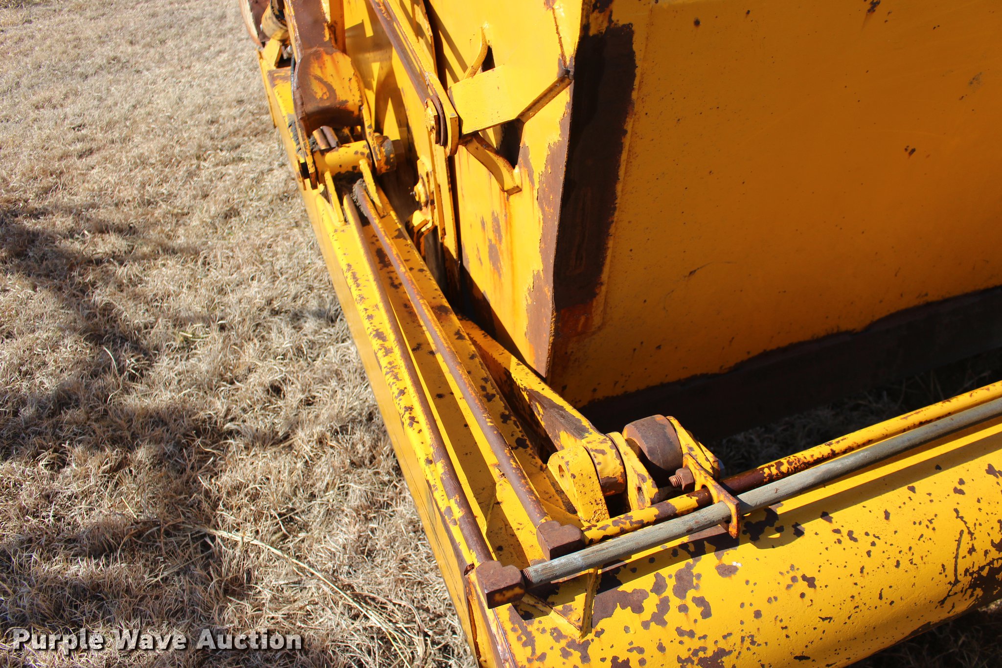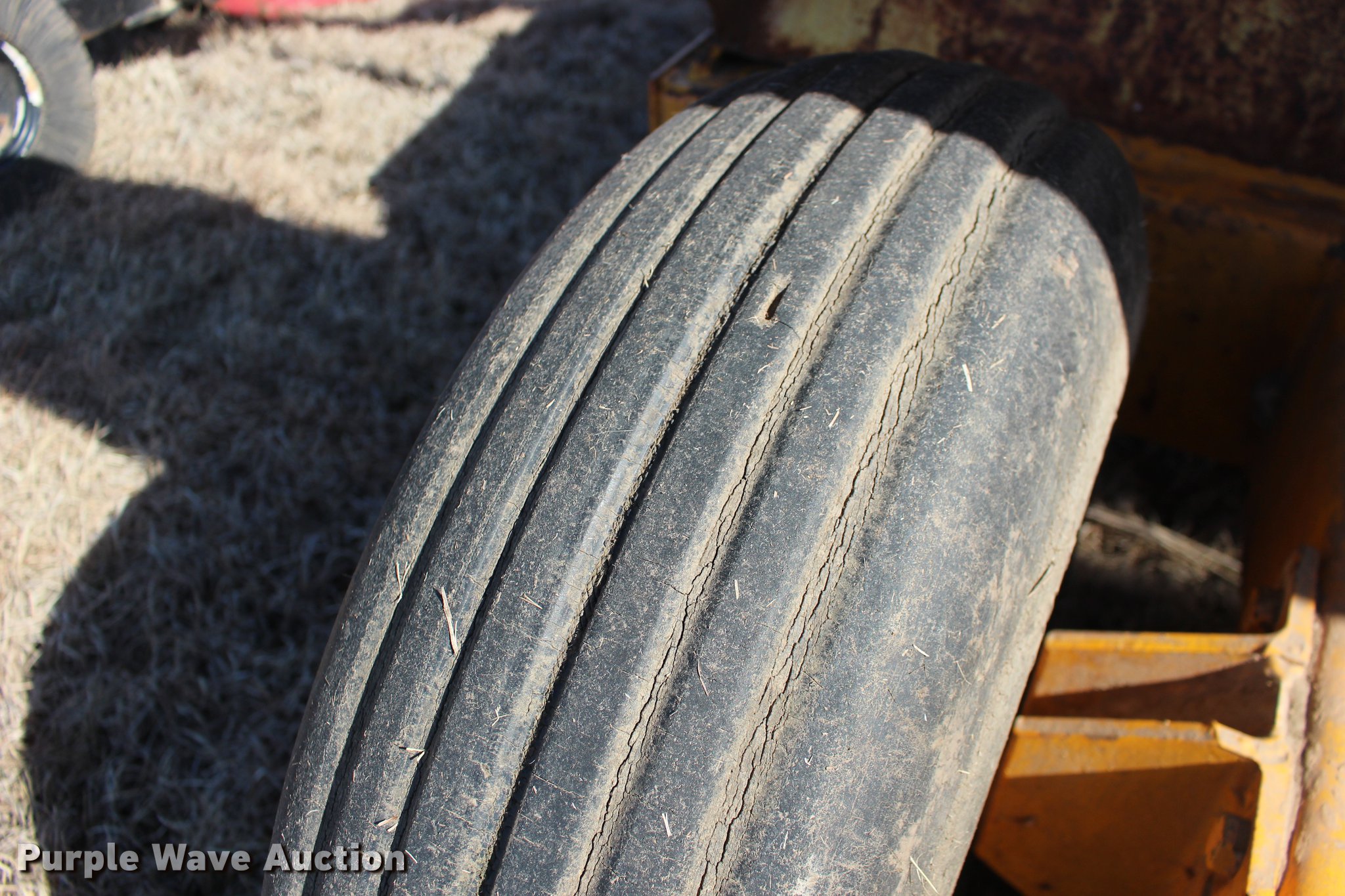 Purple Wave is selling a used Pull Type Scraper in Oklahoma. This item is a Scraper with the following: 84"L x 76"W bowl, Hydraulic bowl, Hydraulic lift, Pin hitch, 10.00-16 tires