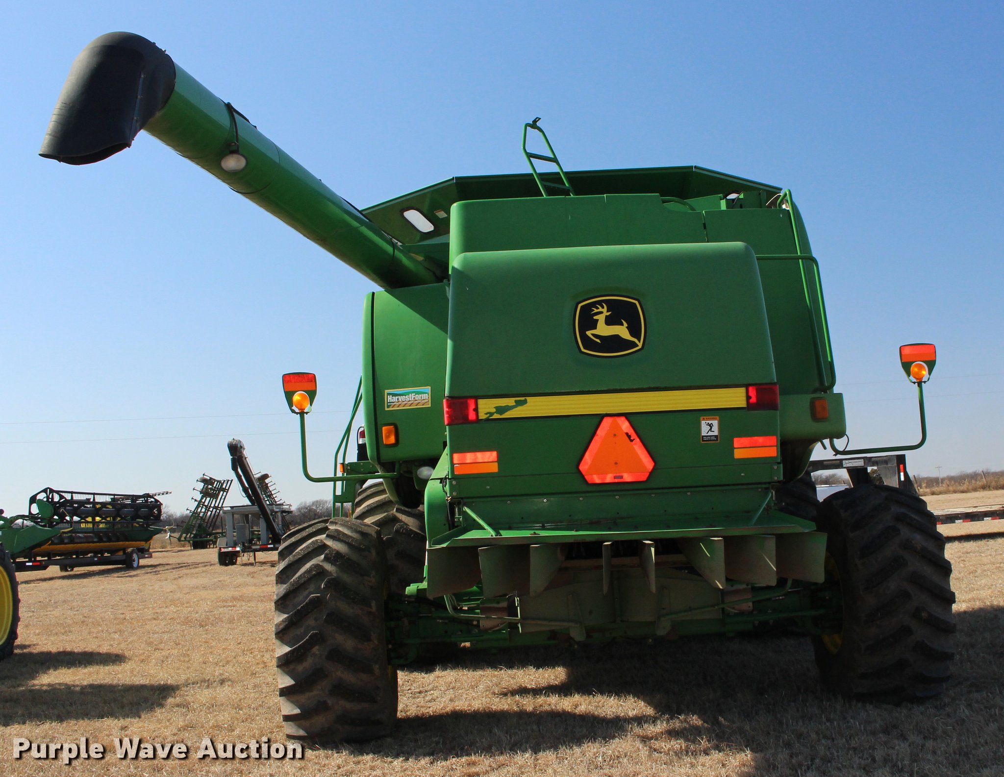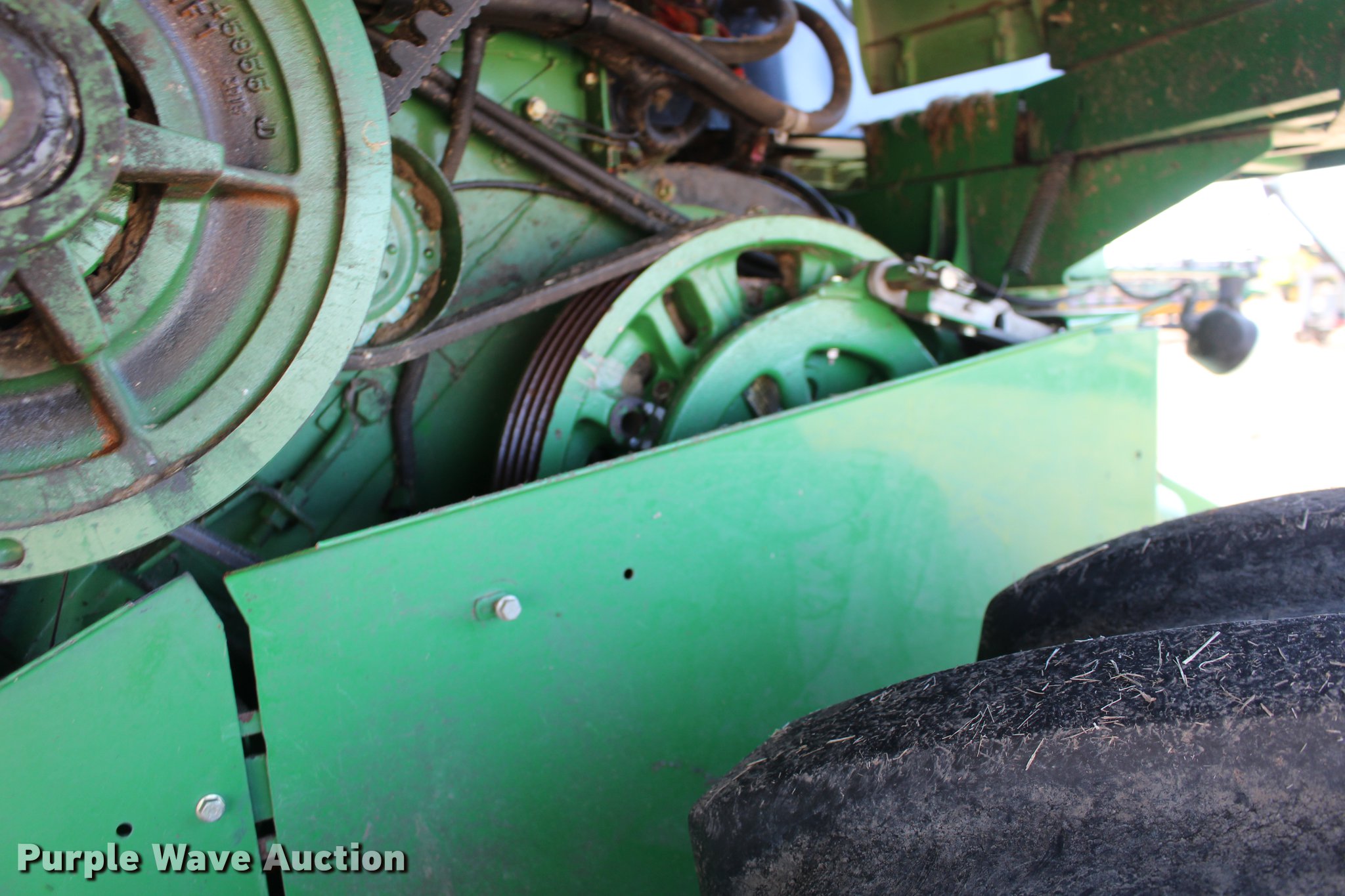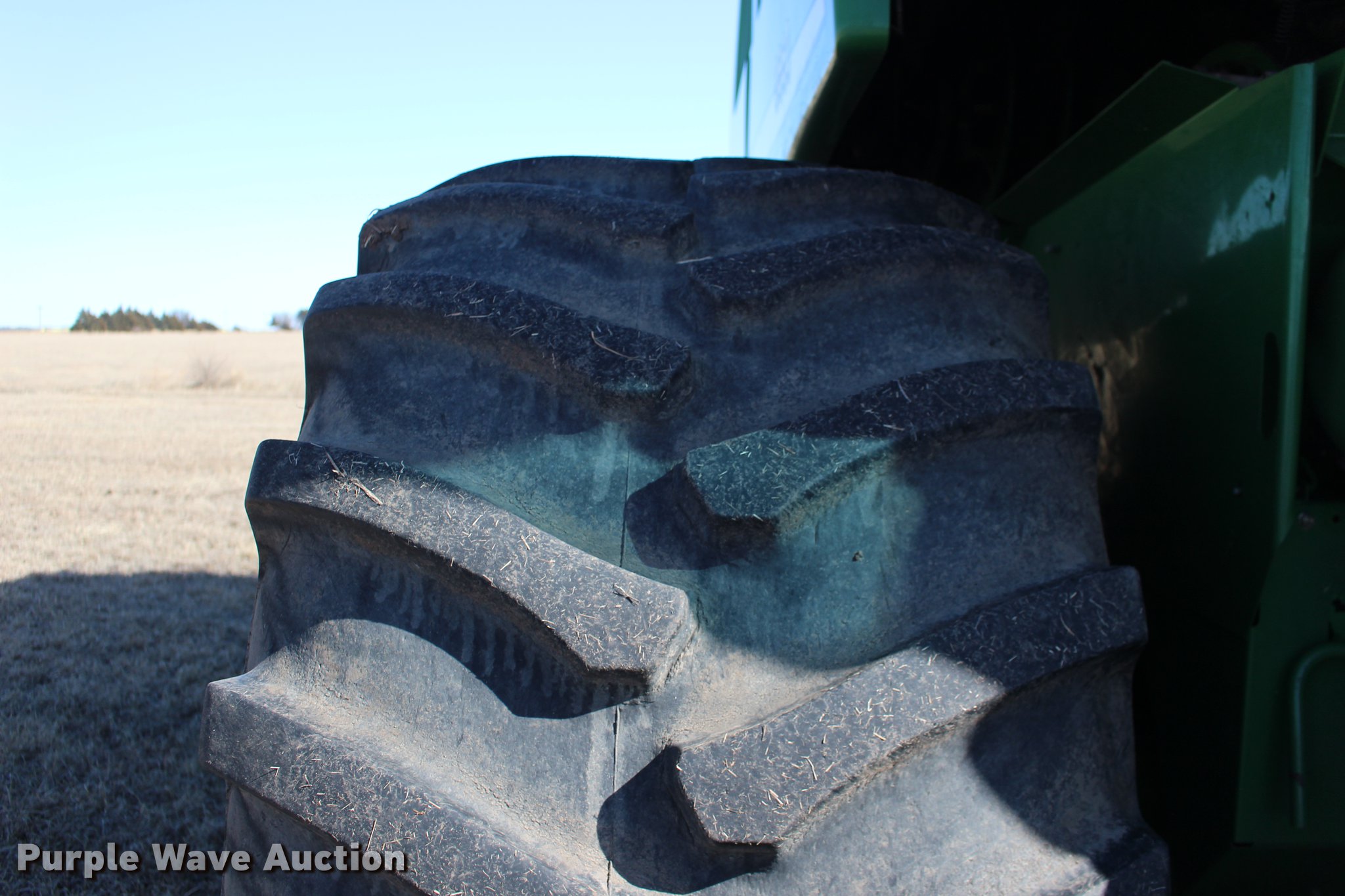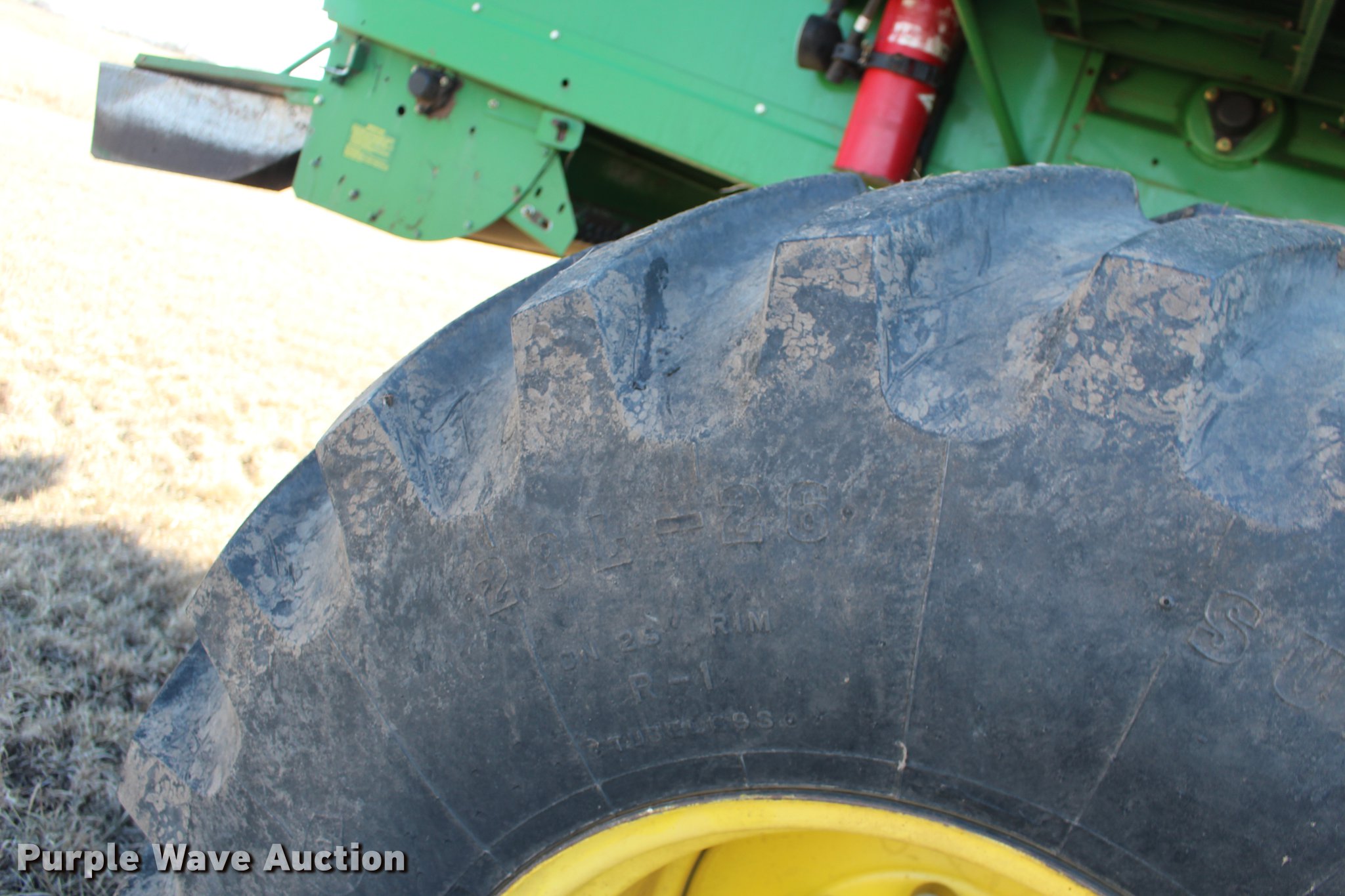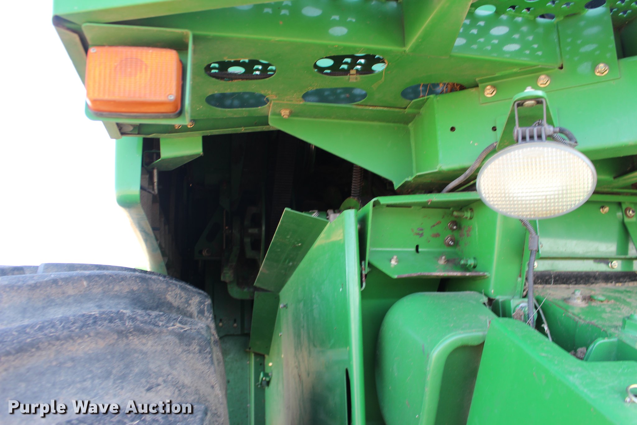 Purple Wave is selling a used Combine in Oklahoma. This item is a 2004 John Deere 9660 combine with the following: 3,703 engine hours on meter, 2,469 separator hours on meter, Six cylinder turbo diesel engine, Hydrostatic transmission, 3F-3R gears, AC and heat, Tilt steering wheel, AM/FM, Air suspension seat, Instructor's seat, Single point header coupler, Chaff spreader, Crary Big Top bin extensions, Work lights, GreenStar ready, 900/60R32 front tires, 28L-26 rear tires, Serial H09960W705335