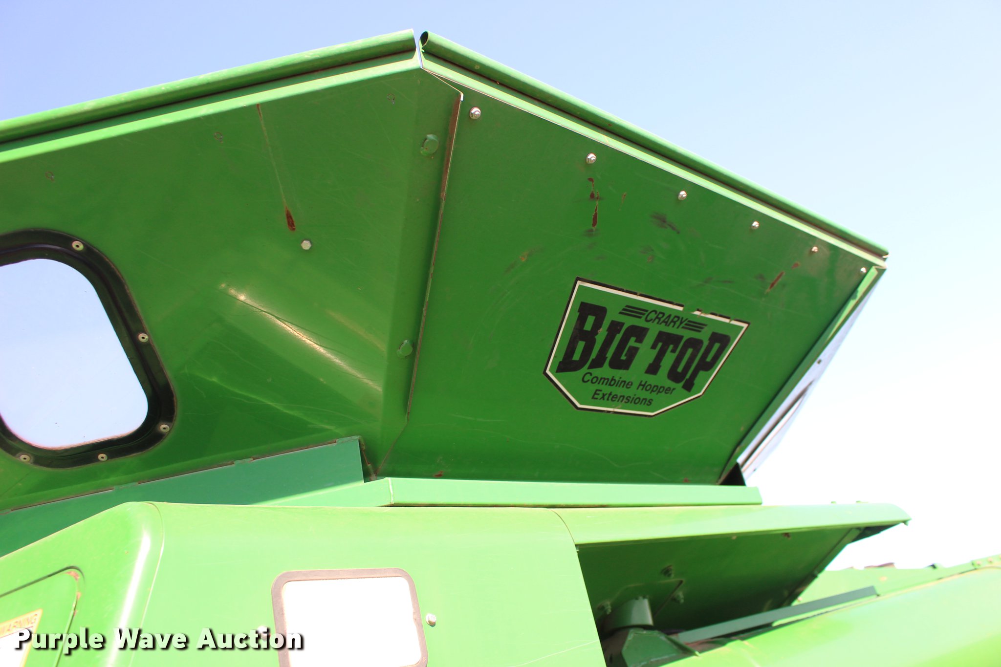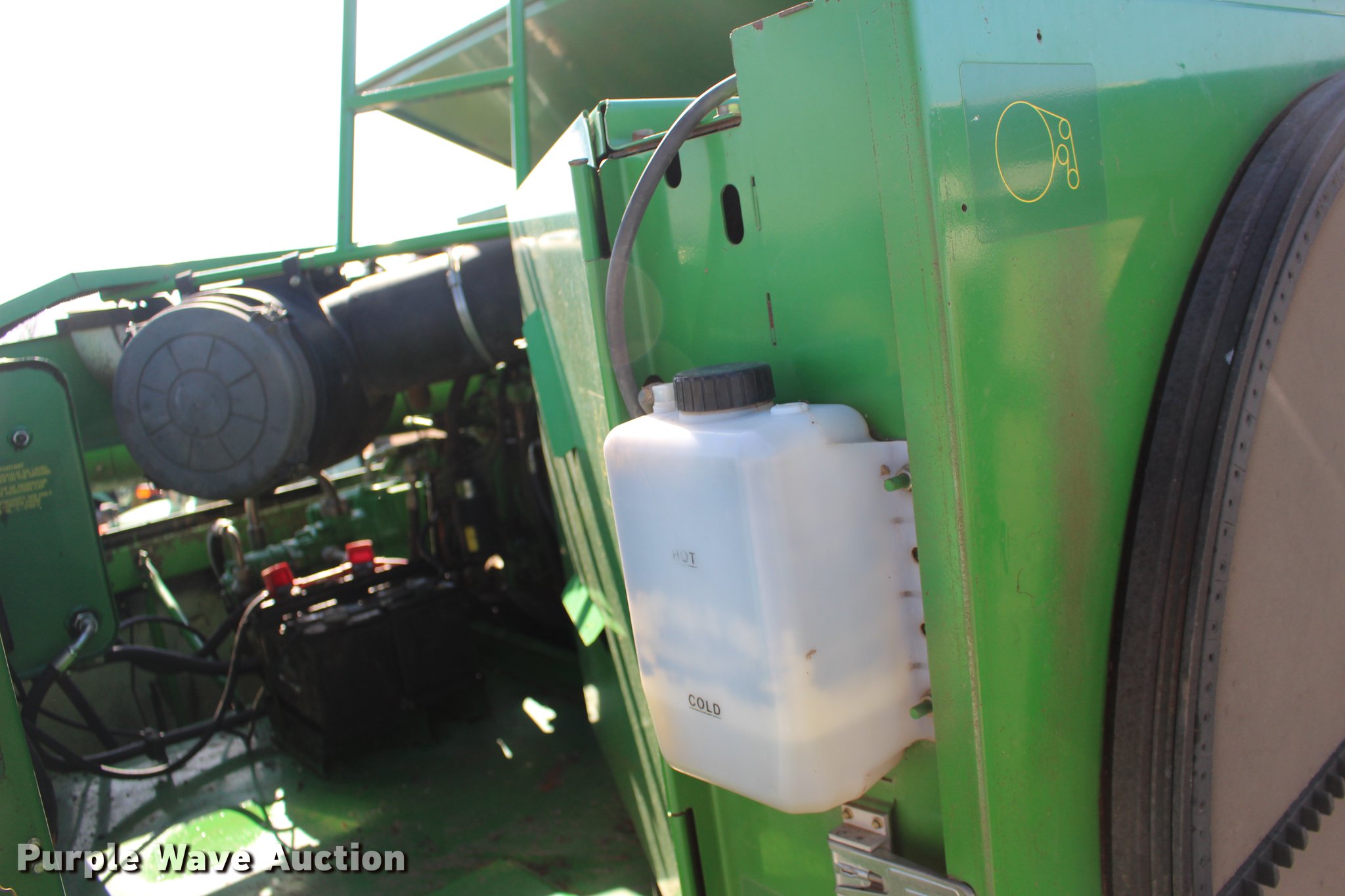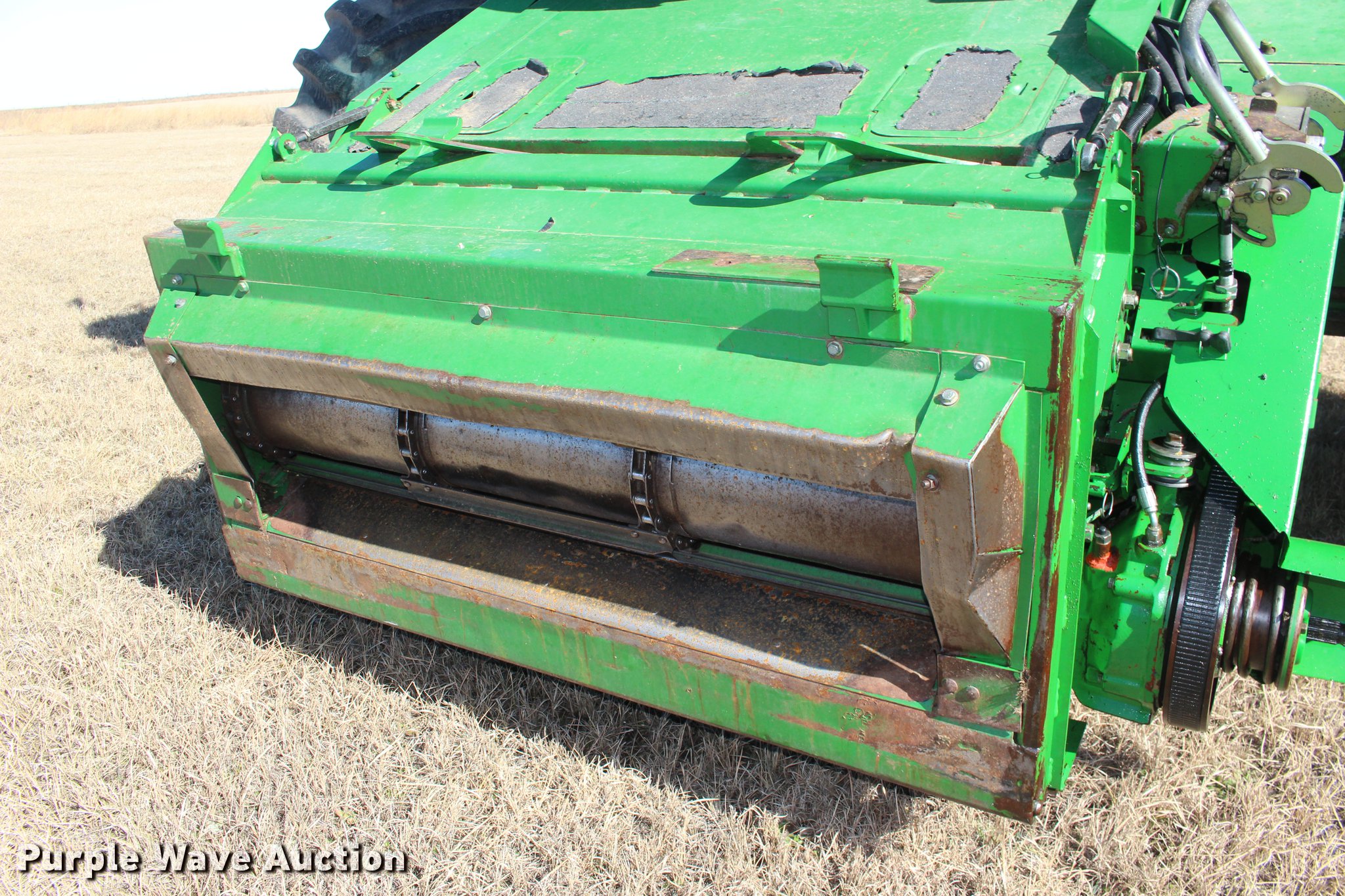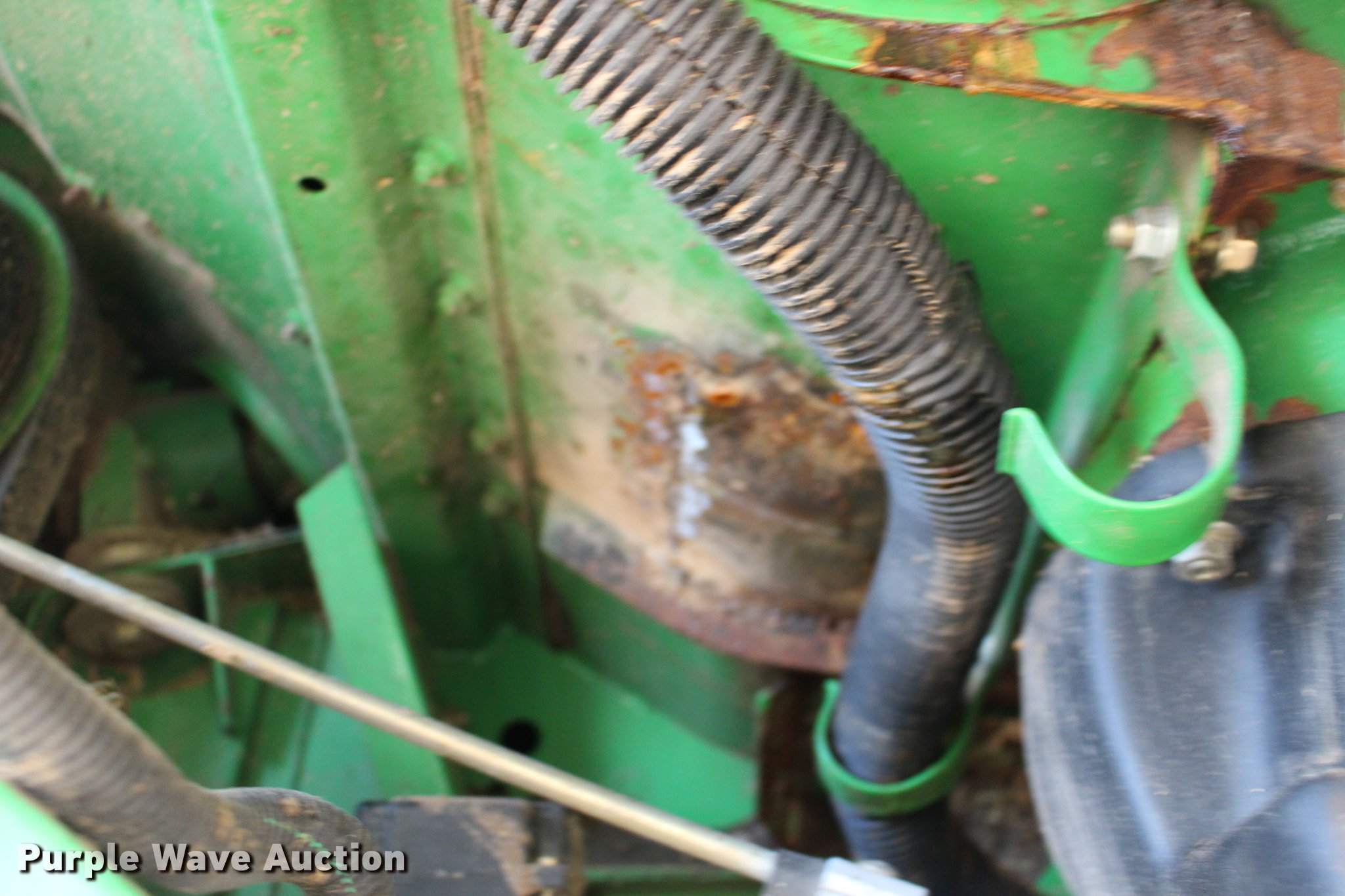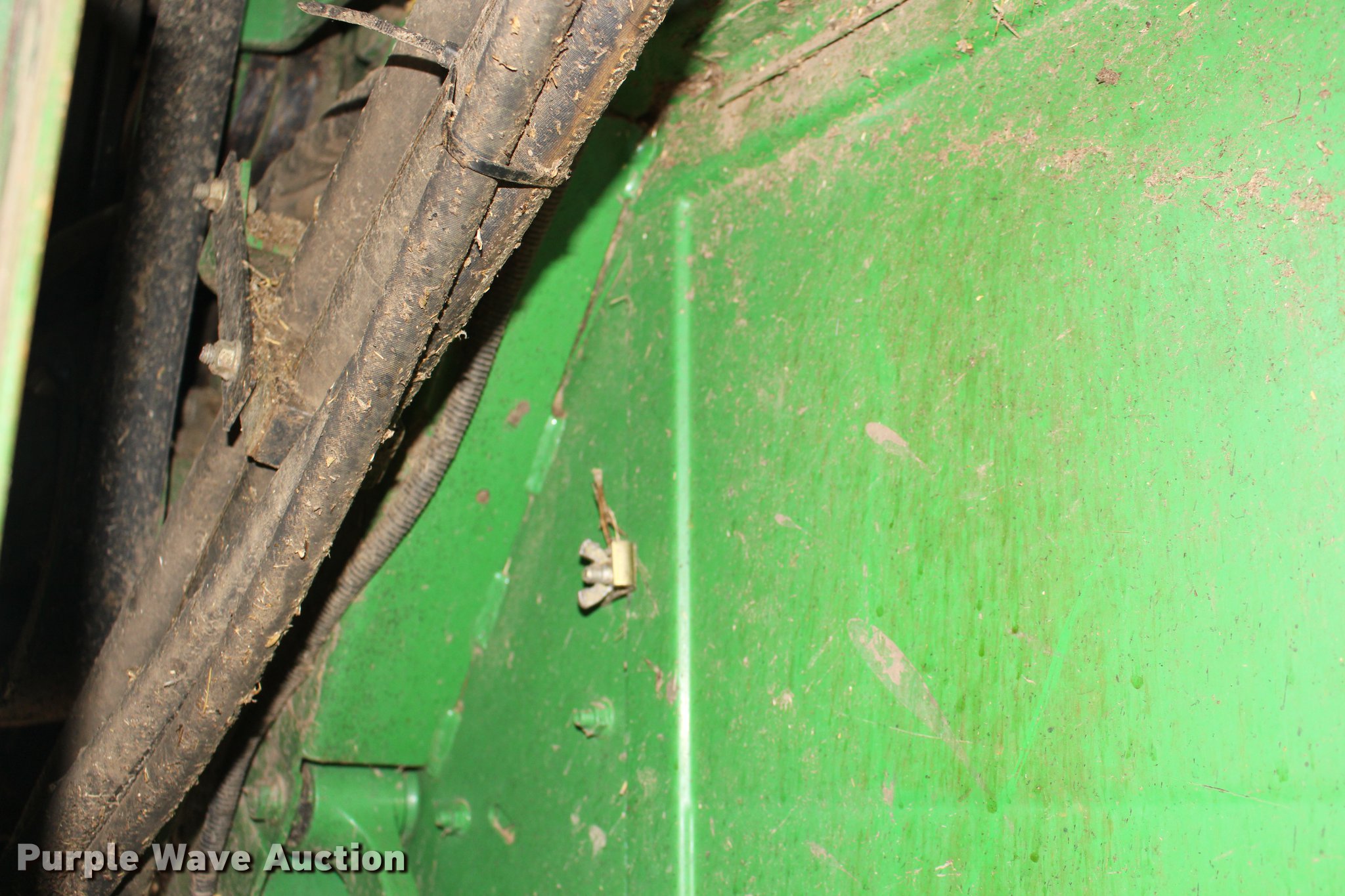 Purple Wave is selling a used Combine in Oklahoma. This item is a 2004 John Deere 9660 combine with the following: 3,703 engine hours on meter, 2,469 separator hours on meter, Six cylinder turbo diesel engine, Hydrostatic transmission, 3F-3R gears, AC and heat, Tilt steering wheel, AM/FM, Air suspension seat, Instructor's seat, Single point header coupler, Chaff spreader, Crary Big Top bin extensions, Work lights, GreenStar ready, 900/60R32 front tires, 28L-26 rear tires, Serial H09960W705335