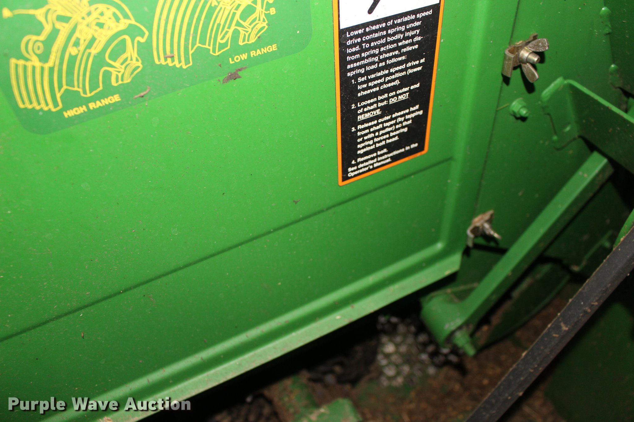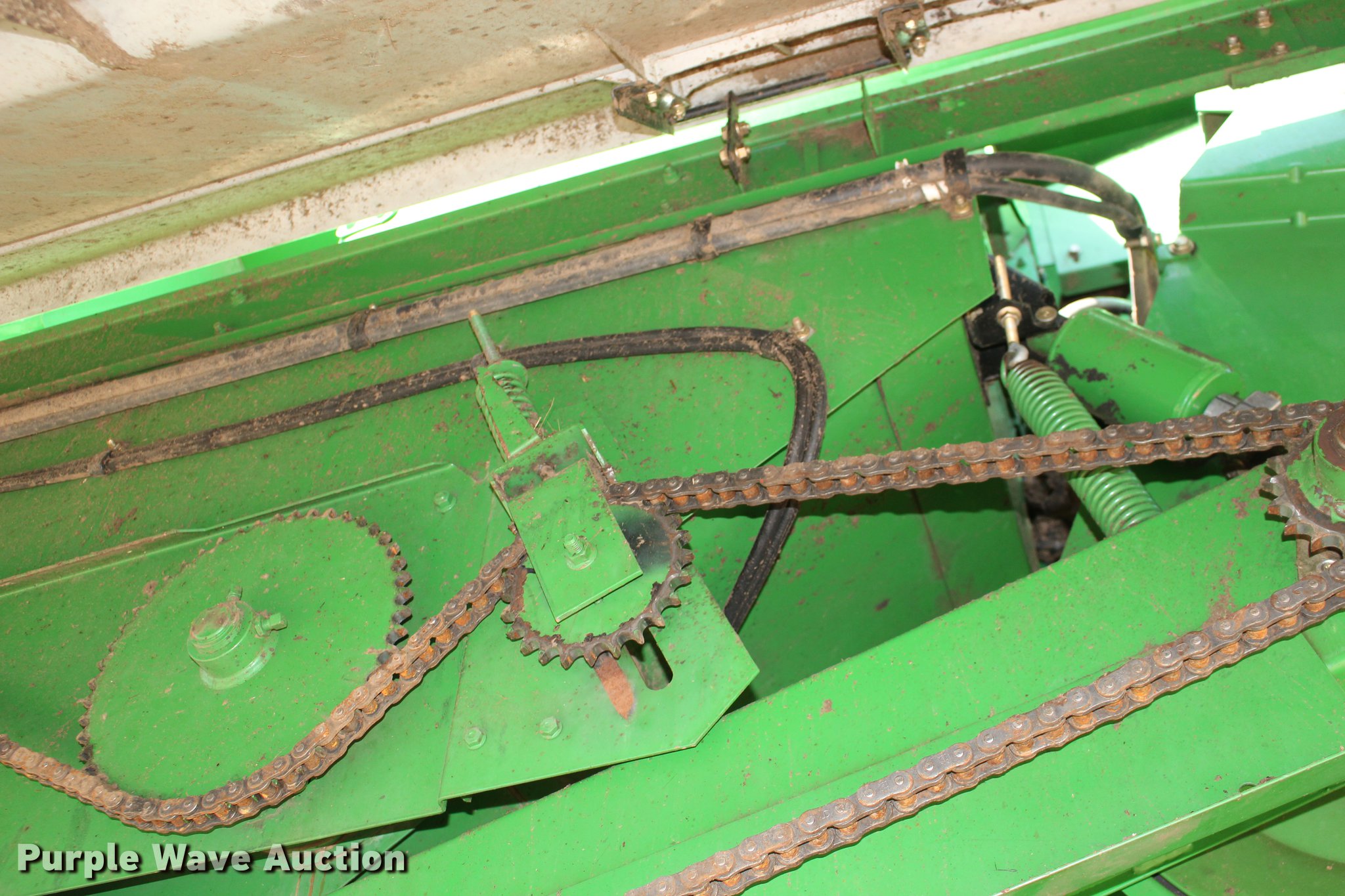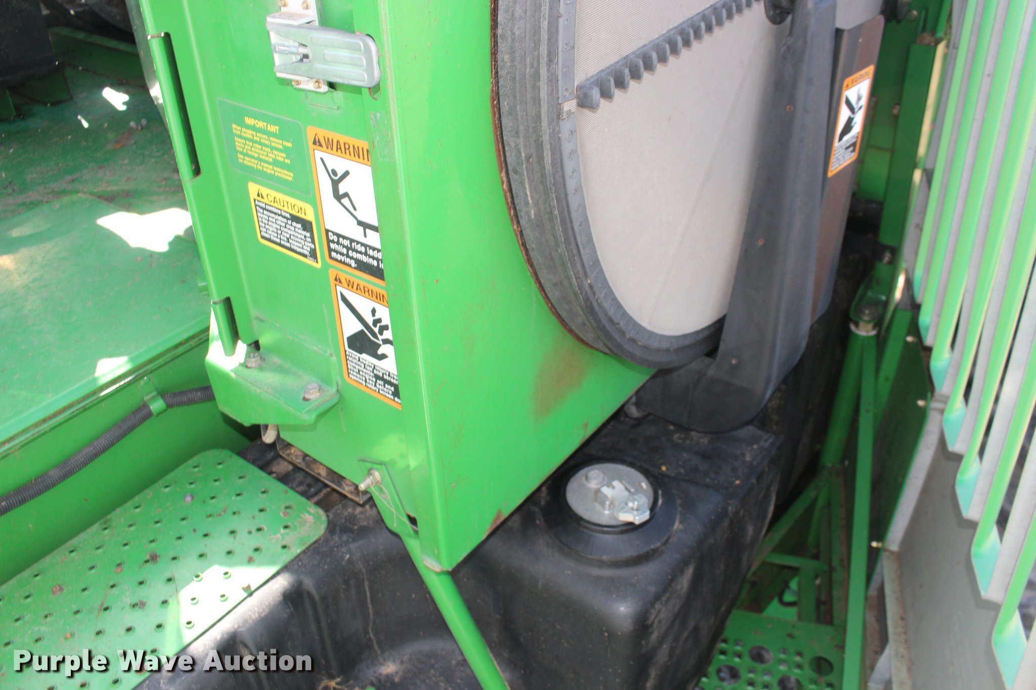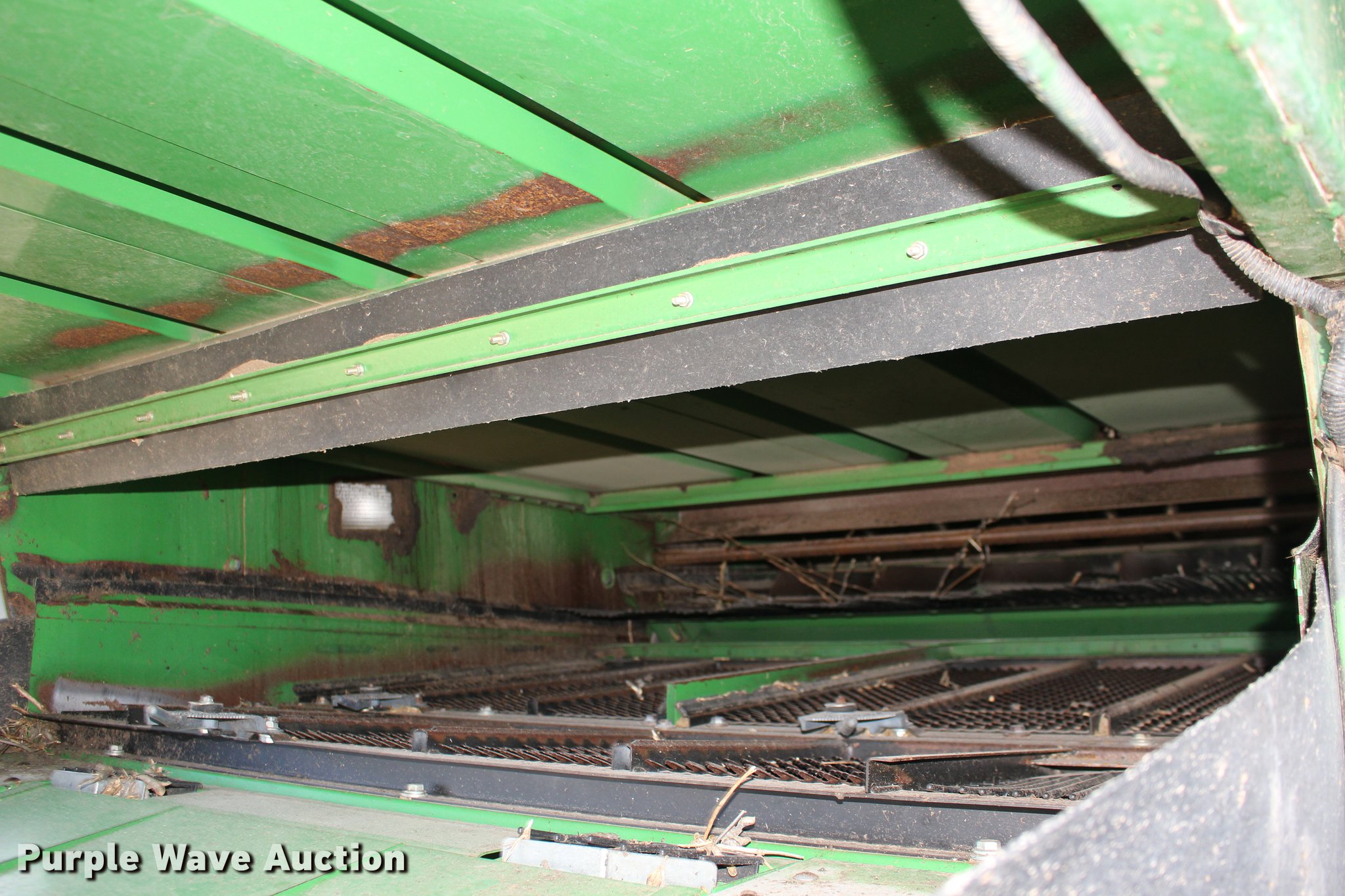 Purple Wave is selling a used Combine in Oklahoma. This item is a 2004 John Deere 9660 combine with the following: 3,703 engine hours on meter, 2,469 separator hours on meter, Six cylinder turbo diesel engine, Hydrostatic transmission, 3F-3R gears, AC and heat, Tilt steering wheel, AM/FM, Air suspension seat, Instructor's seat, Single point header coupler, Chaff spreader, Crary Big Top bin extensions, Work lights, GreenStar ready, 900/60R32 front tires, 28L-26 rear tires, Serial H09960W705335