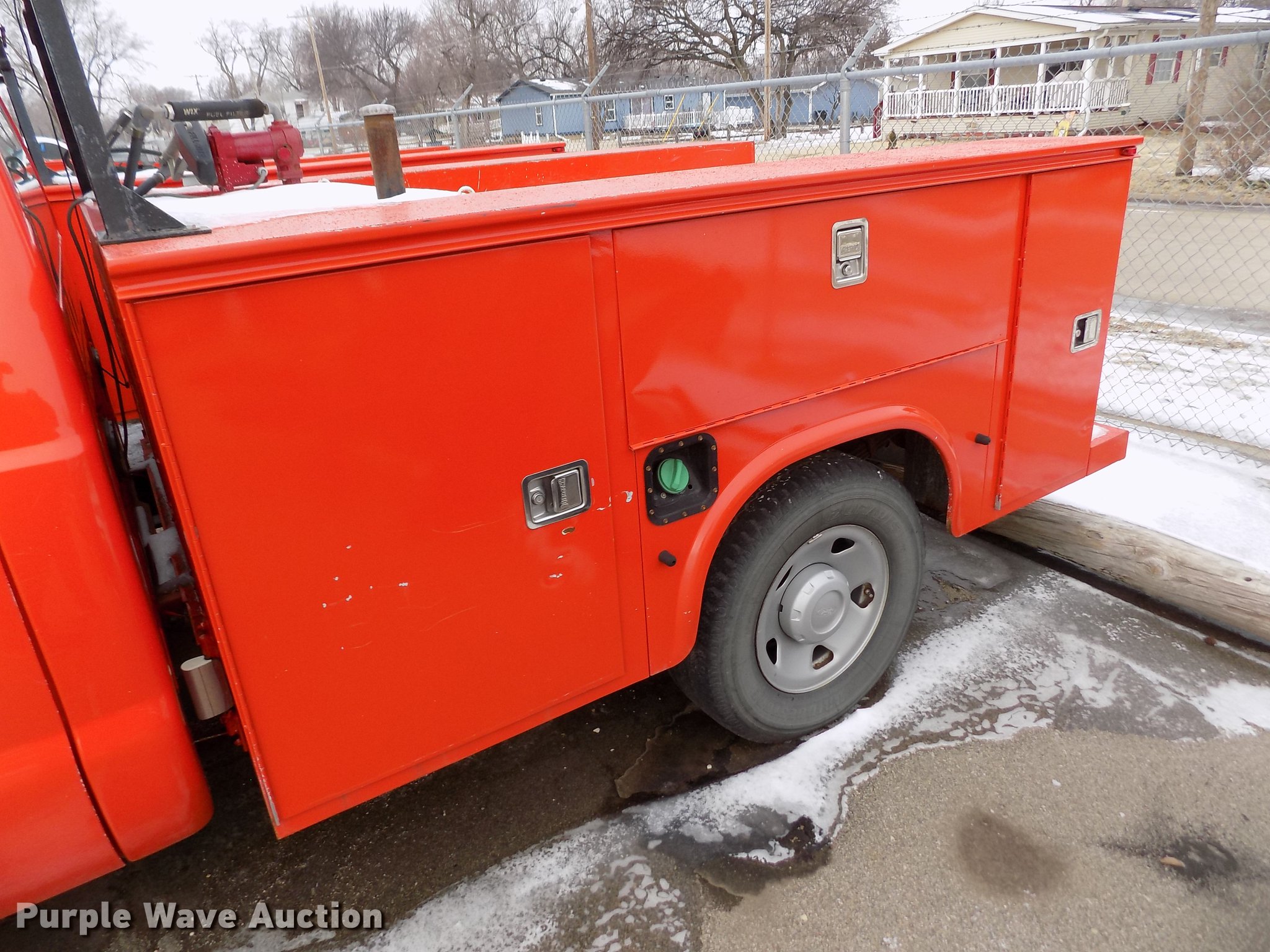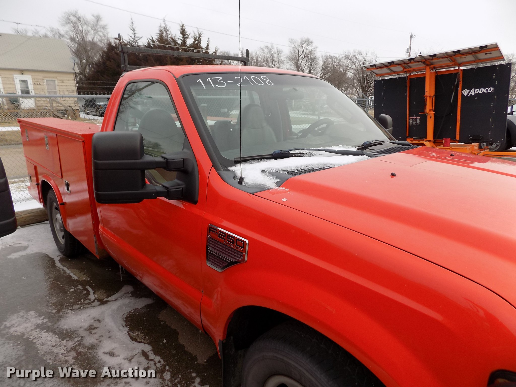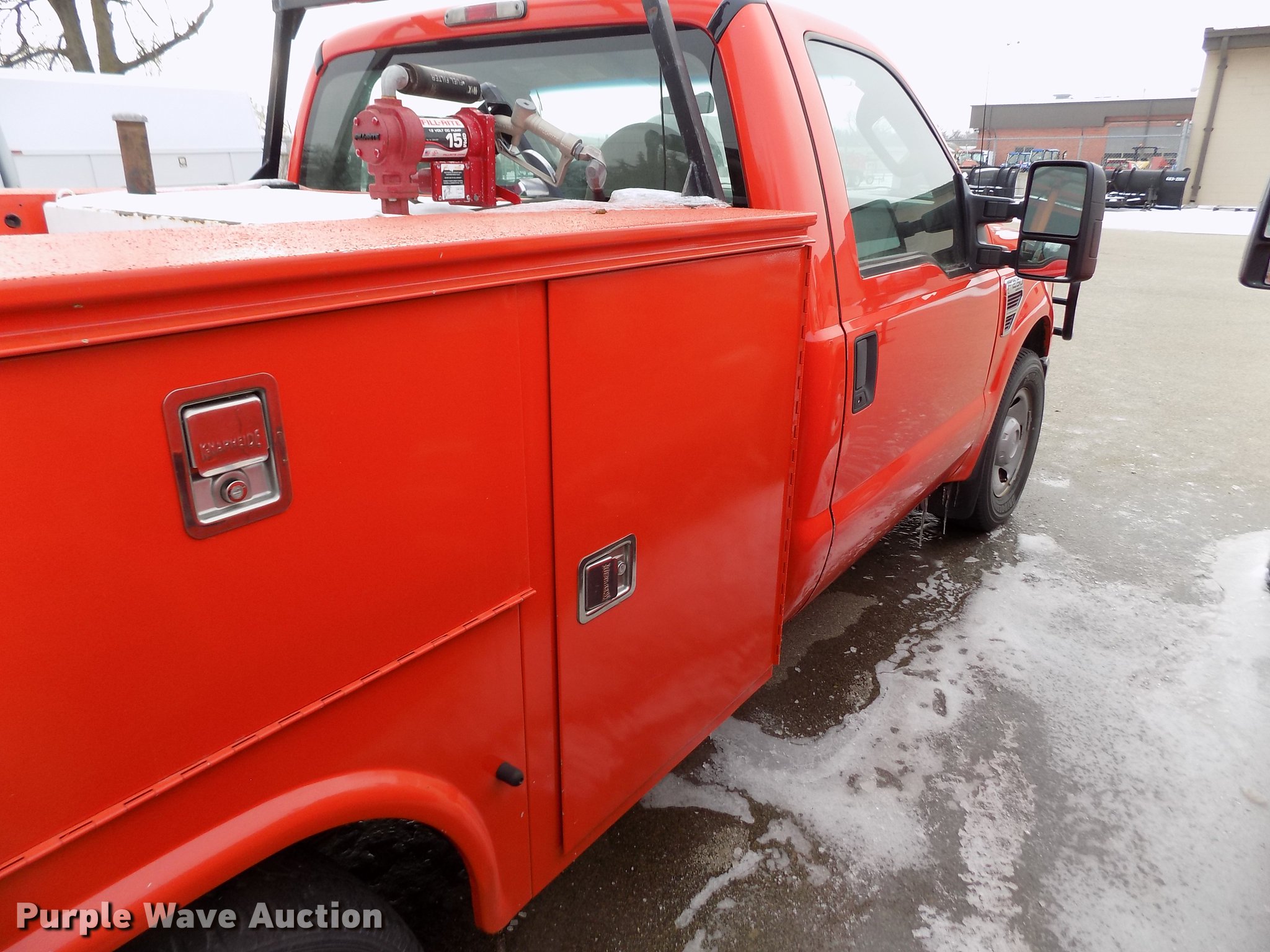 Purple Wave is selling a used 3/4 or 1 Ton Pickup or Van in Kansas. This item is a 2008 Ford F250 Super Duty utility bed pickup truck with the following: 198,439 miles on odometer, 6.4L V8 OHV 32V turbo diesel engine, Automatic transmission, AC and heat, Tilt, AM/FM, Vinyl interior, Front tow hook, Knapheide utility bed, 8'L x 72"W, Auxiliary fuel tank, Approx. 100 gallon, Fill Rite pump with hose and nozzle, Bridgestone 265/70R17 tires, Check engine light on, Water pump leaks, Battery bad, Hail damage, KDOT ID 113-2108