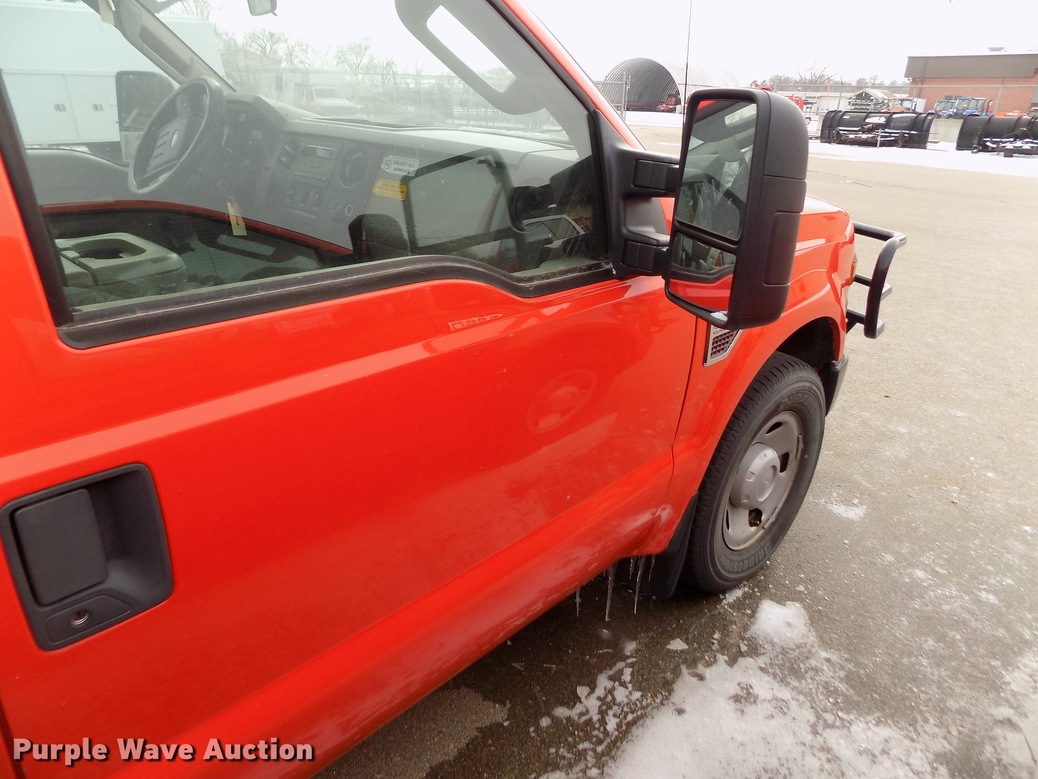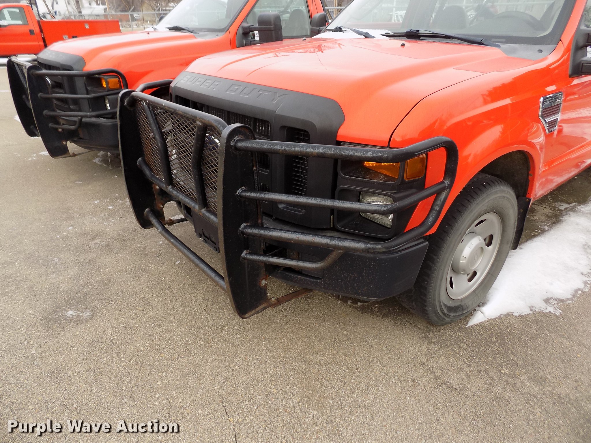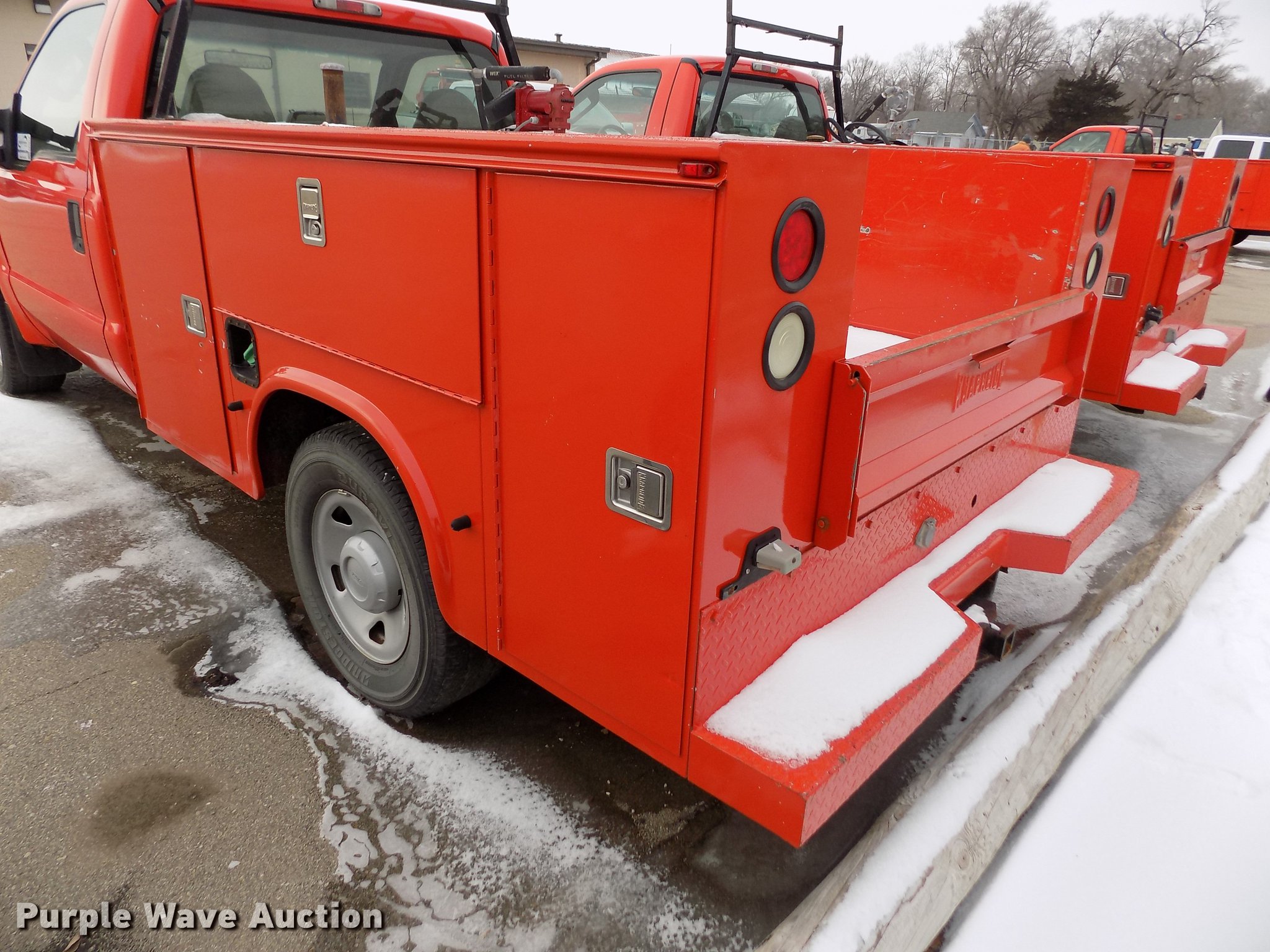 Purple Wave is selling a used 3/4 or 1 Ton Pickup or Van in Kansas. This item is a 2008 Ford F250 Super Duty utility bed pickup truck with the following: 198,439 miles on odometer, 6.4L V8 OHV 32V turbo diesel engine, Automatic transmission, AC and heat, Tilt, AM/FM, Vinyl interior, Front tow hook, Knapheide utility bed, 8'L x 72"W, Auxiliary fuel tank, Approx. 100 gallon, Fill Rite pump with hose and nozzle, Bridgestone 265/70R17 tires, Check engine light on, Water pump leaks, Battery bad, Hail damage, KDOT ID 113-2108