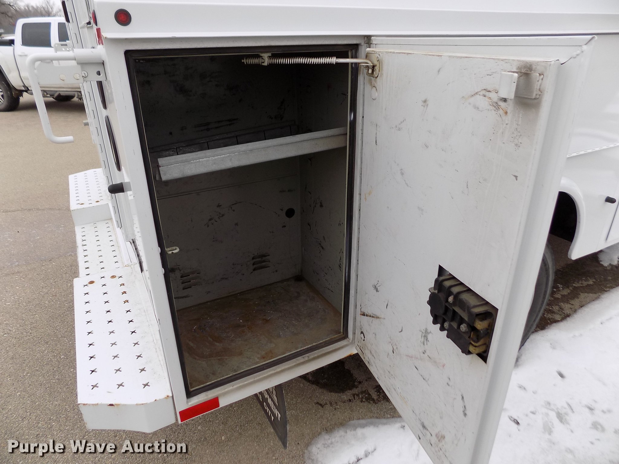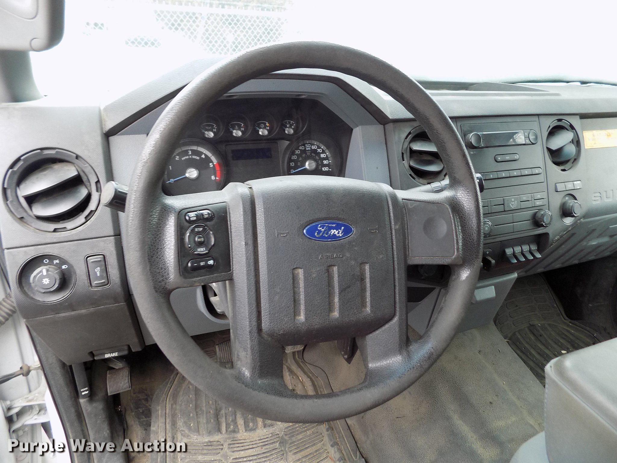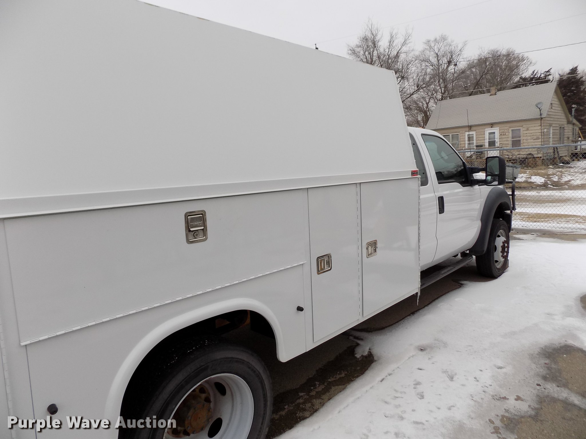 Purple Wave is selling a used Service Truck in Kansas. This item is a 2012 Ford F450 Super Duty SuperCab utility bed truck with the following: 174,230 miles on odometer, 6.8L V10 SOHC 30V gas engine, Automatic transmission, AC and heat, Tilt, Cruise, AM/FM, Brake controller, Cloth interior, Front tow hook, Grill guard, Knapheide utility bed, 11'L x 94"W, 10 compartments, Built in shelves, Receiver hitch, Trailer wiring, 235/70R19.5 front tires, 225/70R19.5 rear tires, Non-operational vehicle, Hole in engine block, No windshield washer nozzles, KDOT ID 153-2011