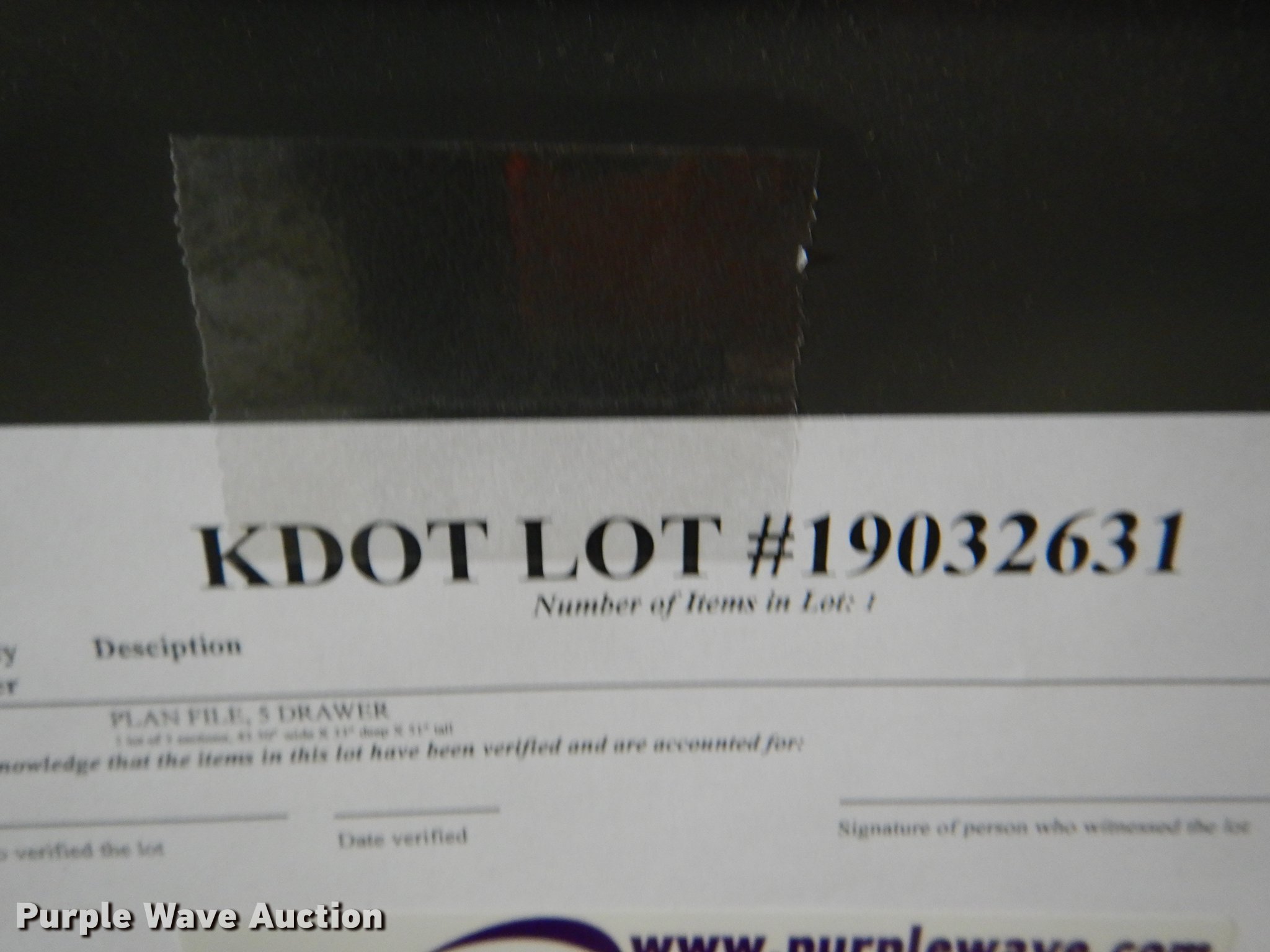 Purple Wave is selling a used Office Supplies and Equip. in Kansas. This item is a (3) five drawer plan file cabinets with the following: 43.5"W x 33"D x 51"H, KDOT ID 19032631