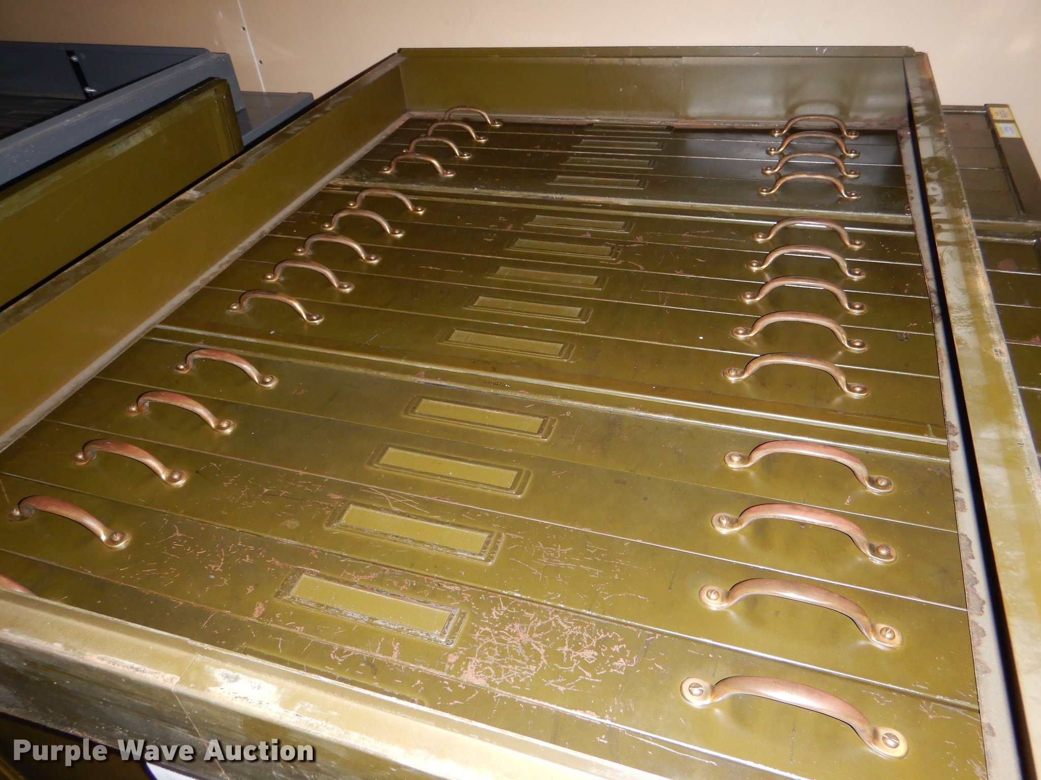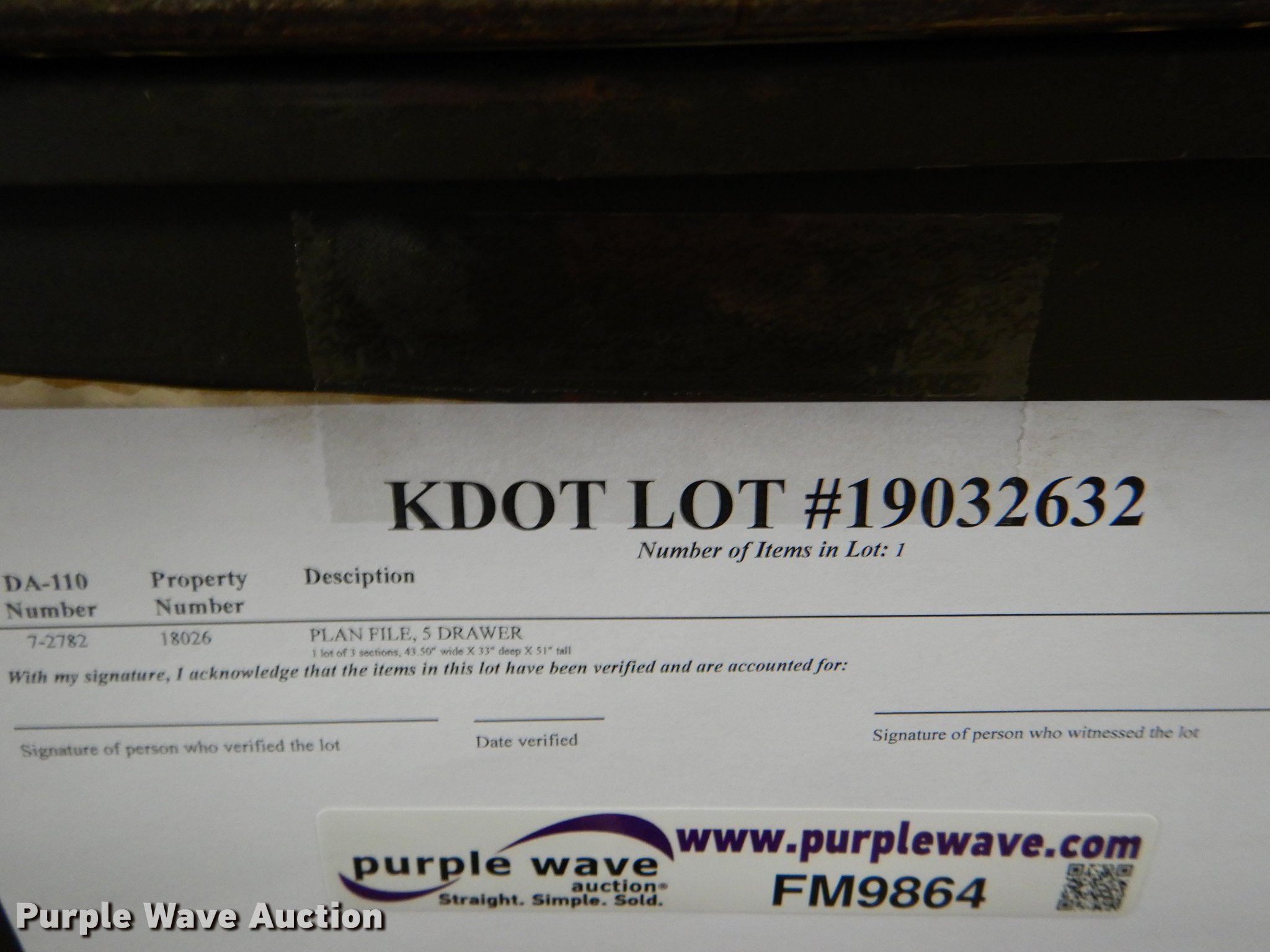 Purple Wave is selling a used Office Supplies and Equip. in Kansas. This item is a (3) five drawer plan file cabinets with the following: 43.5"W x 33"D x 51"H, KDOT ID 19032632
