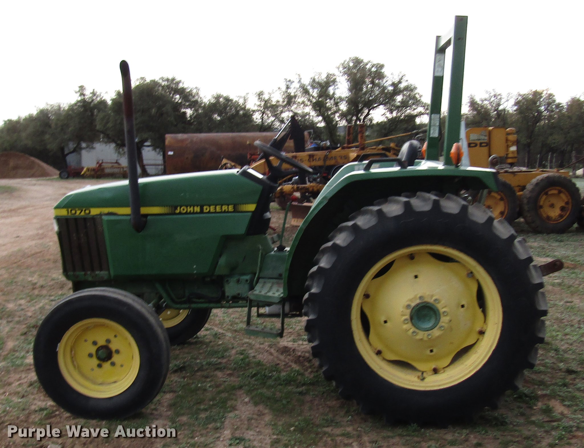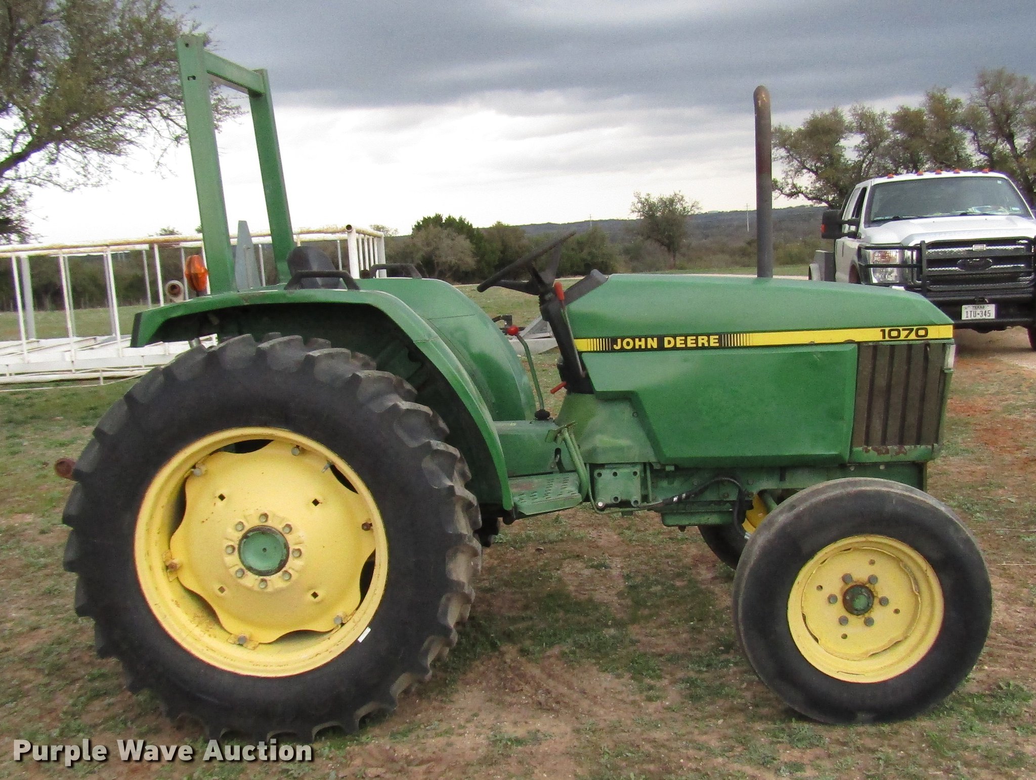Purple Wave is selling a used Tractor in Texas. This item is a John Deere 1070 tractor with the following: 718 hours on meter, Yanmar 4TN84-RJK four cylinder diesel engine, Serial CH4048D017461, Manual transmission, 6F-2R gears, Three point, Top link, 540 PTO, 68" wheelbase, 6.50-16 front tires, 13.6-28 rear tires, Serial M01070A170748
