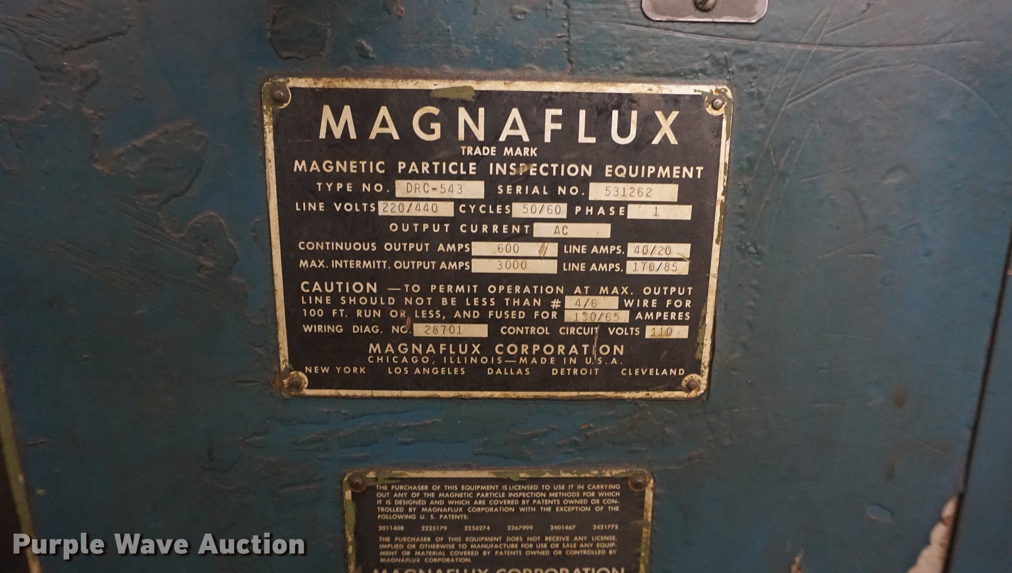 Magnaflux inspection machine. 220/440V, Single phase, Serial 531262. Load-out and removal is the sole responsibility of the purchaser. Item must be removed no later then April 12, 2019. Road Builders Machinery & Supply. 1001 S 7th St. Kansas City, KS 66105