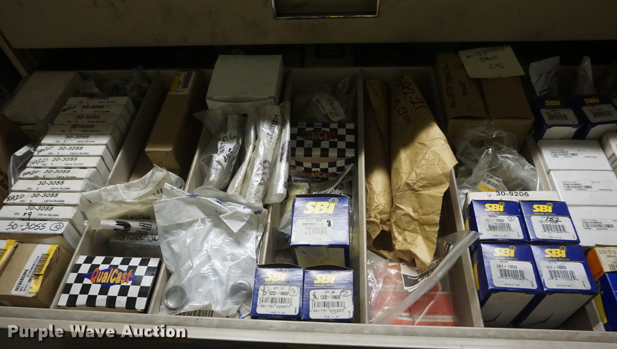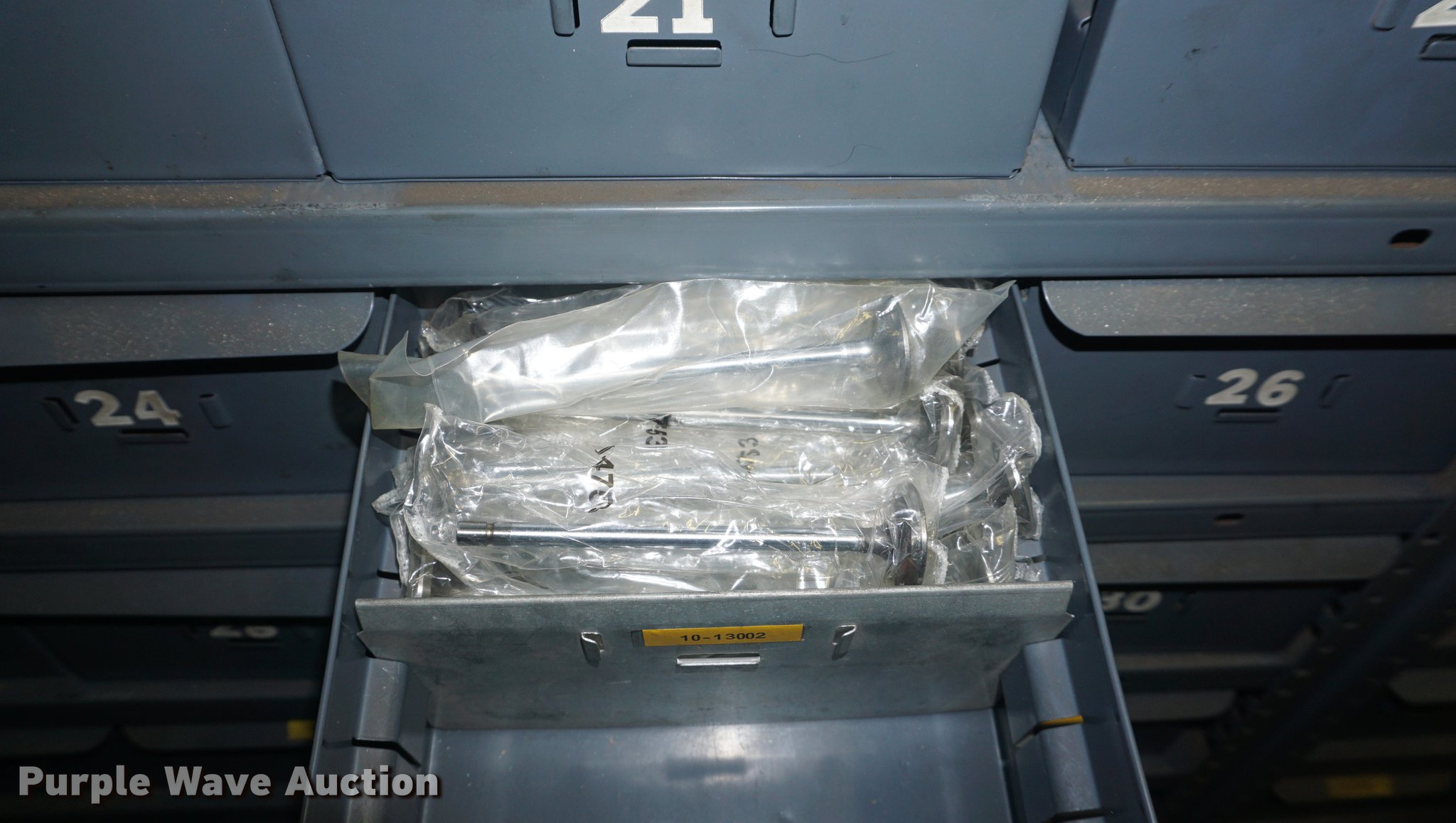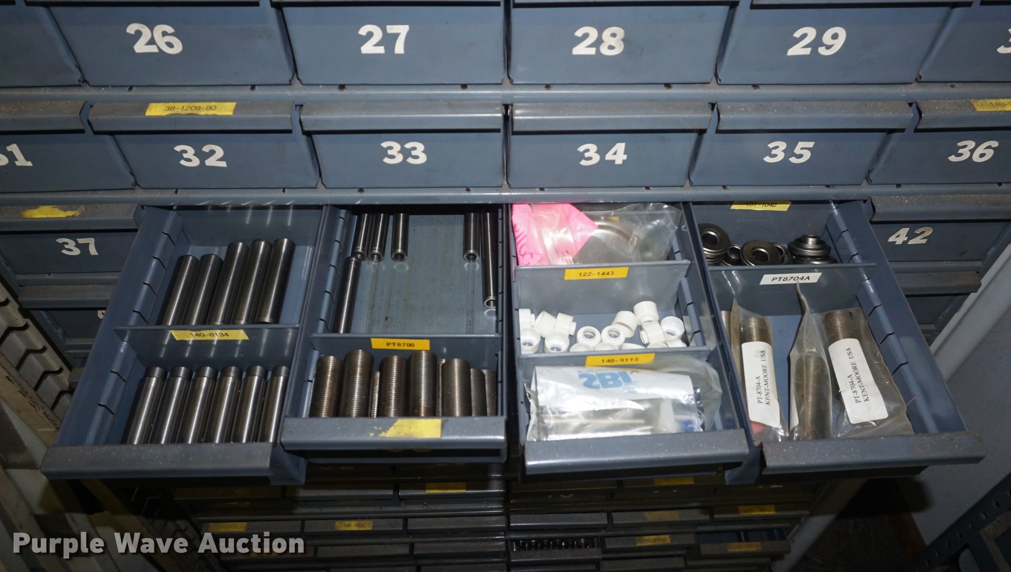Purple Wave is selling a used Shelving and Storage in Kansas. This item is a (6) cabinets with the following: Valves, Valve guides, Valve keepers, Shims, Valve seats