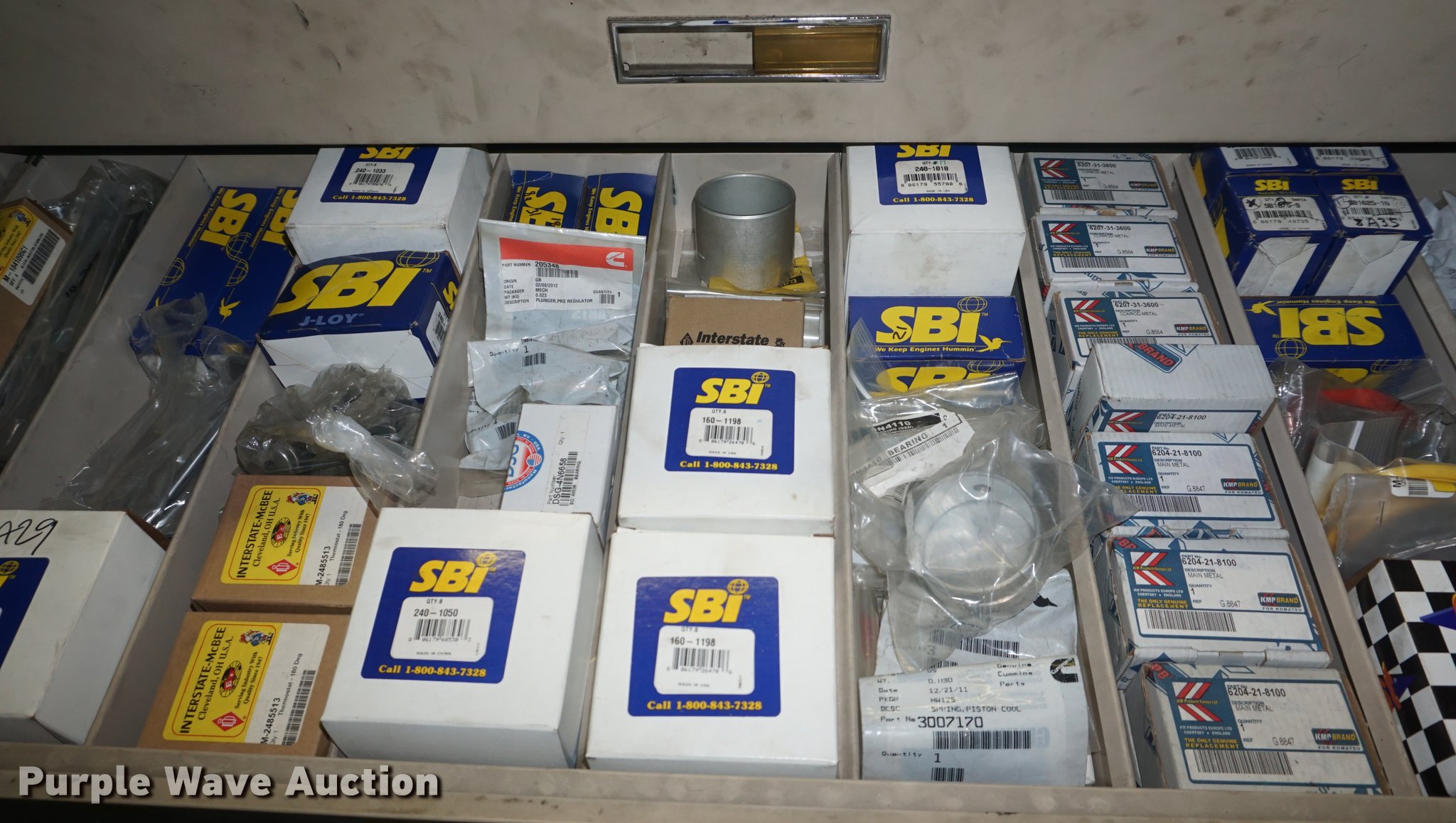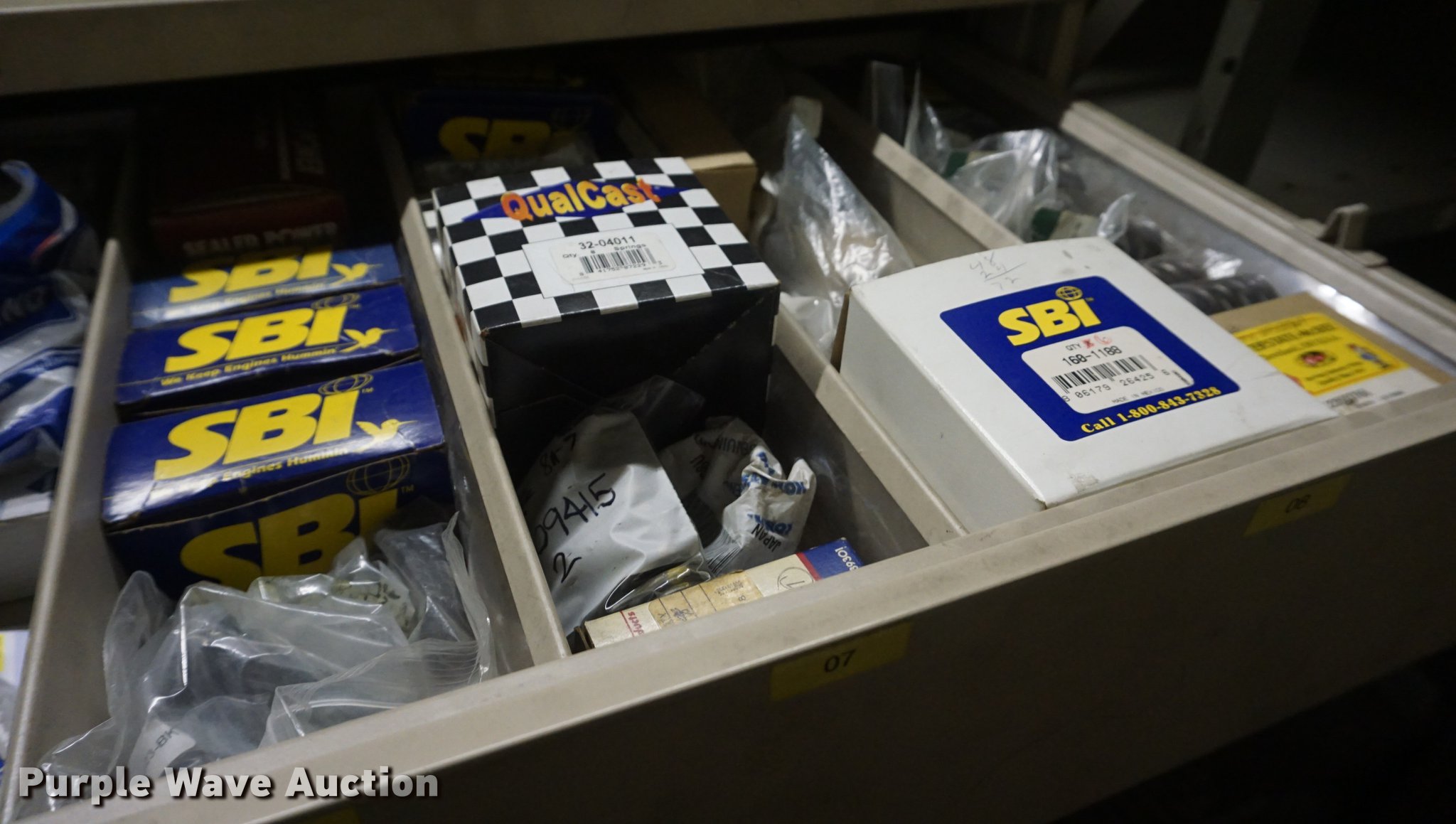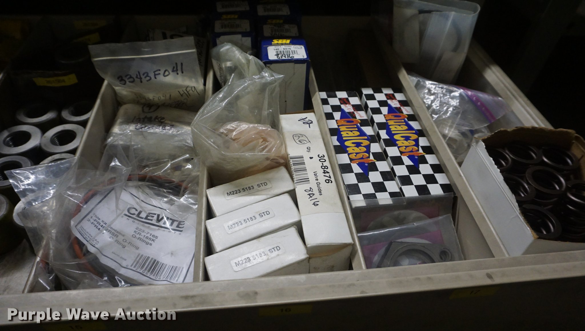 Purple Wave is selling a used Shelving and Storage in Kansas. This item is a (6) cabinets with the following: Valves, Valve guides, Valve keepers, Shims, Valve seats