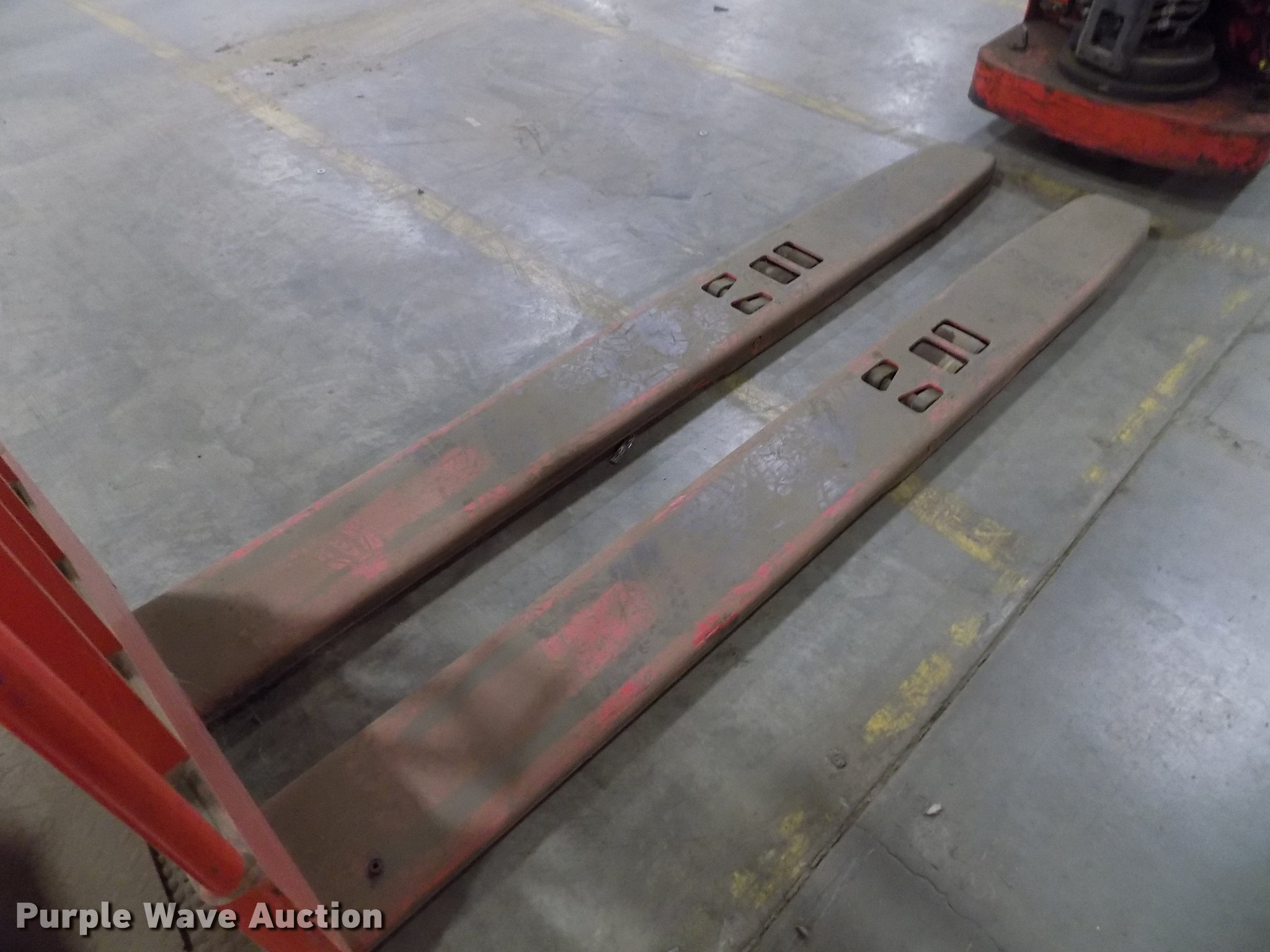 Raymond 8500 pallet jack. 24V electric motor, 8,000 lbs max lift capacity, 96" fork length, No batteries, Unknown operating condition, Serial 850-07-69349. Great Plains Manufacturing, Inc.. 2150 NW 8th St. Abilene, KS 67410