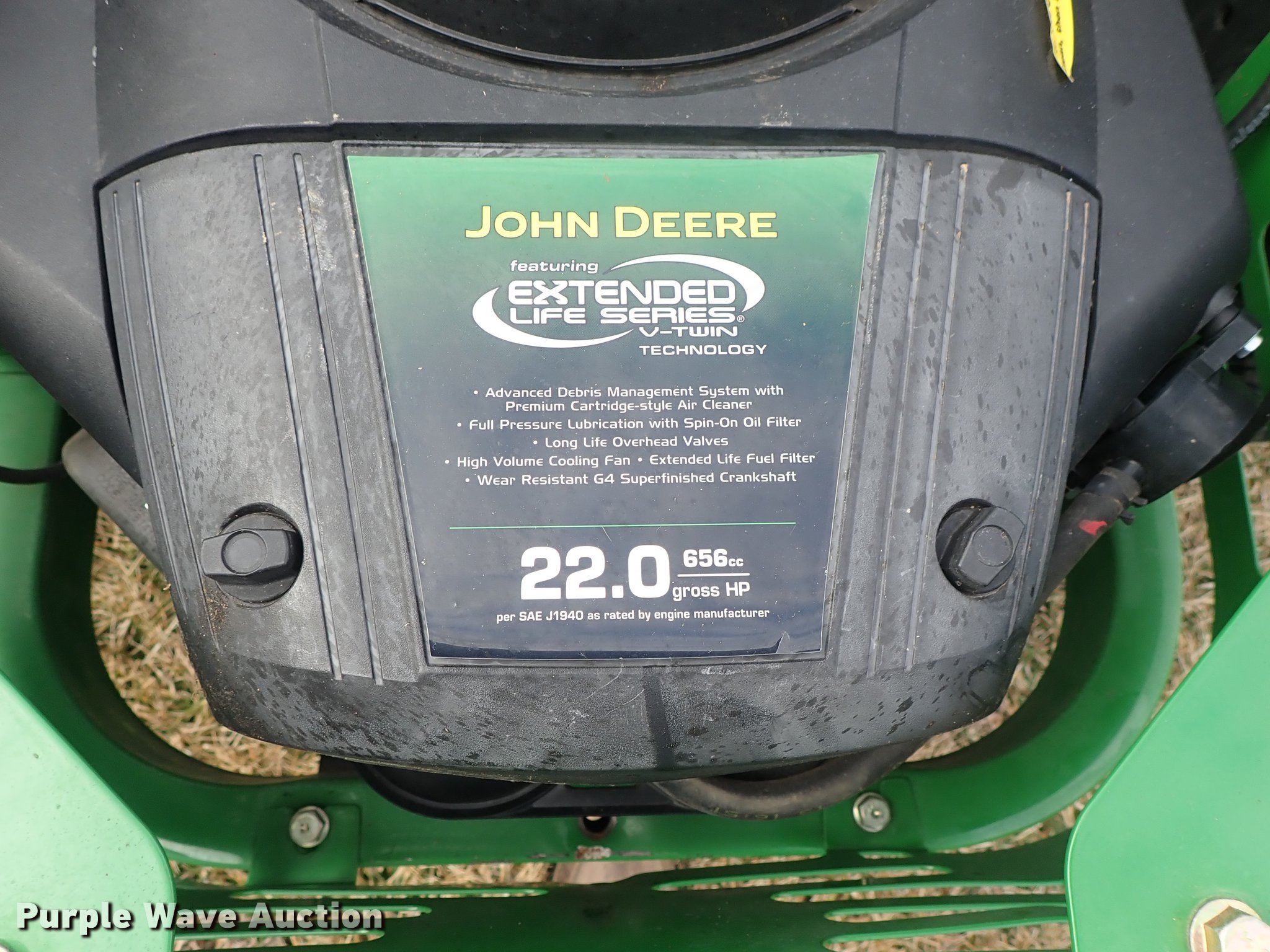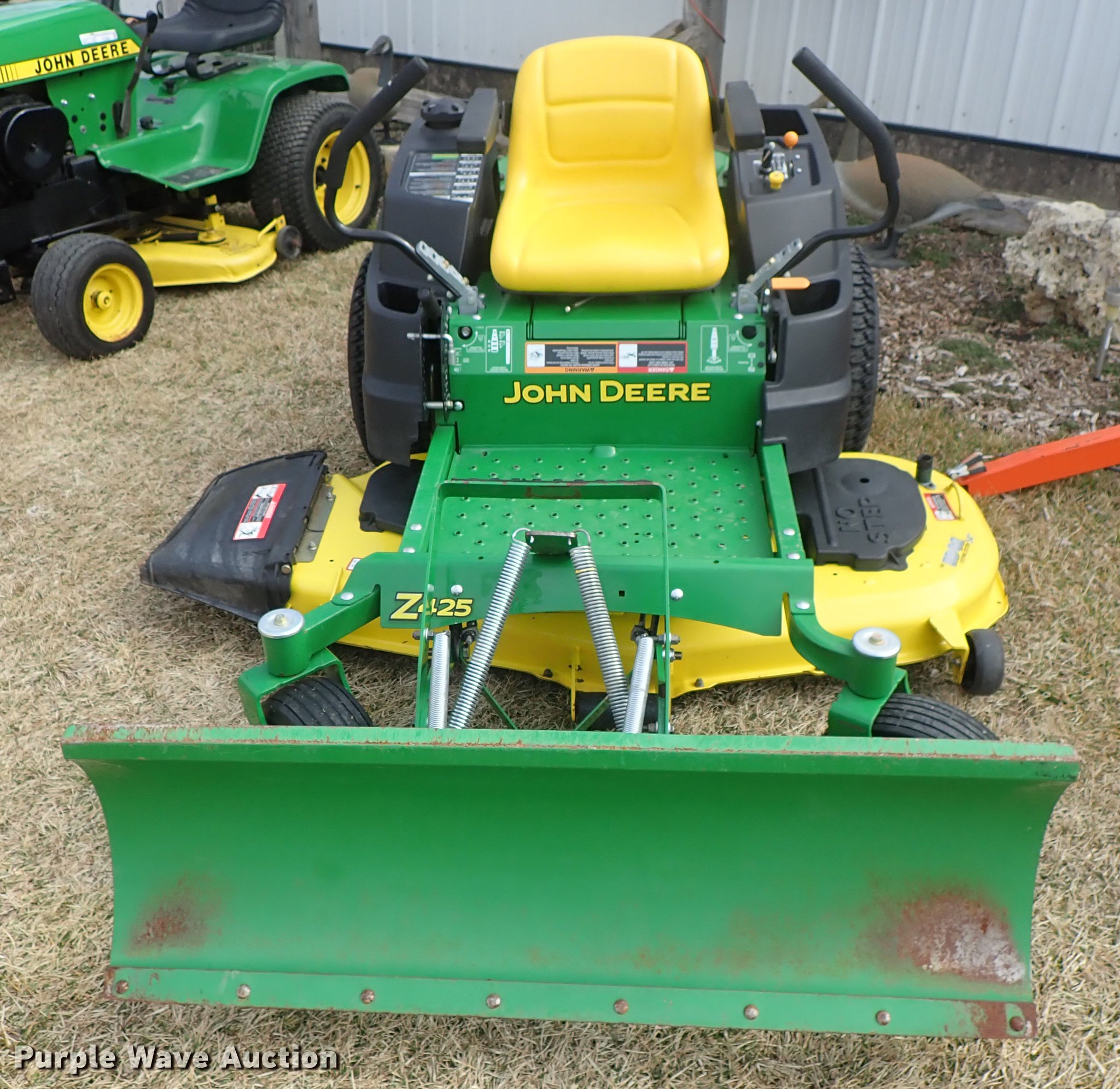 Purple Wave is selling a used Commercial Turf Mower in Kansas. This item is a John Deere Z425 ZTR lawn mower with the following: 176 hours on meter, Edge 54"W deck, John Deere gas engine, 22 HP, Hydrostatic transmission, 46"W snow blade, 3 x 5.00-6 front tires, 22 x 9.50-10 rear tires, Serial 1M0Z425JVDM134519