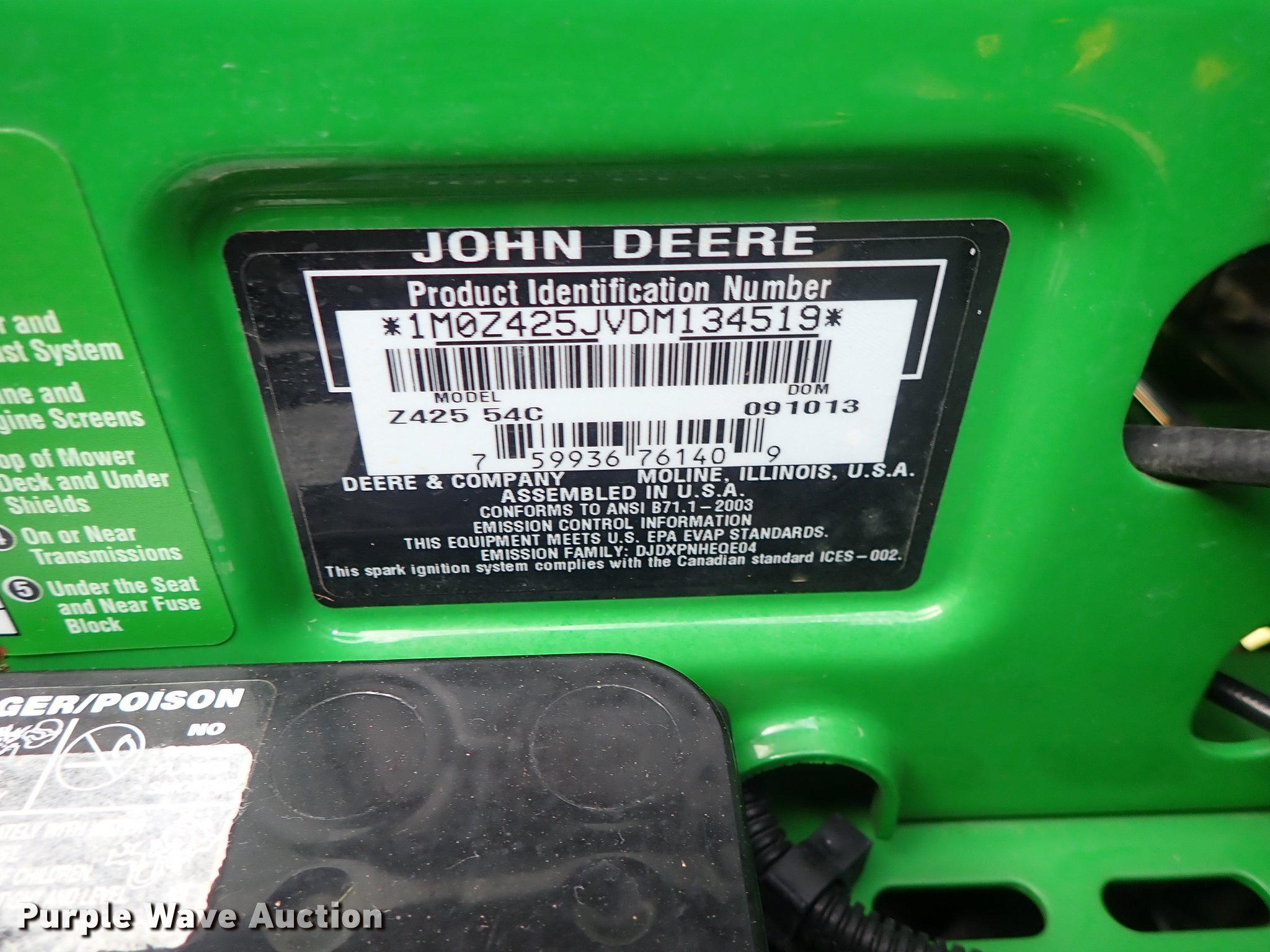 This John Deere Z425 ZTR lawn mower will sell to the highest bidder regardless of price.