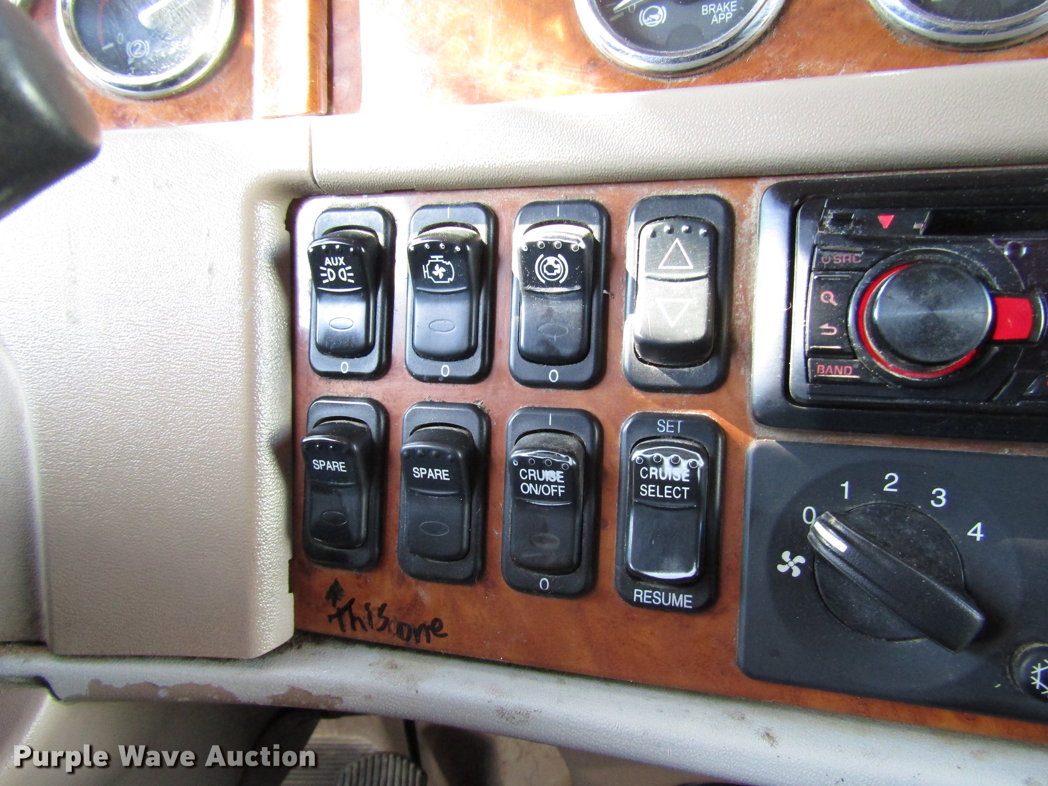 Purple Wave is selling a used Truck Tractor in Texas. This item is a 2006 Peterbilt 379 semi truck with the following: 1,496,445 miles on odometer, 51,861 hours on meter, Caterpillar C15 14.6L L6 turbo diesel engine, 18 speed manual transmission, Tandem axle, Inter-axle differential lock, AC and heat, Cruise, AM/FM/CD, Power windows and locks, Power and heated mirrors, Air suspension seat, Leather seat, Air ride cab, Unibilt sleeper, 68"L, Single bed, Refrigerator, Hanging closet, Dump valves, PTO, Exterior visor, Dual rear exhaust stacks, Aluminum deck plate, Sliding fifth wheel plate, Dual fuel tanks, Half fenders, Mud flaps, Air suspension, Air brakes, Engine brake, 272" wheelbase, 11R24.5 tires, GVWR 50,000 lbs, FAWR 12,000 lbs, IAWR 19,000 lbs, RAWR 19,000 lbs
