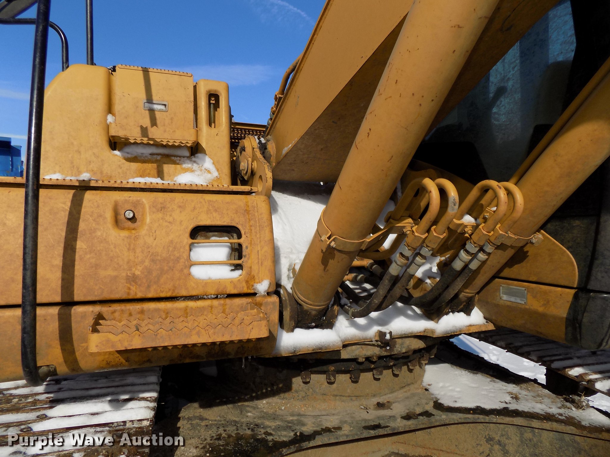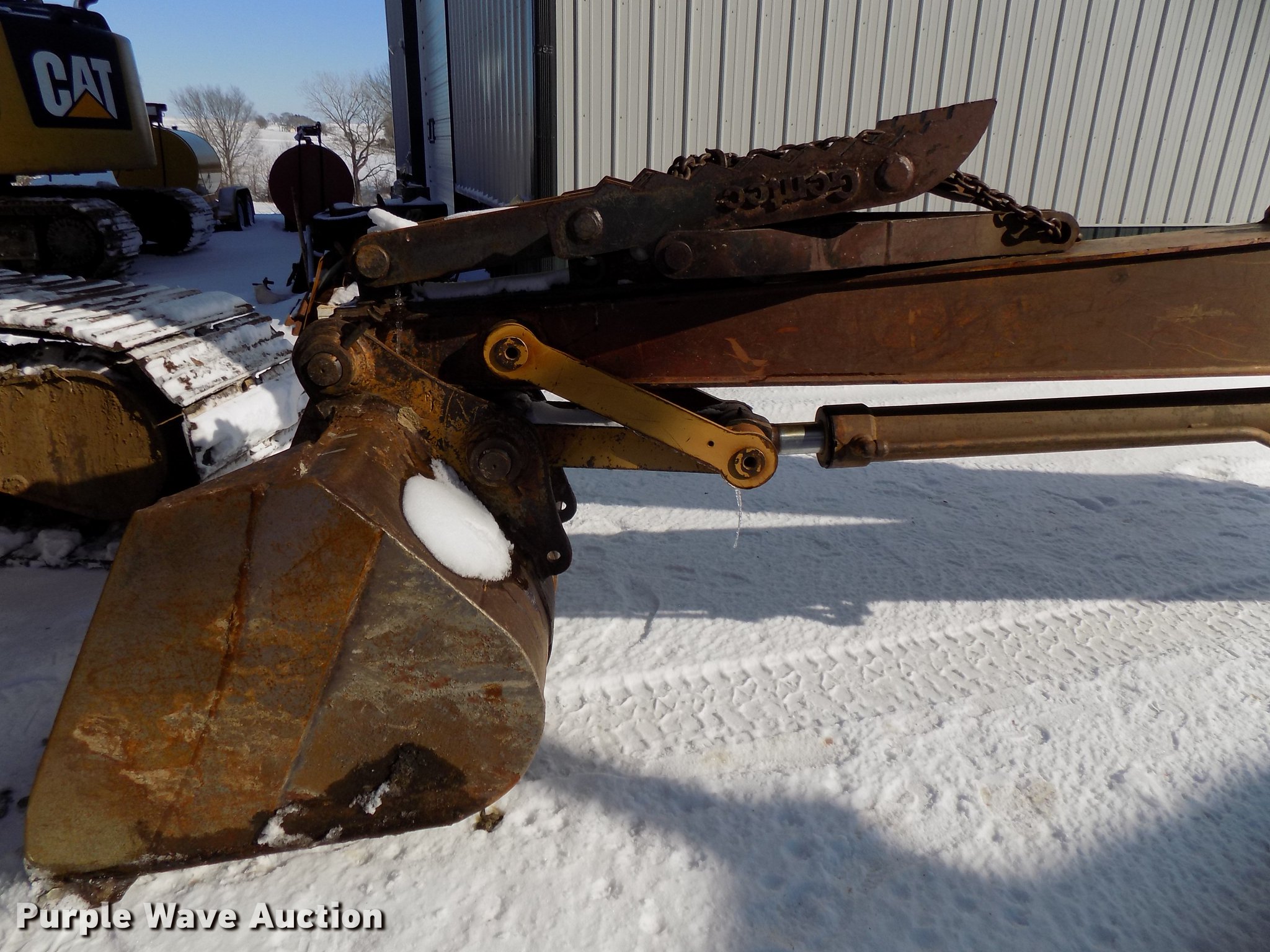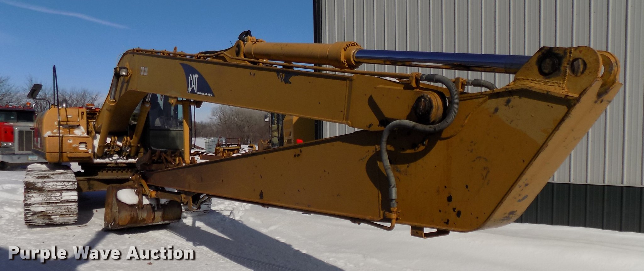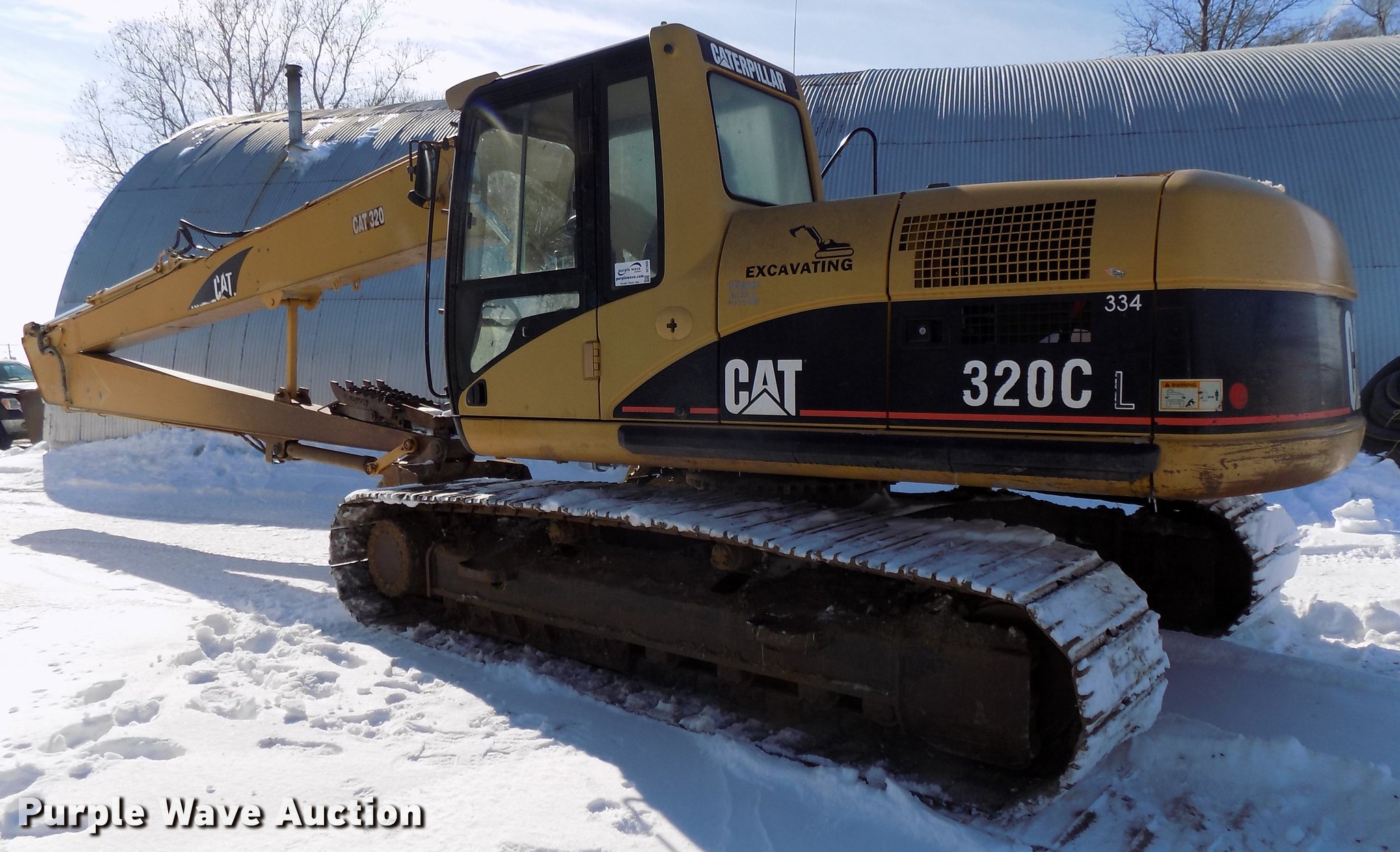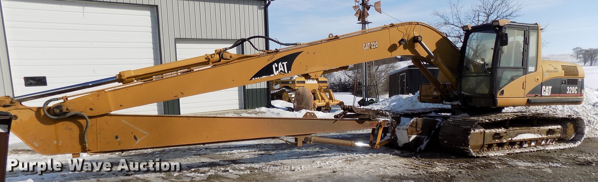 Purple Wave is selling a used Hydraulic Excavator in Iowa. This item is a 2001 Caterpillar 320C L long reach excavator with the following: 8,186 hours on meter, Caterpillar six cylinder turbo diesel engine, Serial 7JK48596, EROPS, AC and heat, AM/FM, Suspension seat, Front work lights, Backup alarm, Standard boom, 21'7" stick length, 18.5'L additional stick, Auxiliary hydraulics, 55" max reach, Gentec thumb, 42"W bucket, Bolt-on cutting edge, Eight bottom rollers, 31 3/4"W steel triple grouser track pads, Cracked windshield, Additional standard boom and 18.5' stick, Caterpillar 54"W toothed bucket, Serial ANB01184