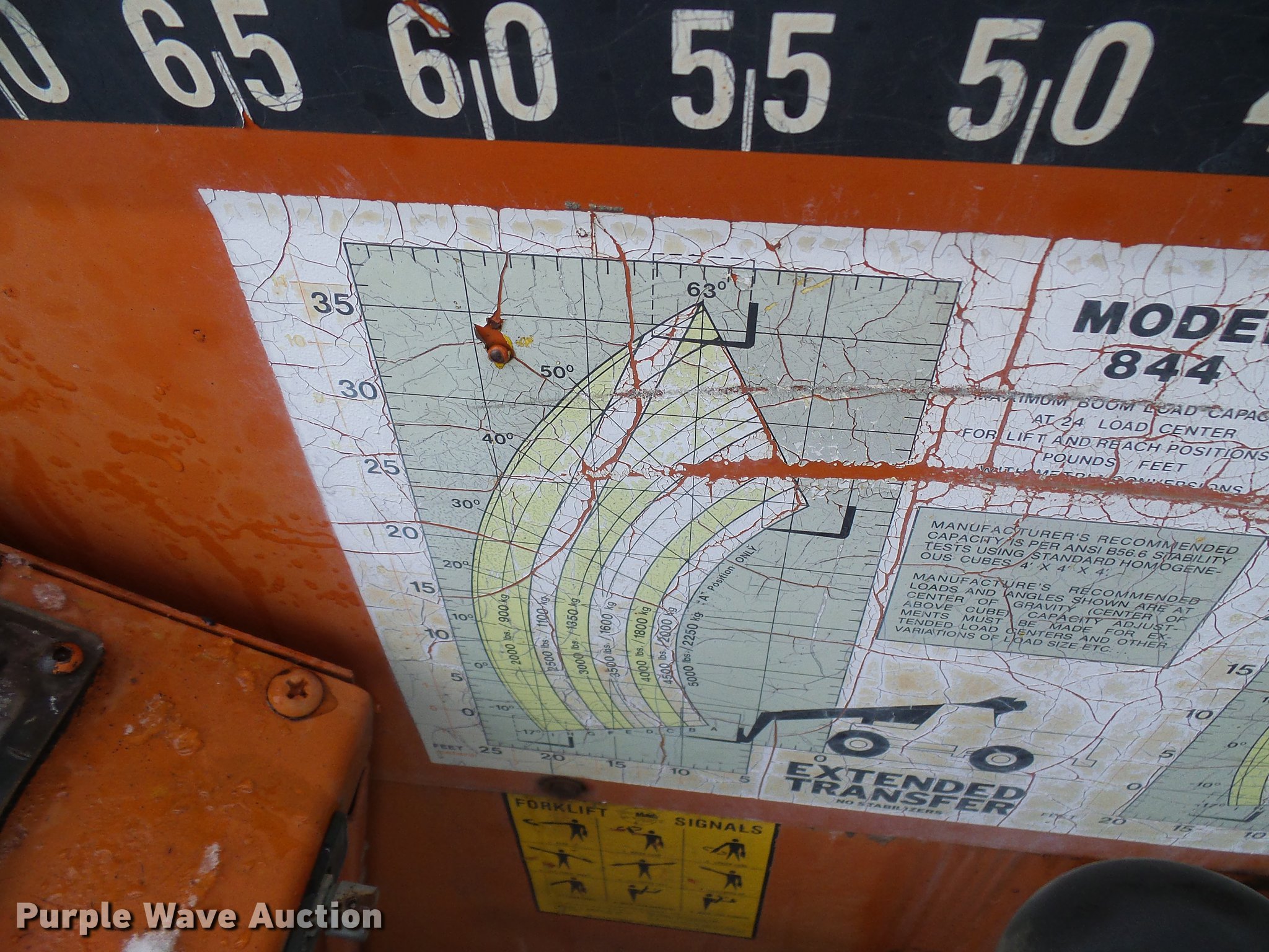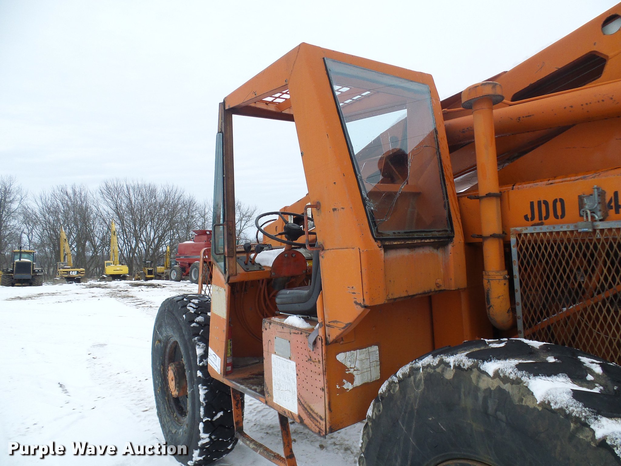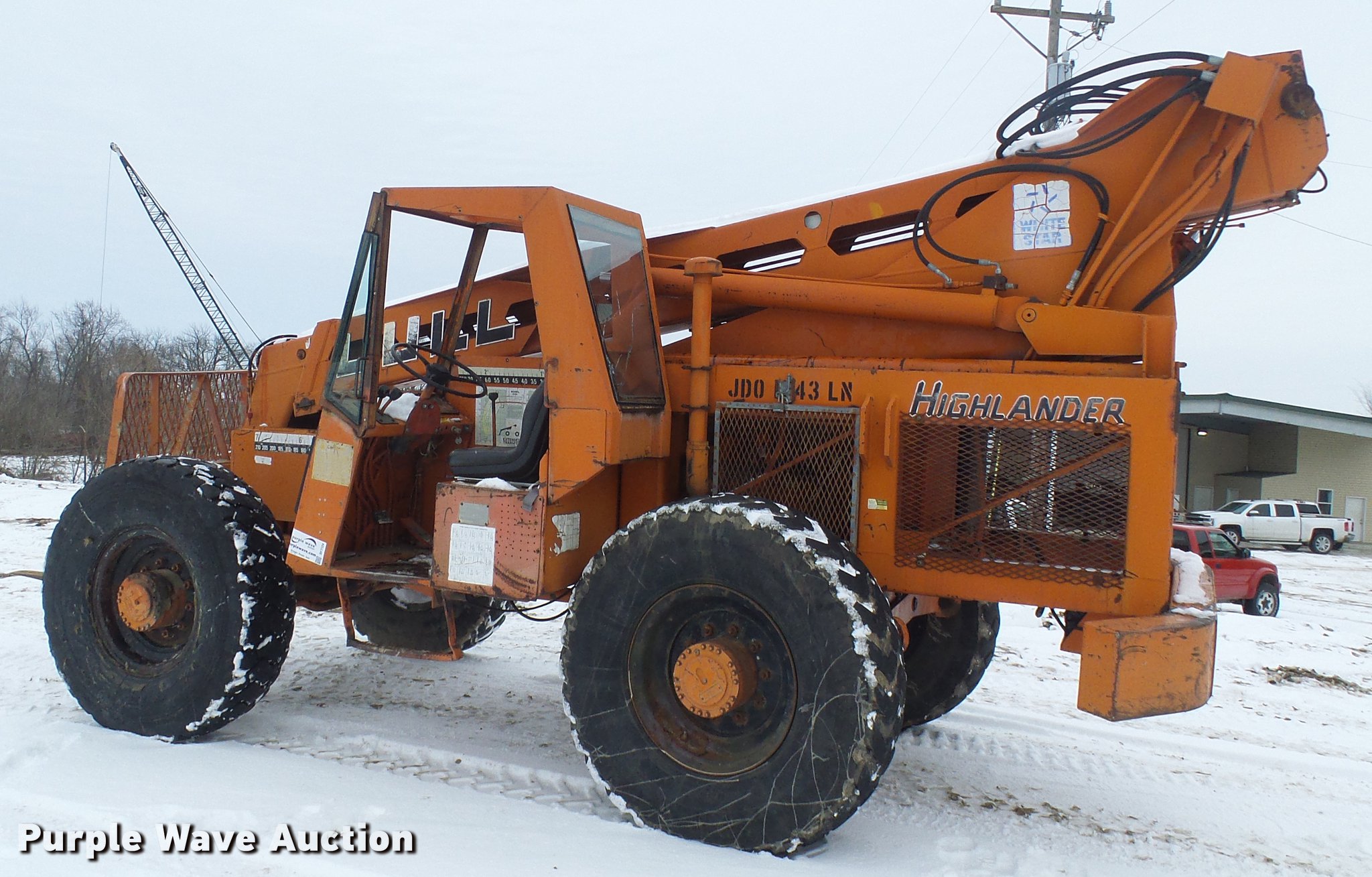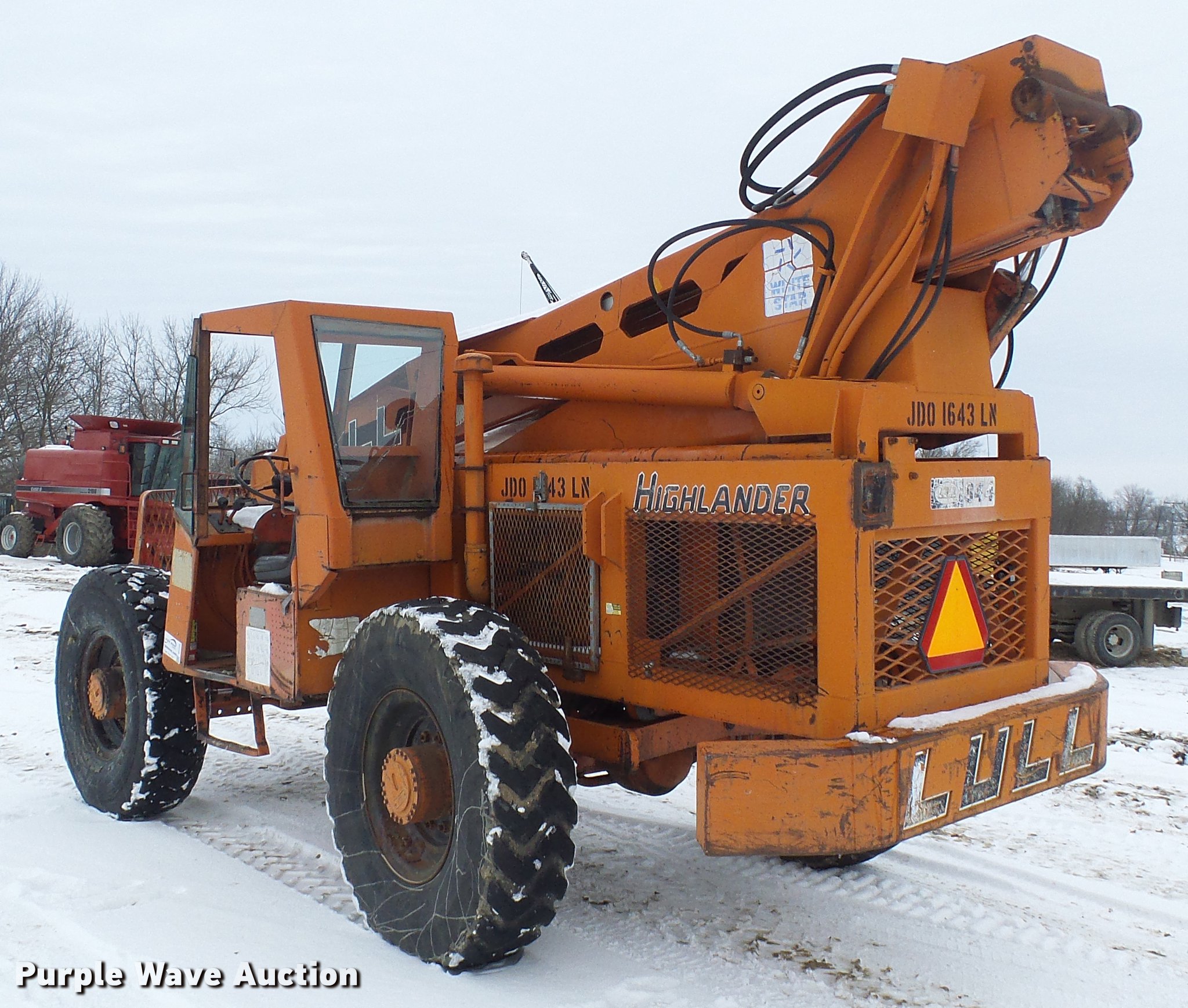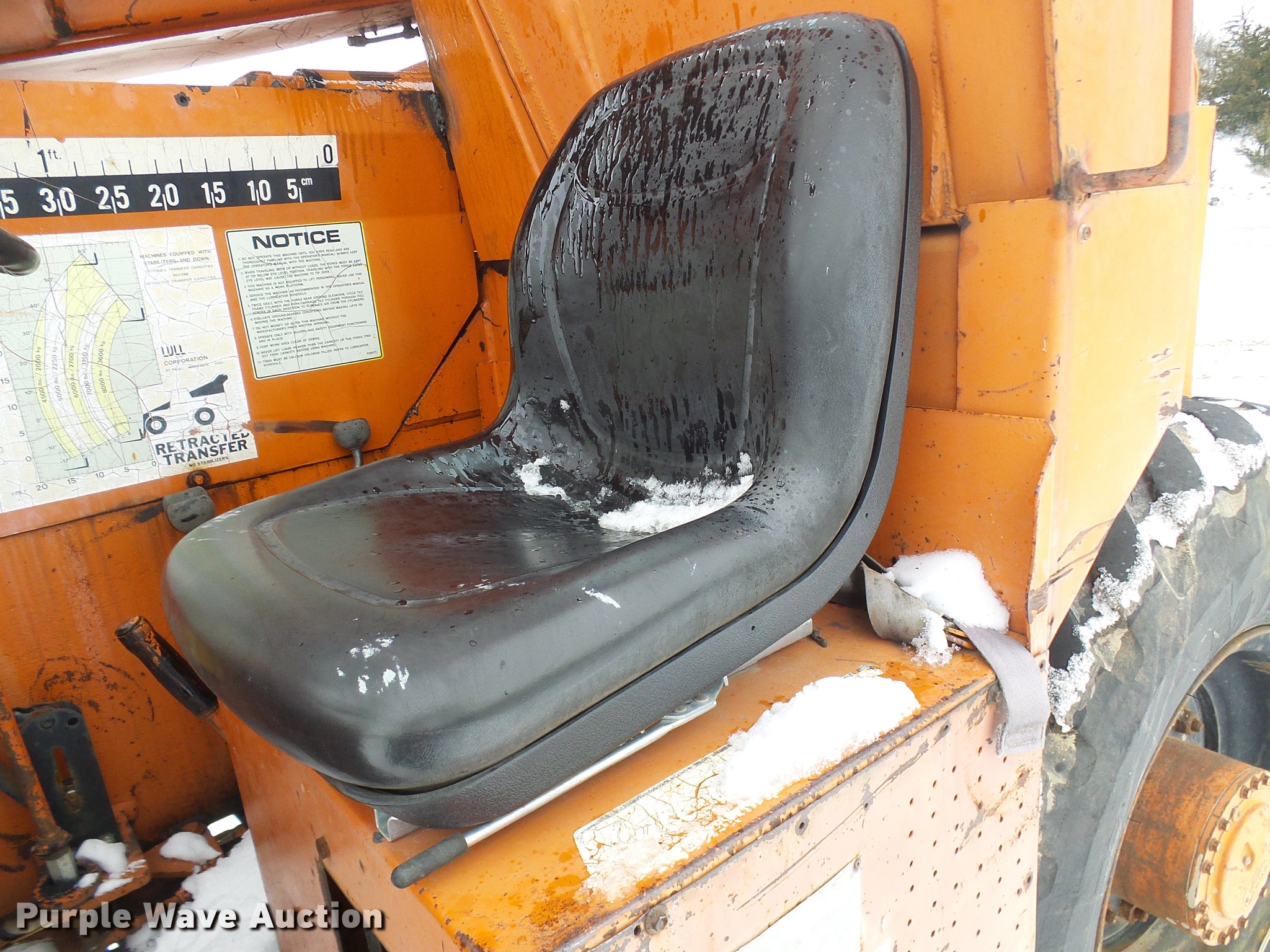 Purple Wave is selling a used Telehandler in Missouri. This item is a Lull 844 telehandler with the following: 2,064 hours on meter, John Deere four cylinder diesel engine, Shuttle shift transmission, 4F-4R gears, Four wheel drive, Crab steer, 8,000 lbs maximum lift capacity, 34' maximum lift height, 42"L forks, Tilt carriage, 14.00-24 tires, Serial JD01643LN